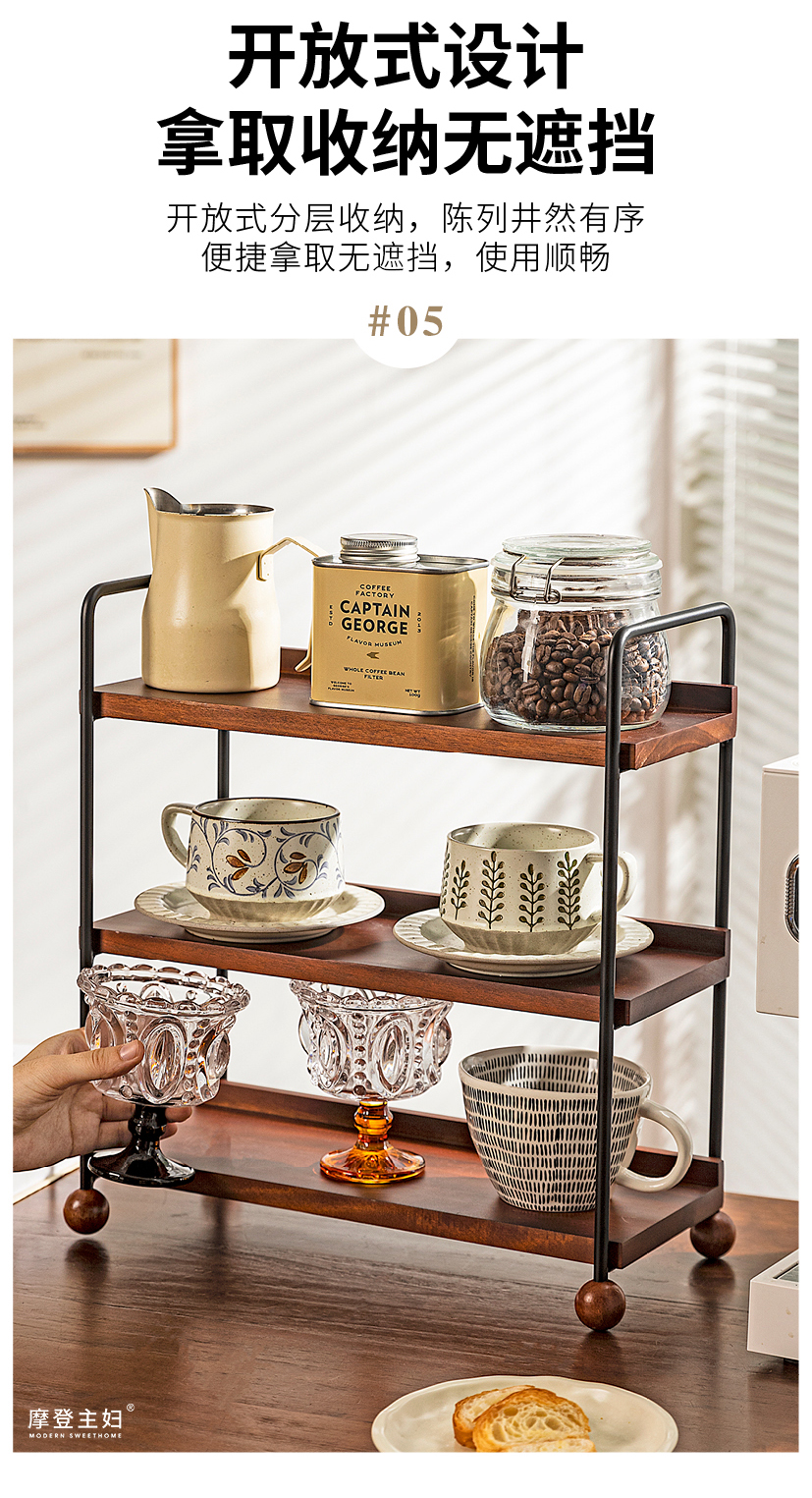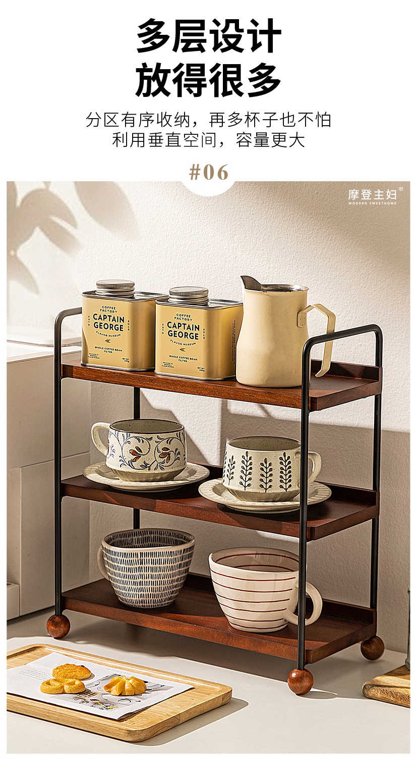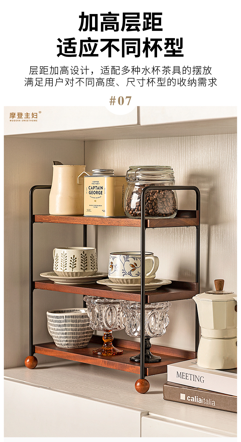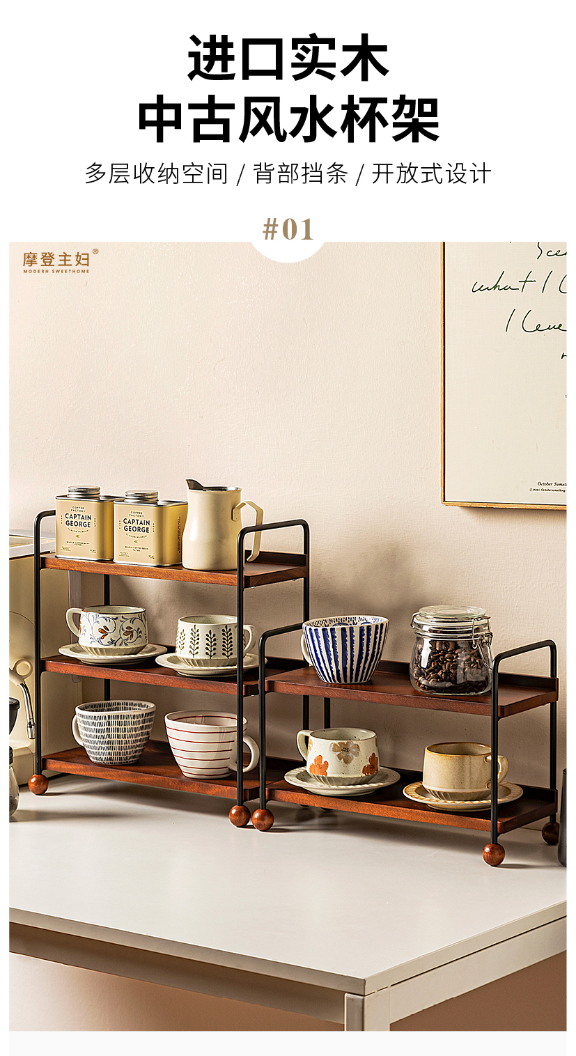 摩登主妇实木杯架杯子收纳置物架中古风轻奢咖啡杯水杯餐桌整理架