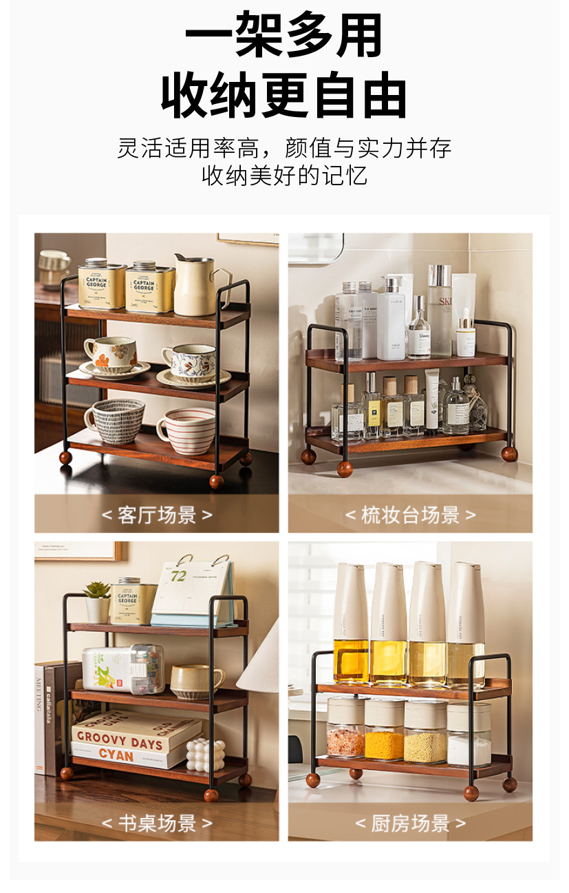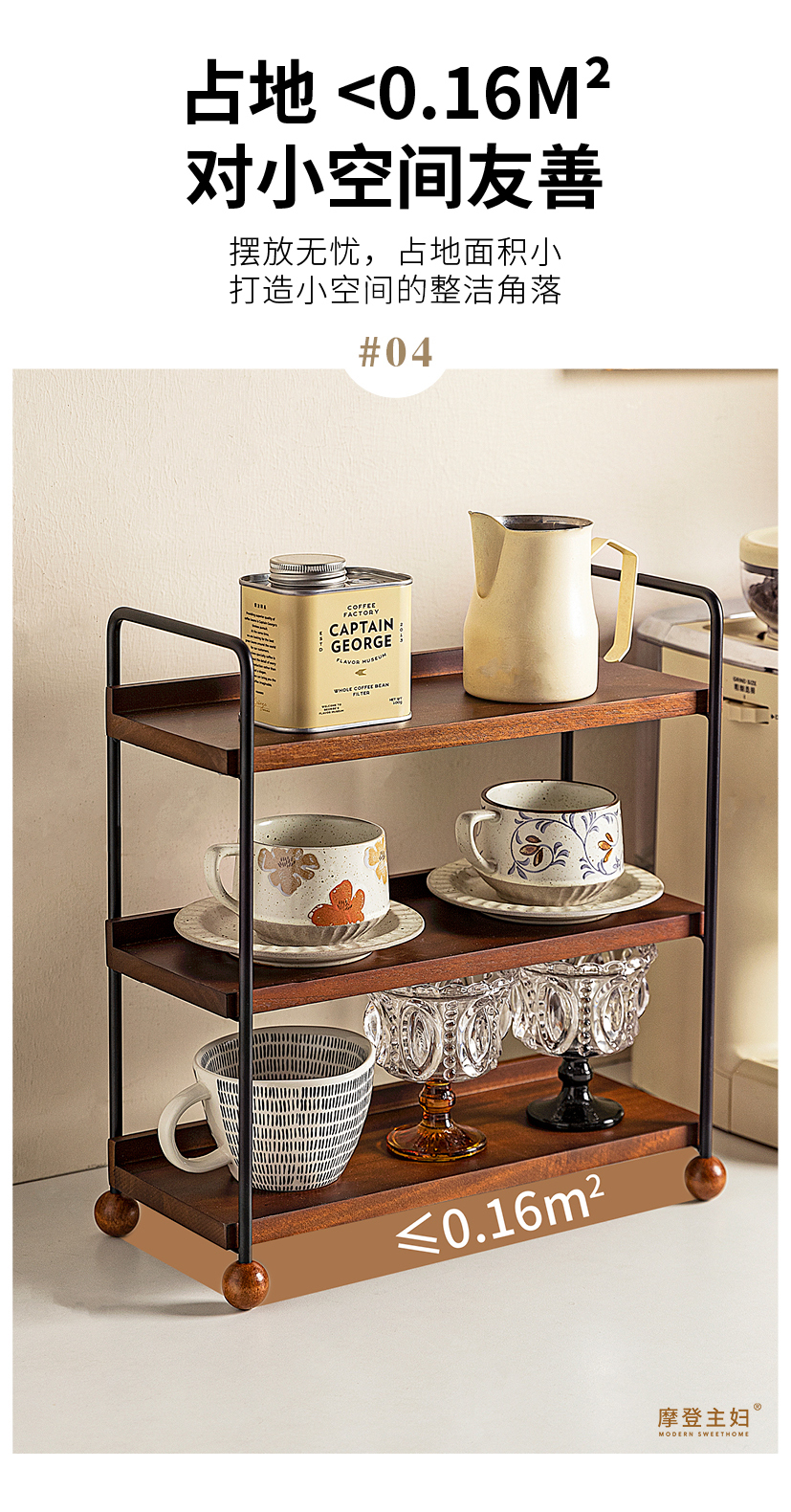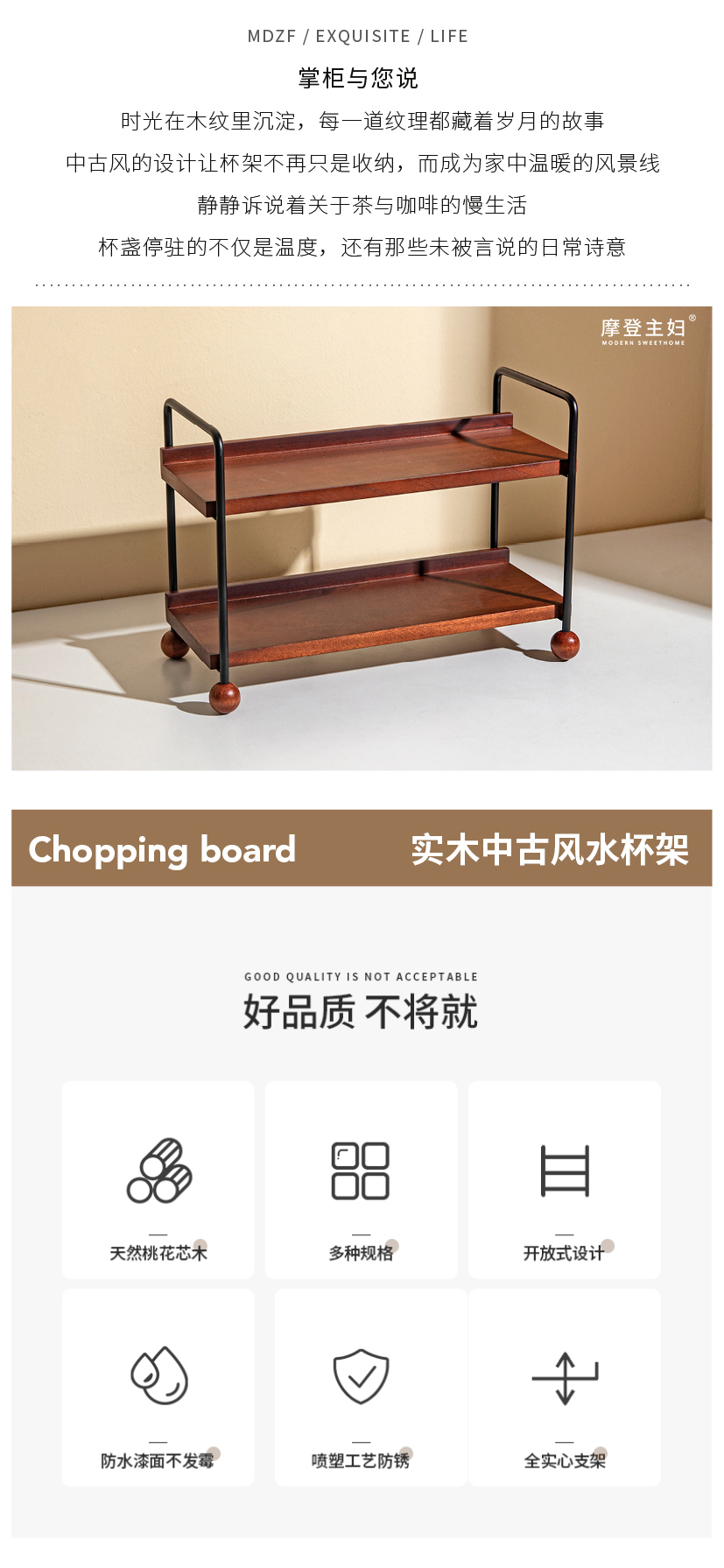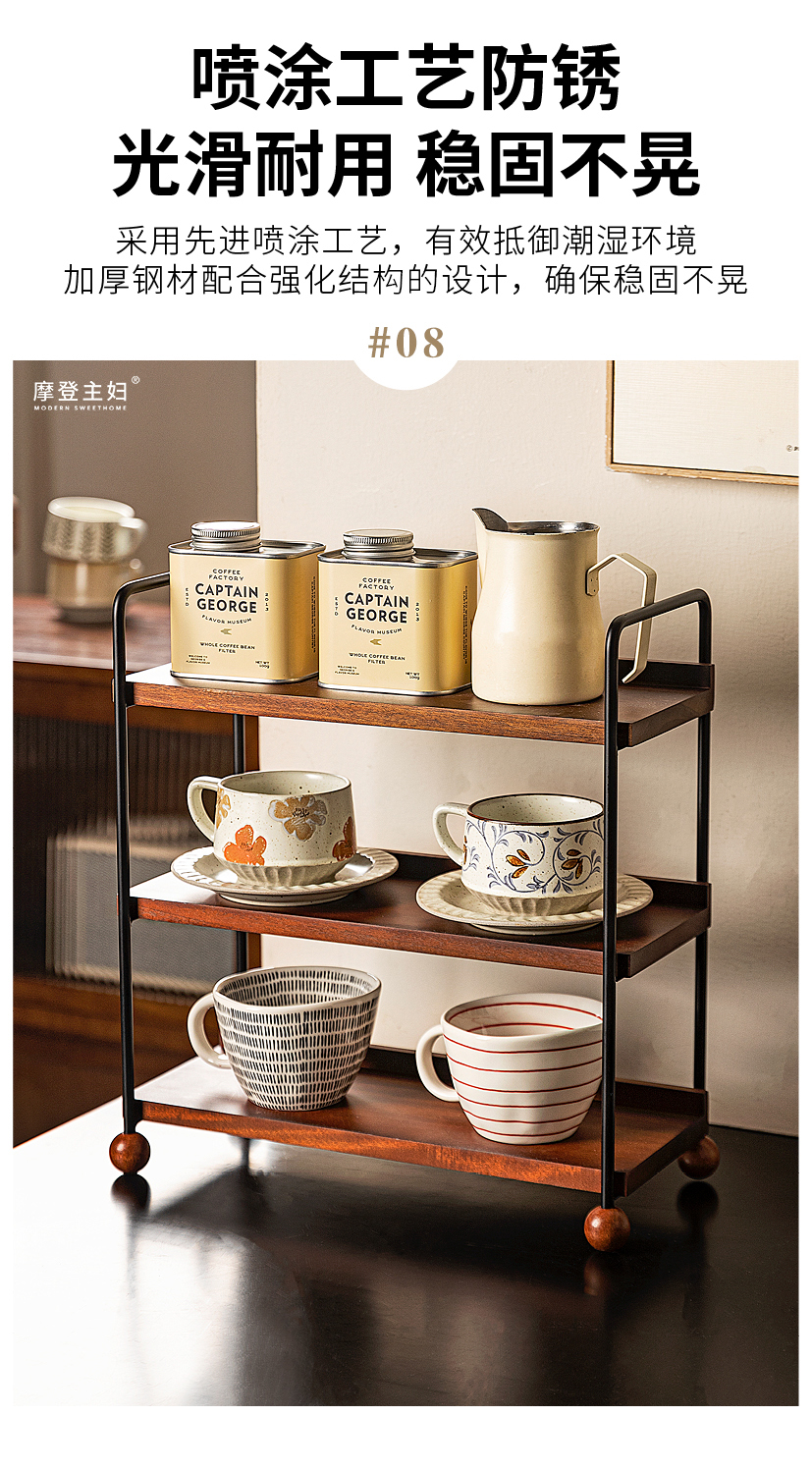 摩登主妇实木杯架杯子收纳置物架中古风轻奢咖啡杯水杯餐桌整理架