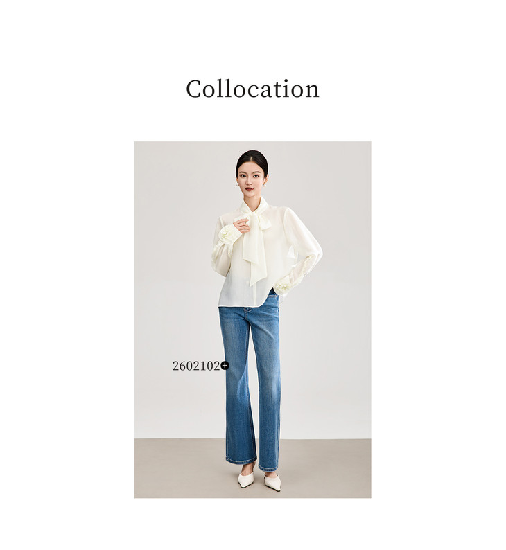 优雅法式浪漫花朵装饰通勤飘带领天丝衬衫WL2602208 商品图4