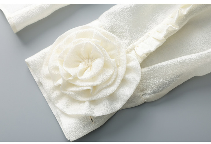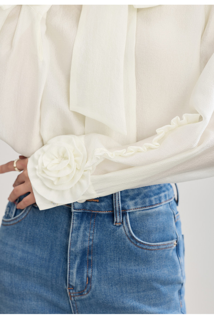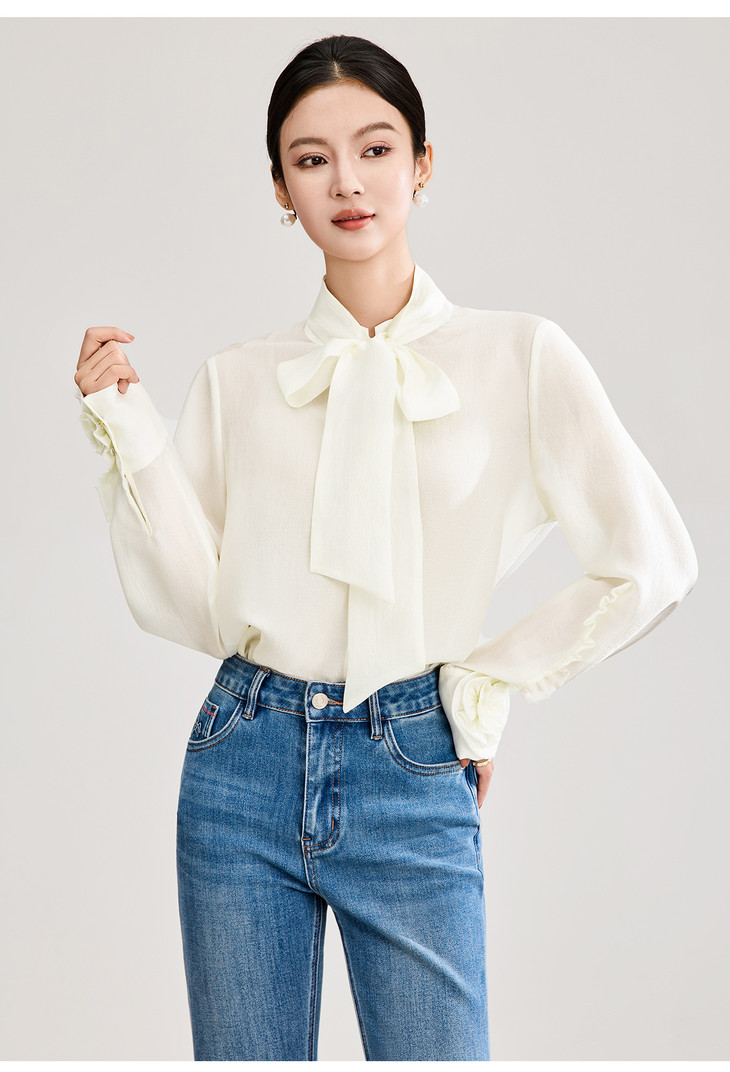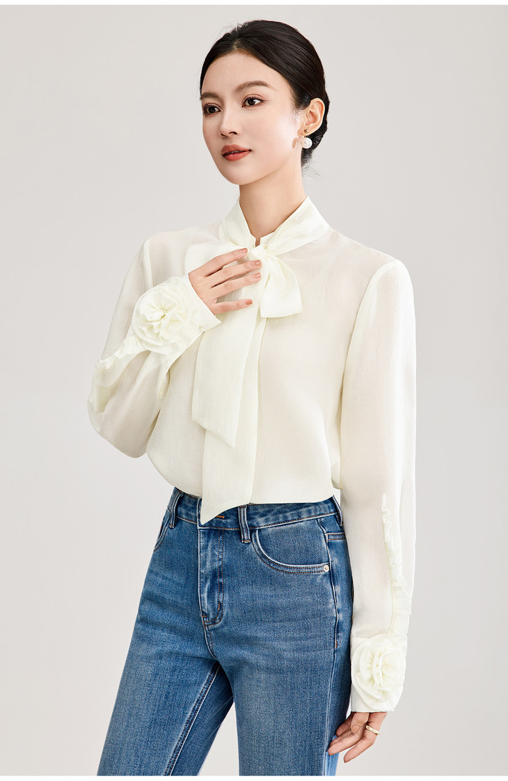 优雅法式浪漫花朵装饰通勤飘带领天丝衬衫WL2602208