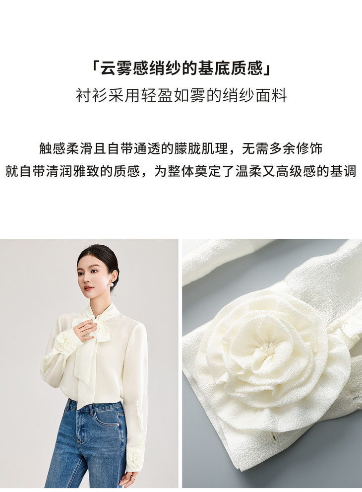 优雅法式浪漫花朵装饰通勤飘带领天丝衬衫WL2602208 商品图3