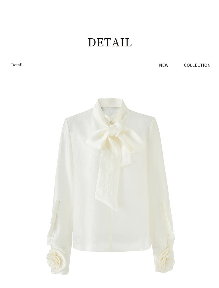 优雅法式浪漫花朵装饰通勤飘带领天丝衬衫WL2602208 商品图1