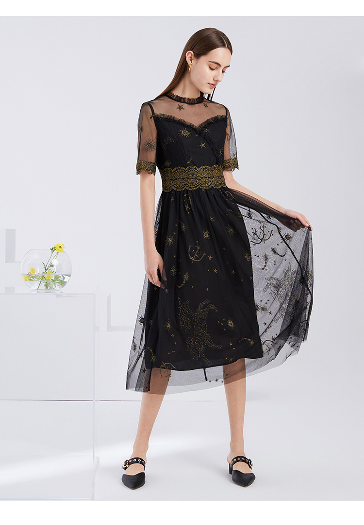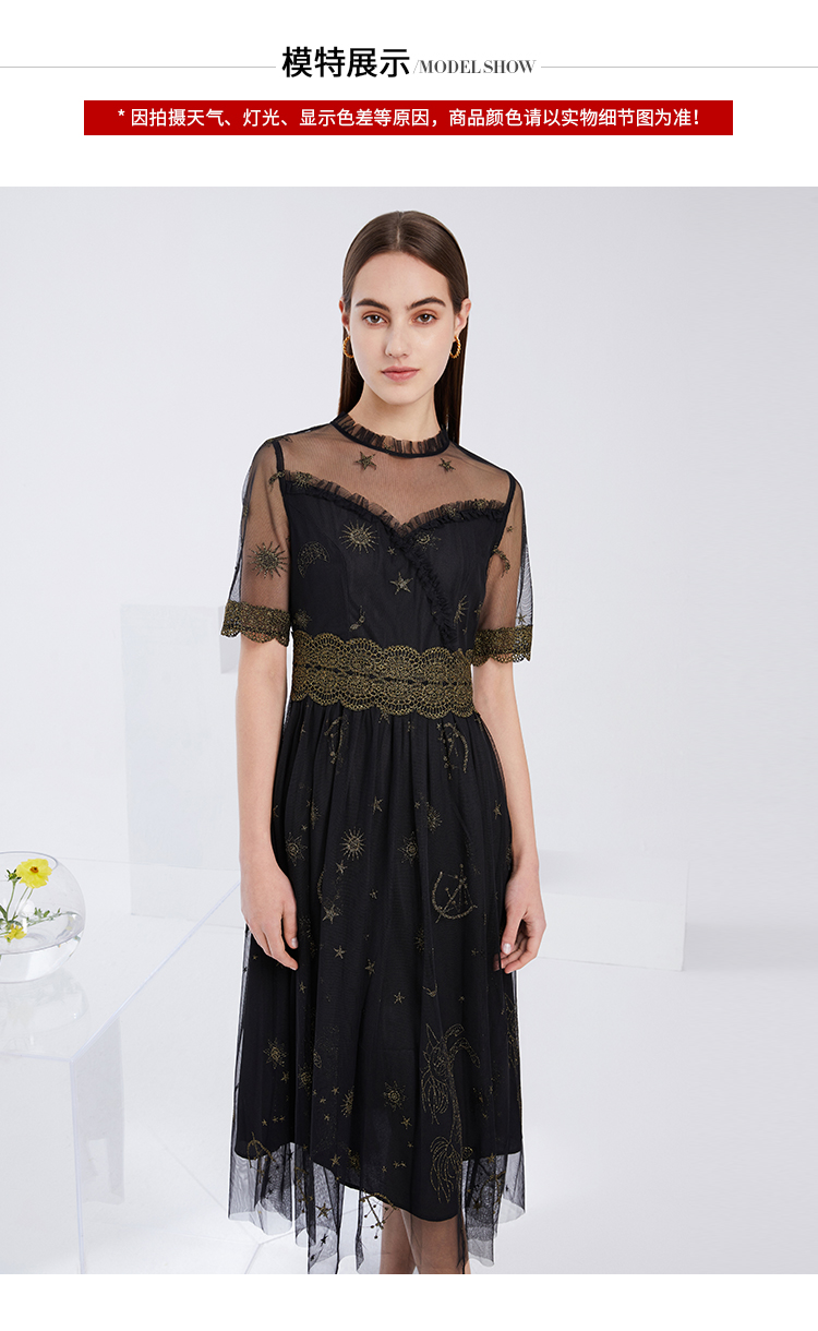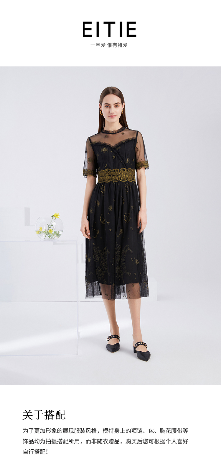 EITIE爱特爱夏季新款洋气网纱时尚性感一字领收腰显瘦连衣裙6077711