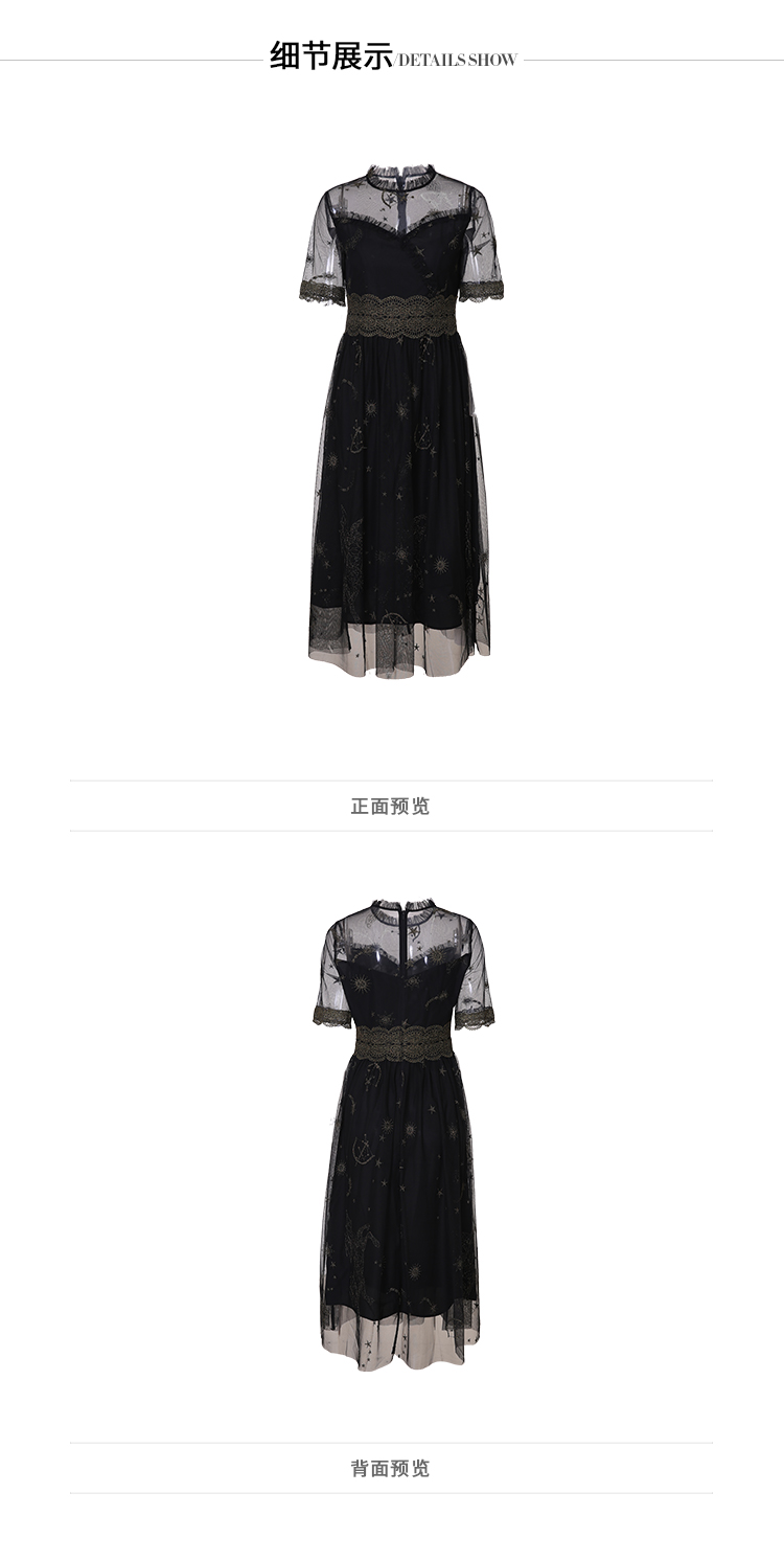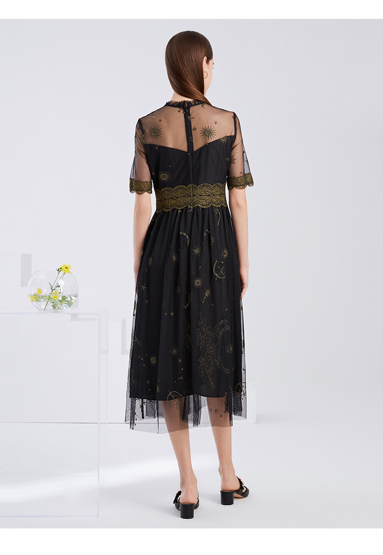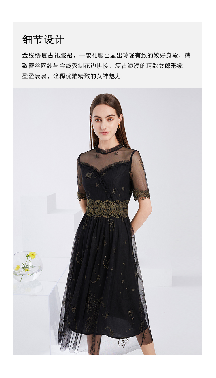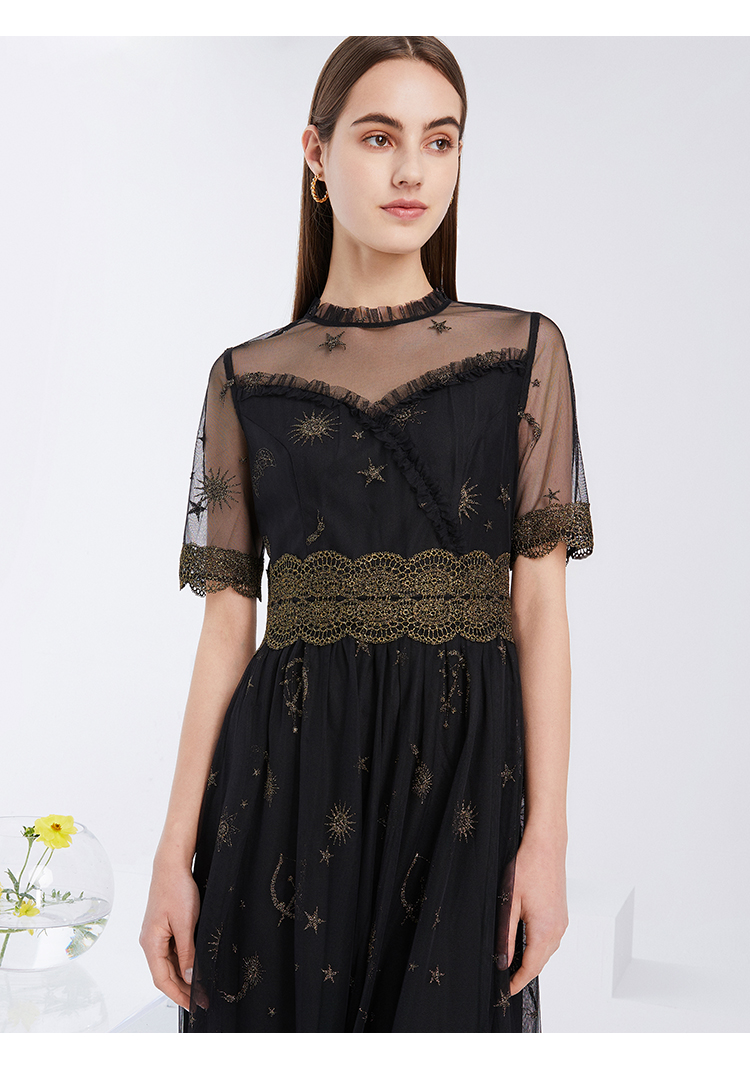 EITIE爱特爱夏季新款洋气网纱时尚性感一字领收腰显瘦连衣裙6077711