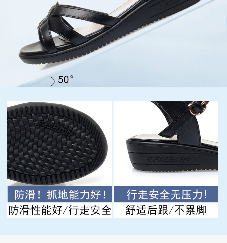 夏季新款,中跟坡跟水钻防滑底舒适凉鞋KQ-PT8603