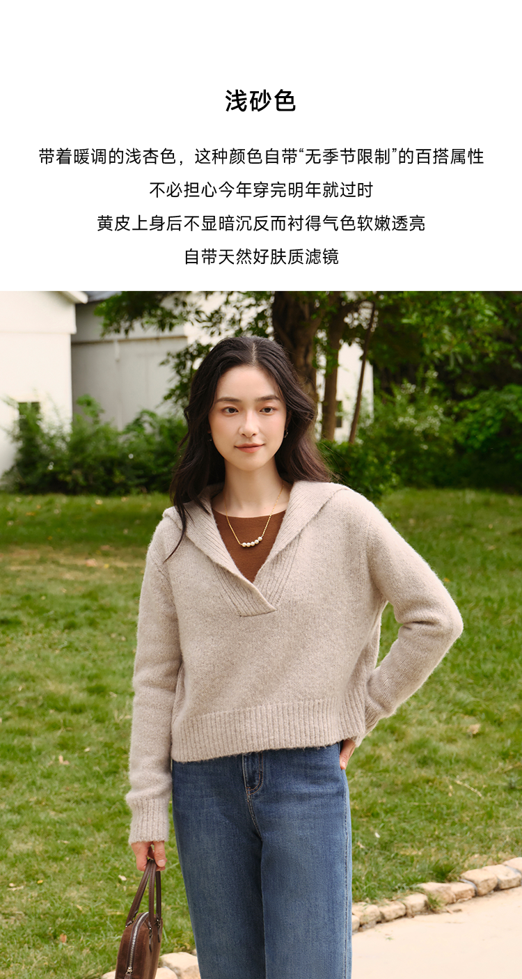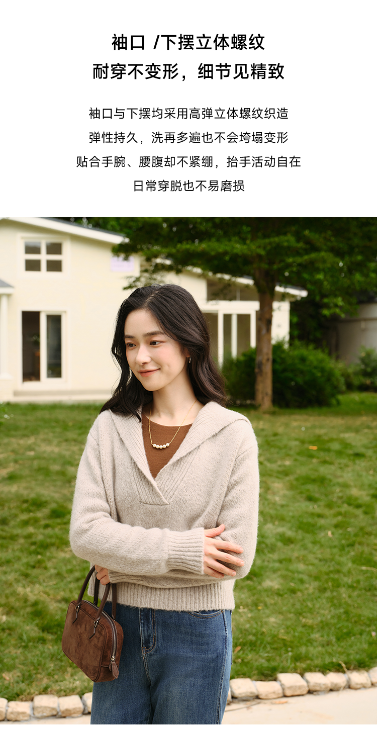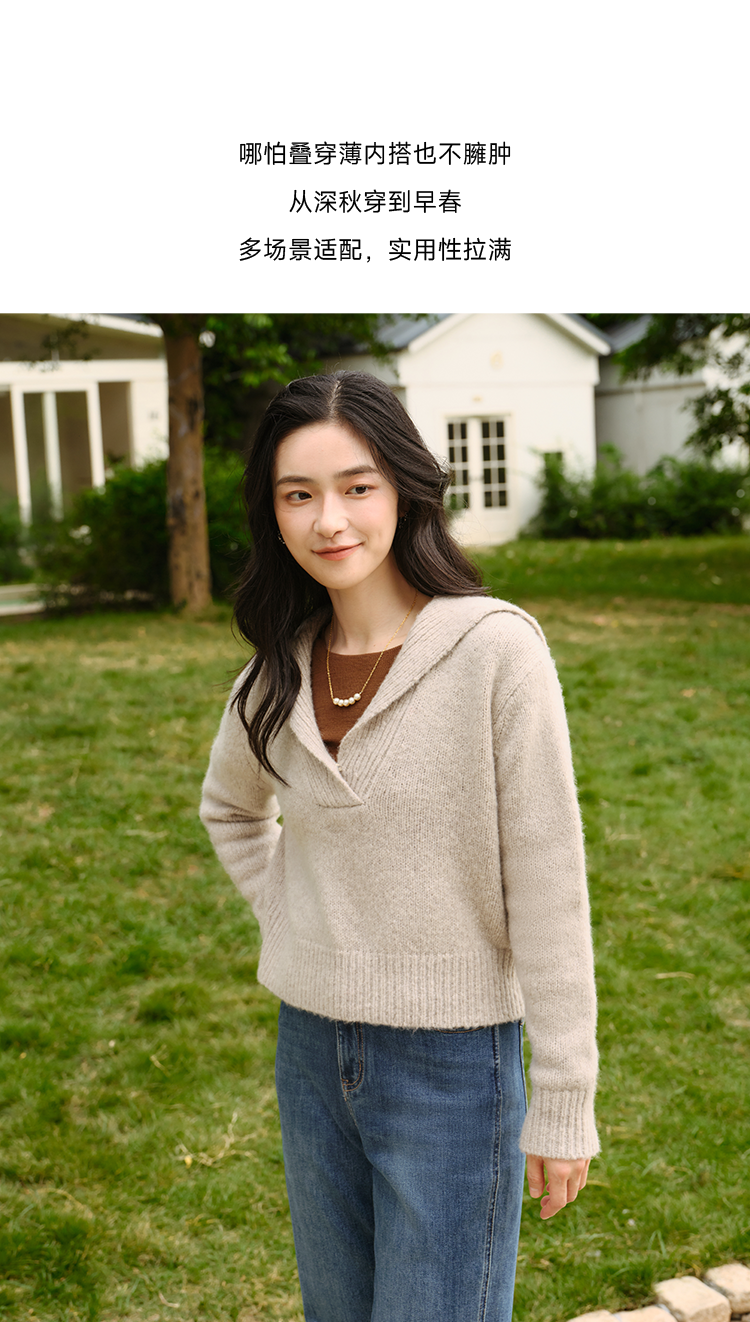 显瘦慵懒海军领美丽诺羊毛羊绒混纺毛衫FCF3WST029
