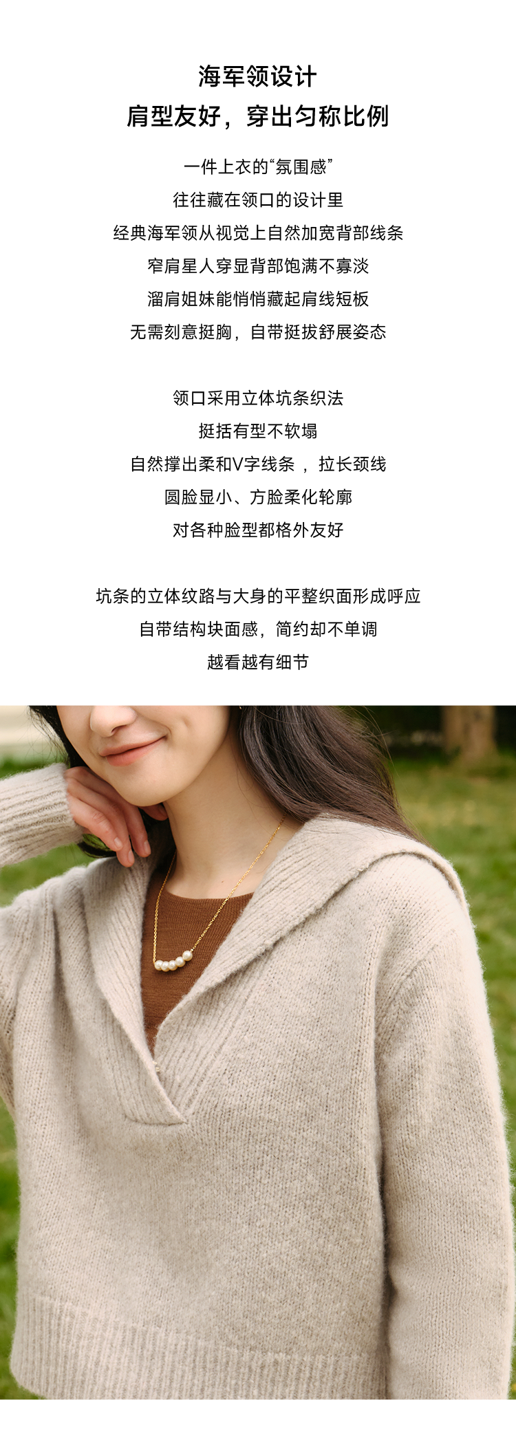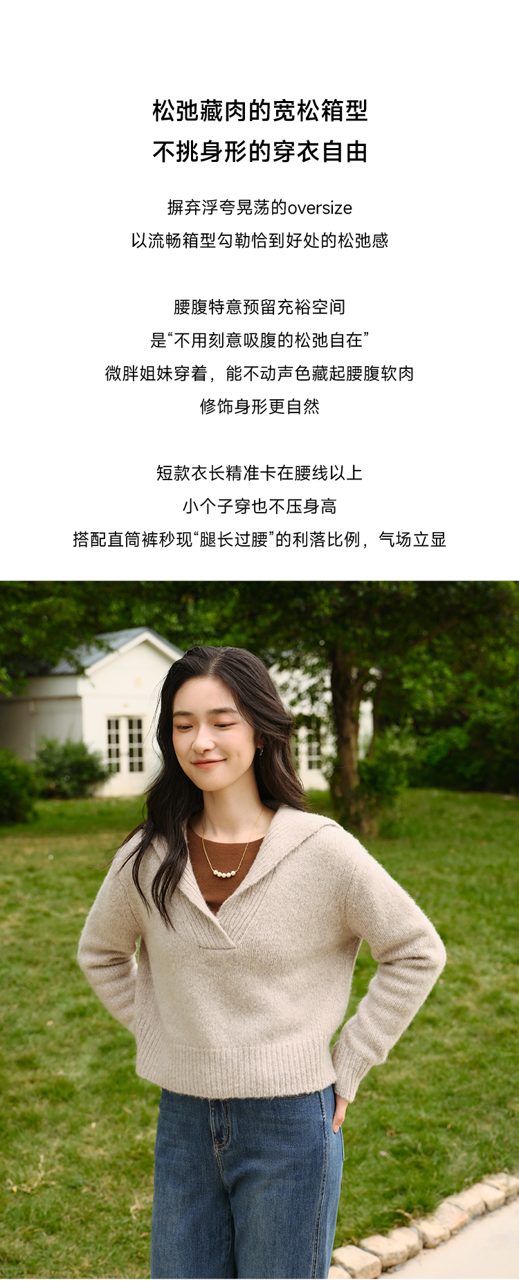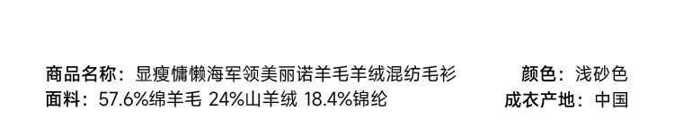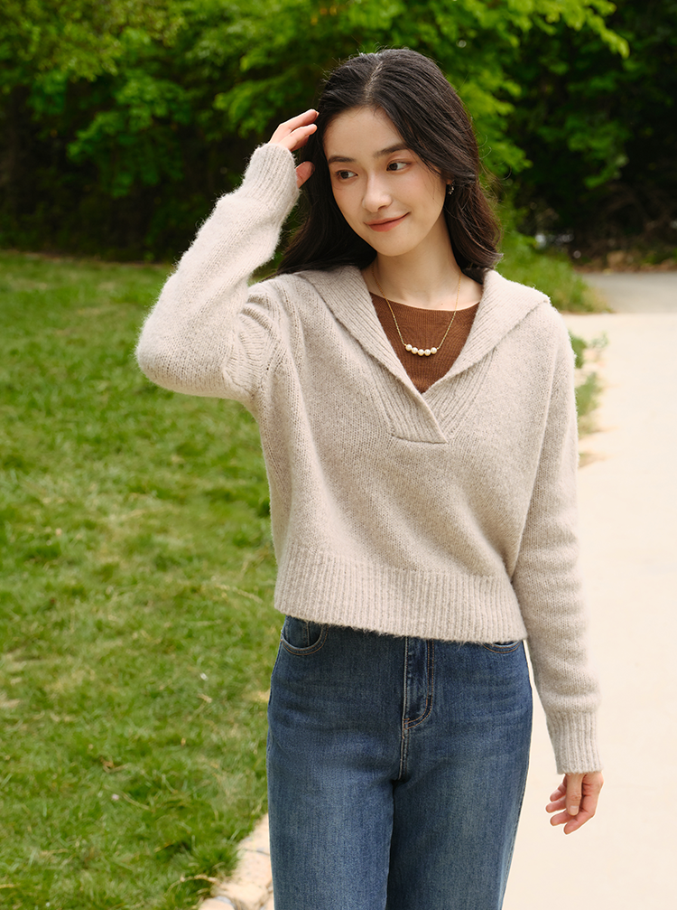显瘦慵懒海军领美丽诺羊毛羊绒混纺毛衫FCF3WST029