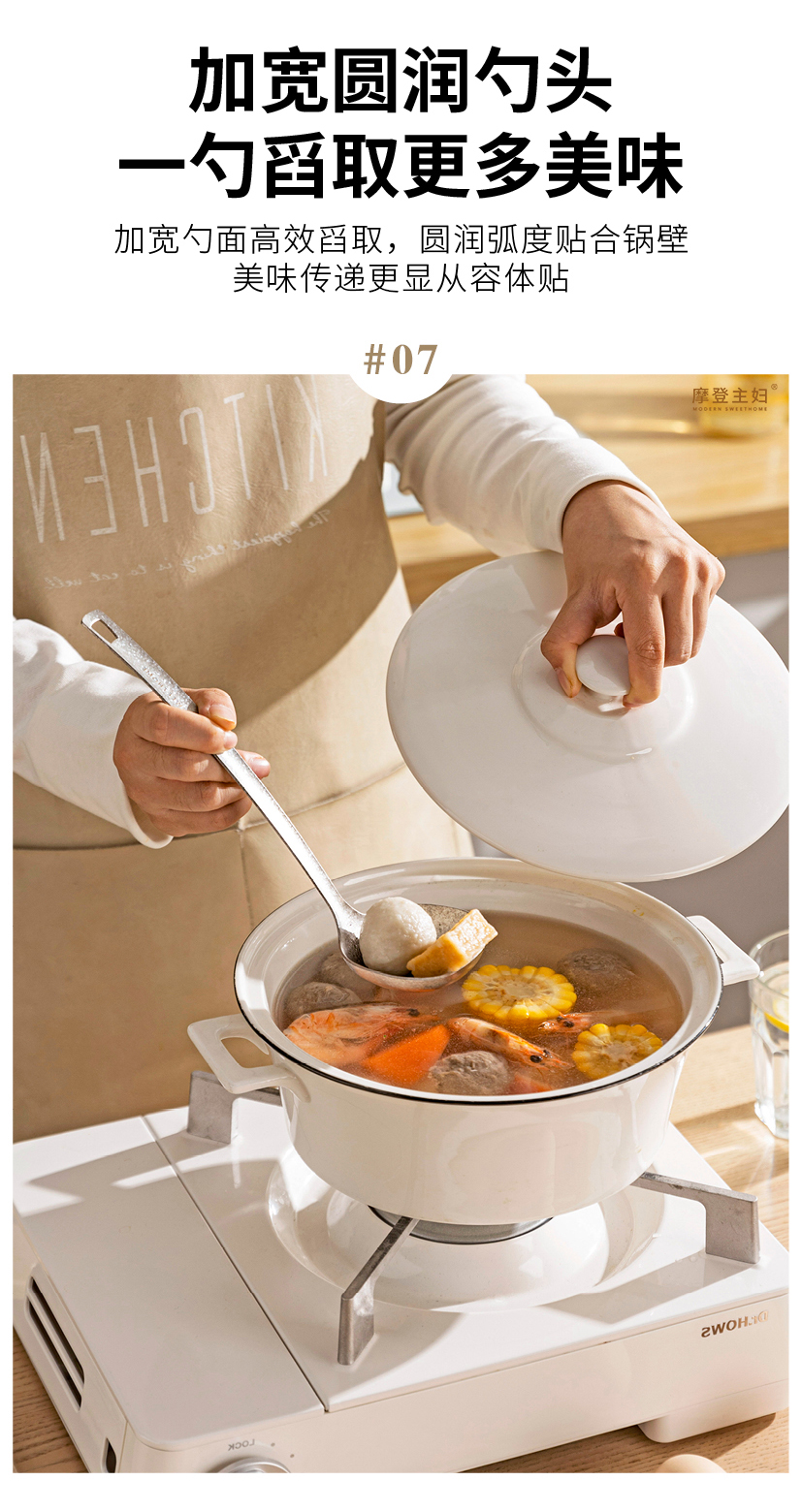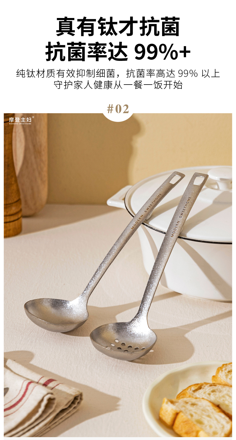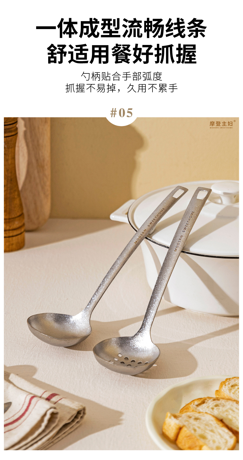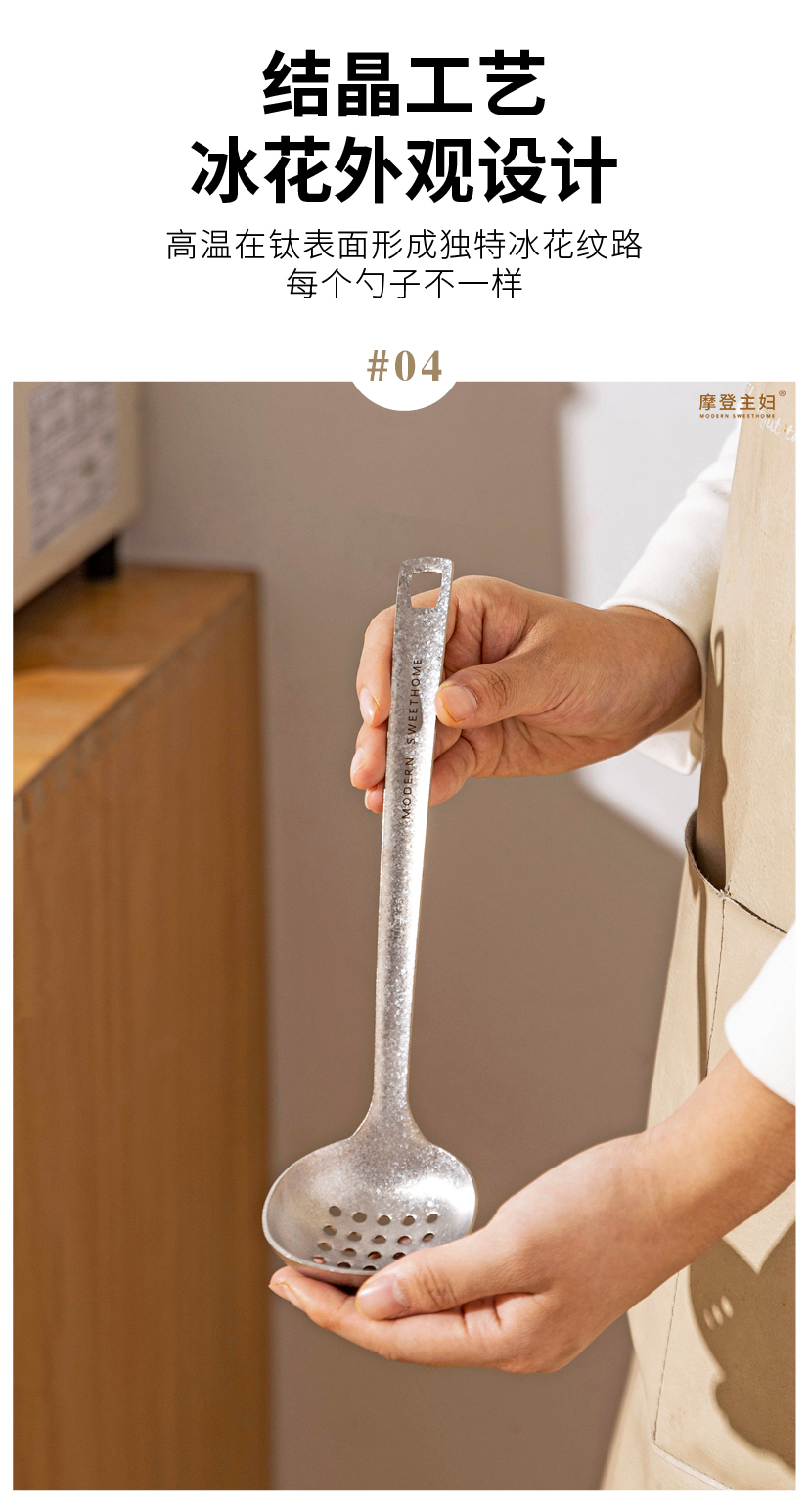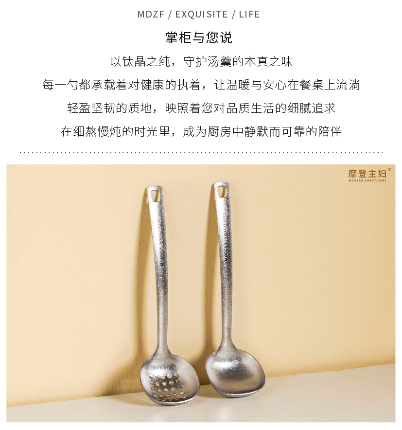 摩登主妇纯钛汤勺家用高档精致长柄大号火锅漏勺食品级盛汤粥勺子