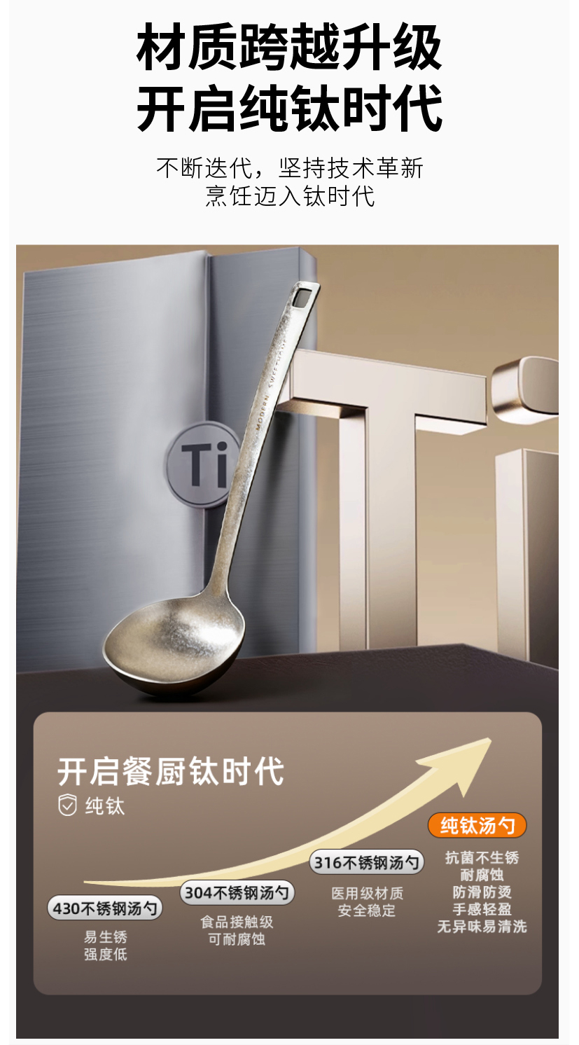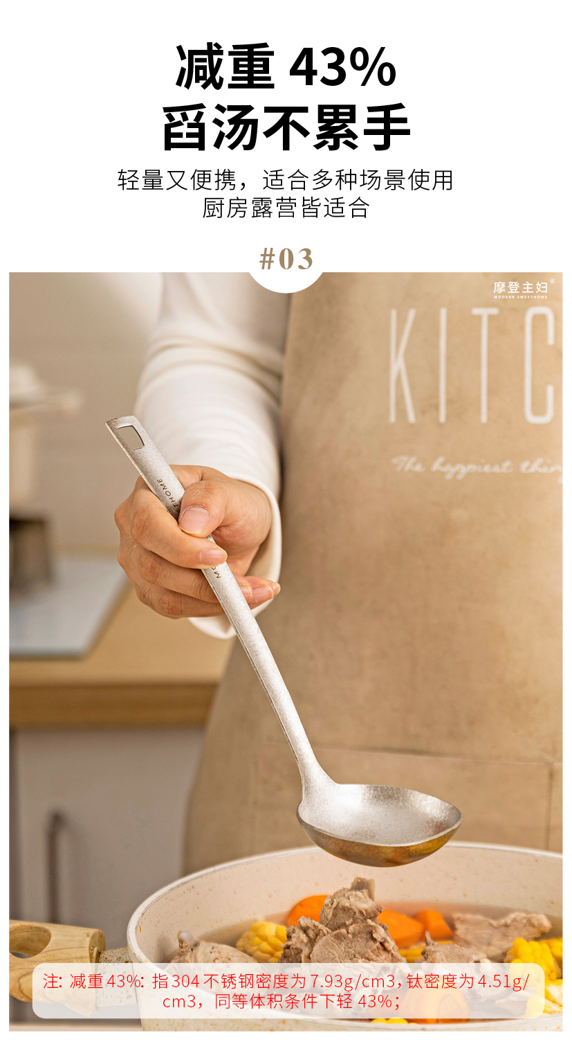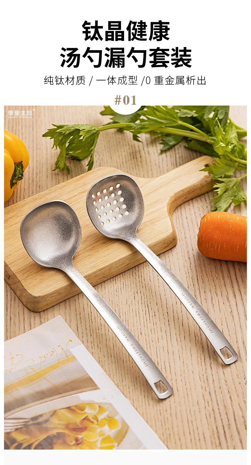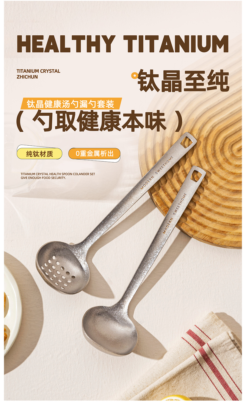 摩登主妇纯钛汤勺家用高档精致长柄大号火锅漏勺食品级盛汤粥勺子