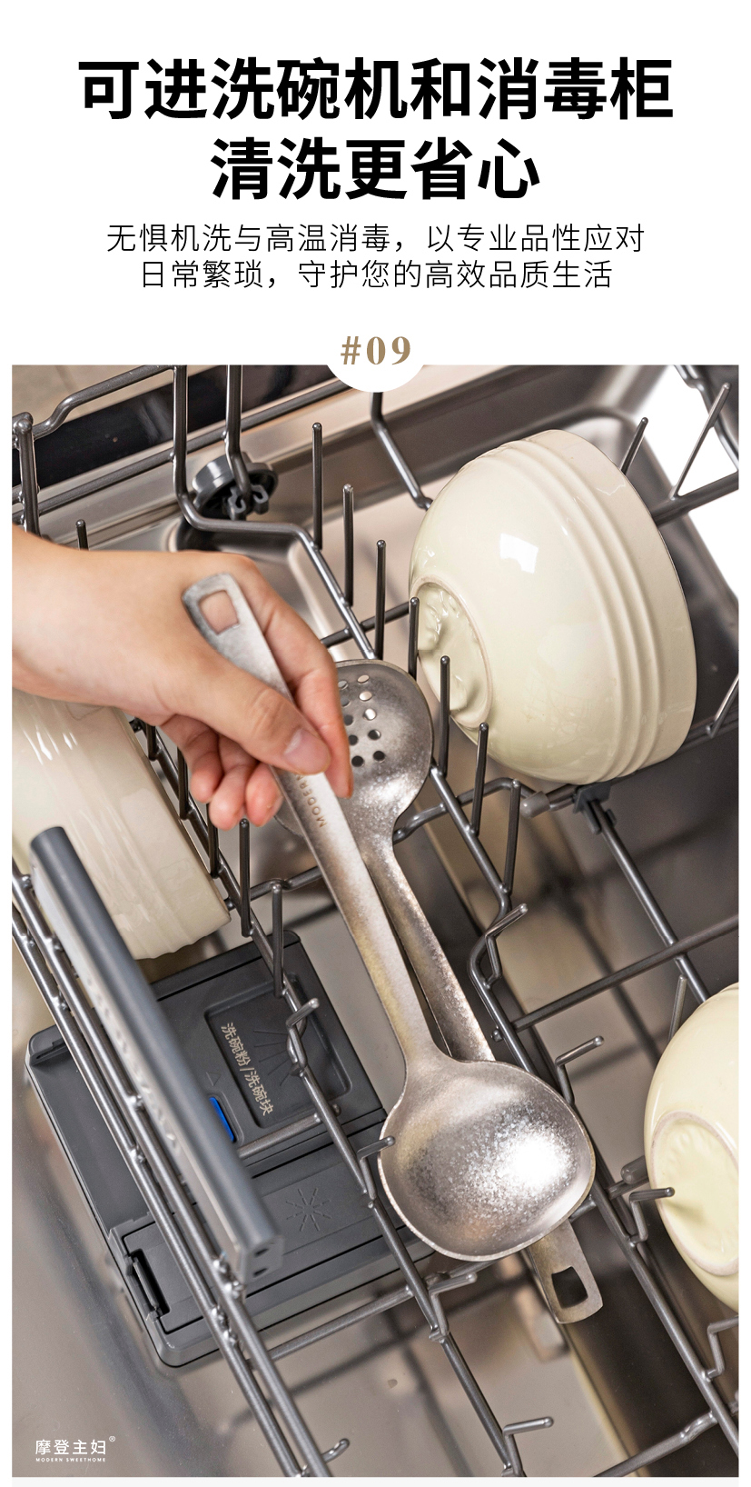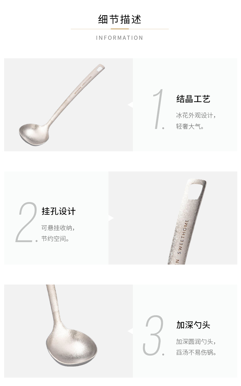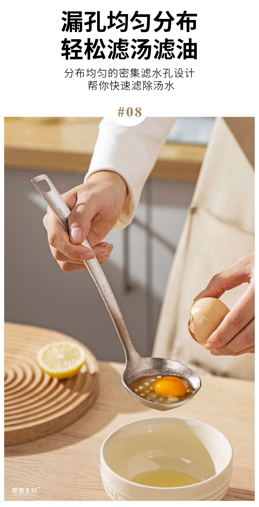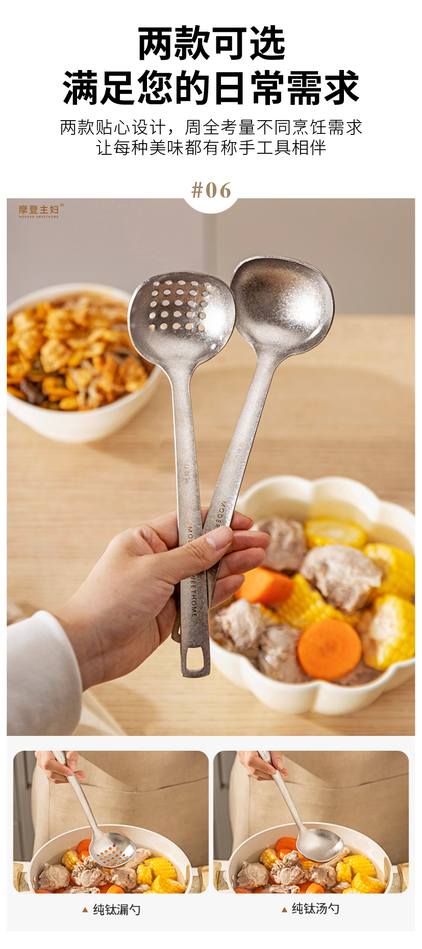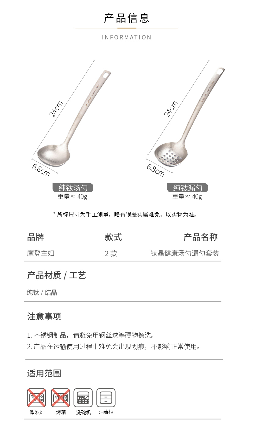 摩登主妇纯钛汤勺家用高档精致长柄大号火锅漏勺食品级盛汤粥勺子