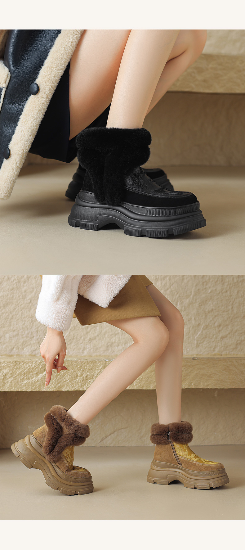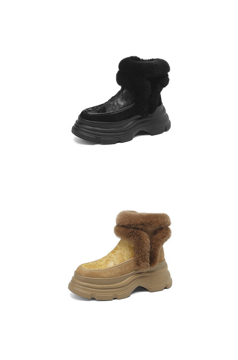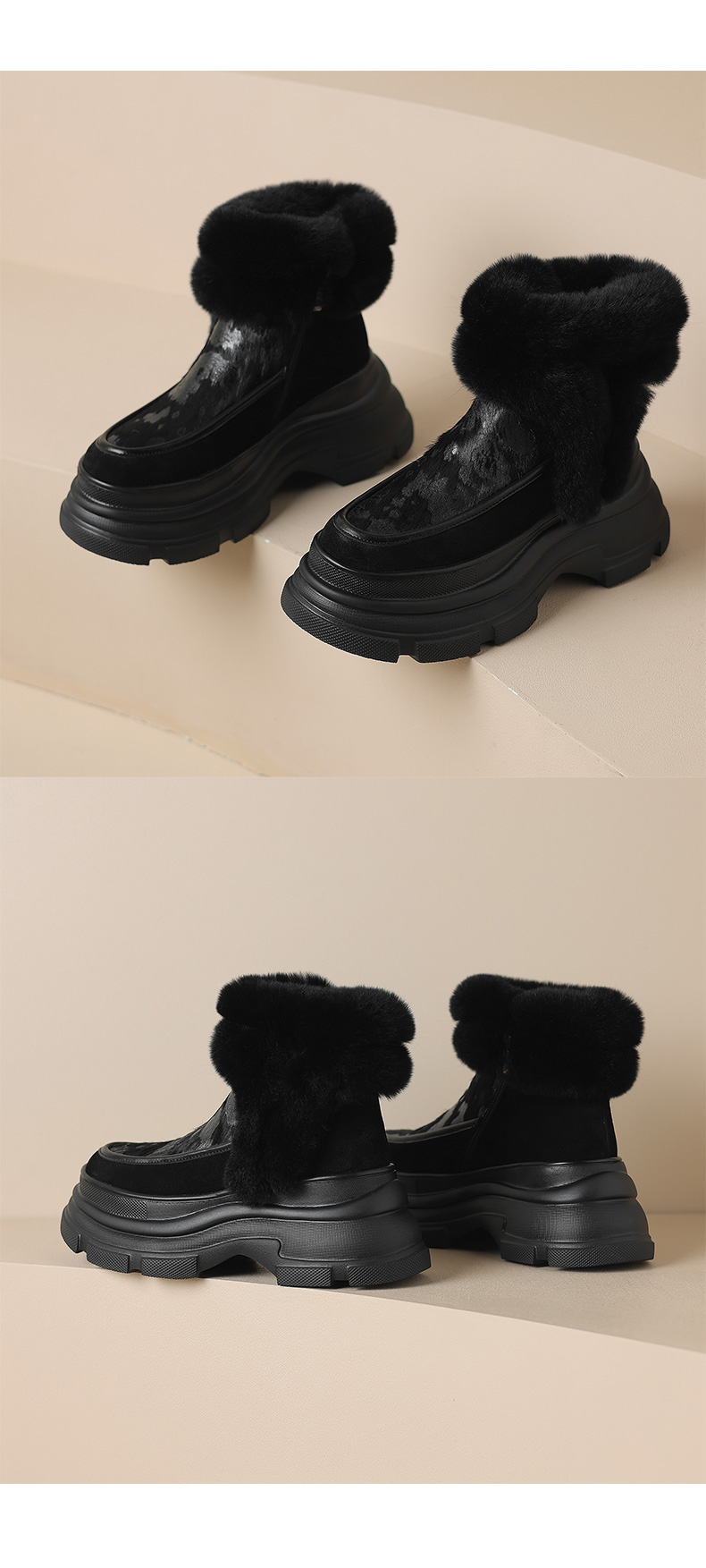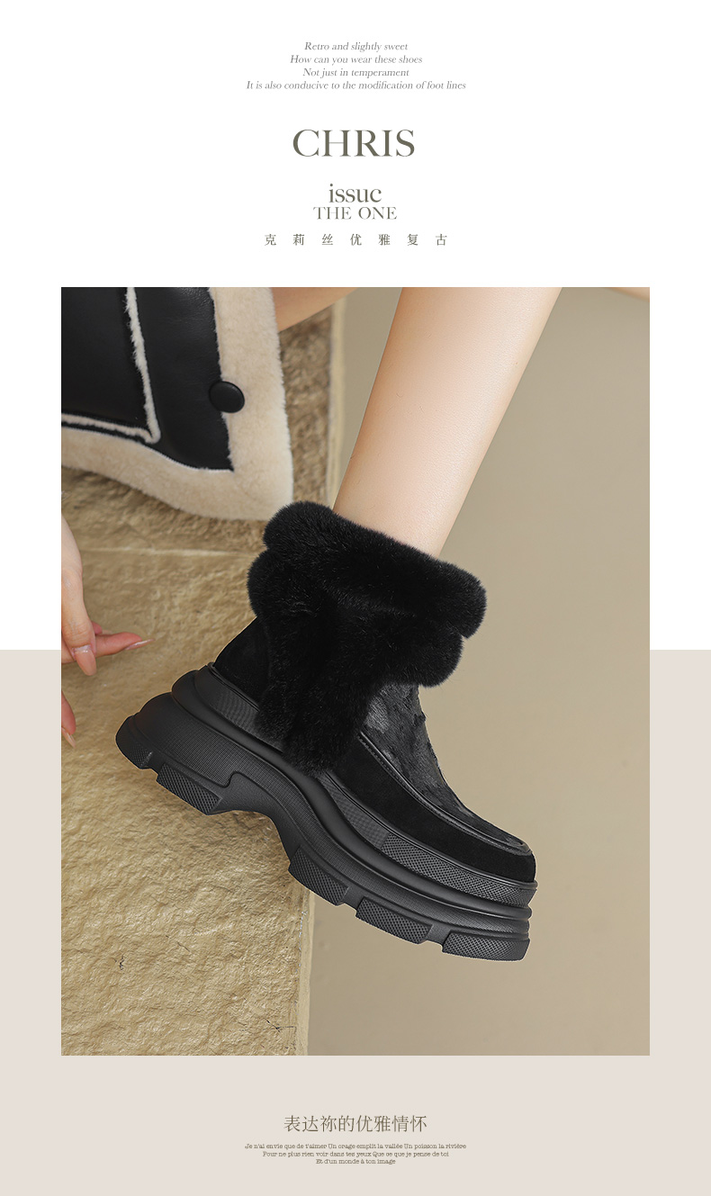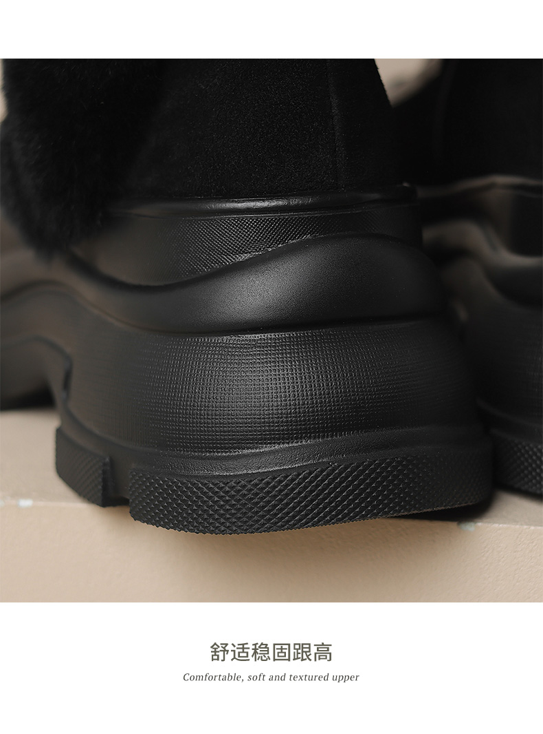 冬季新款,牛翻皮+兔毛厚底撞色保暖短靴TYM-17225