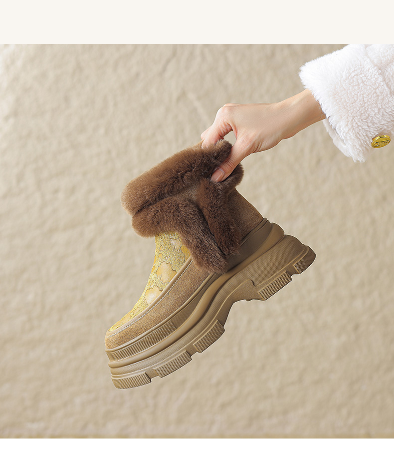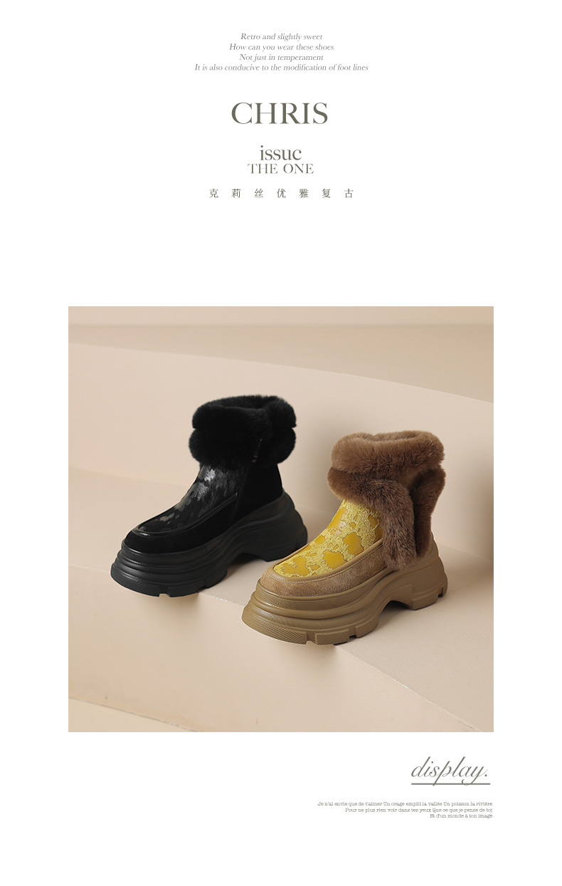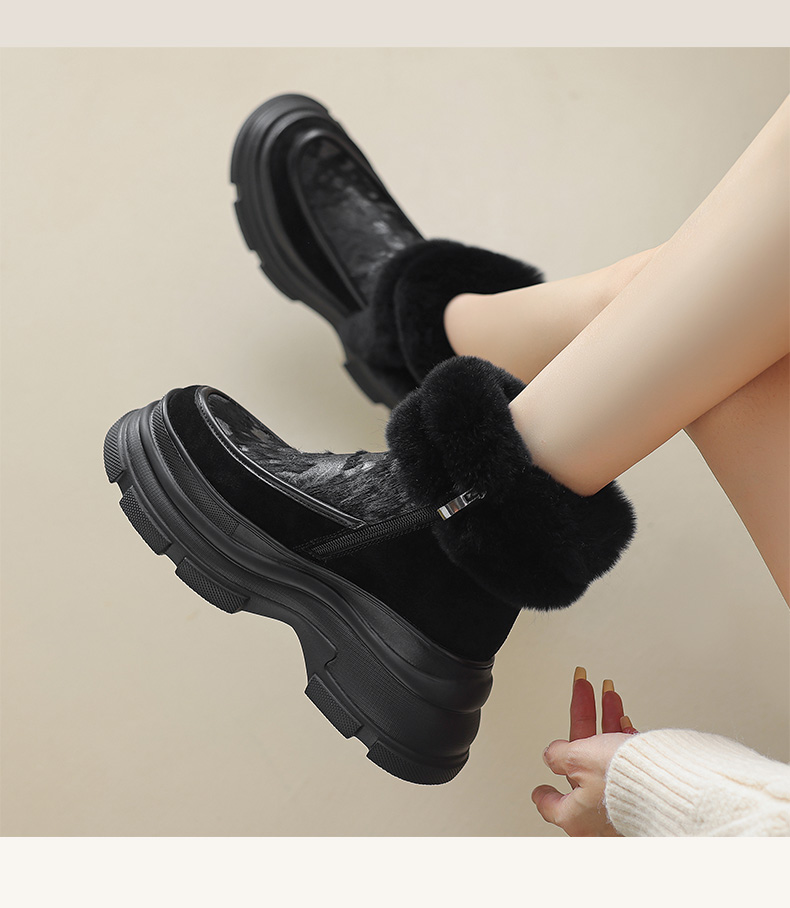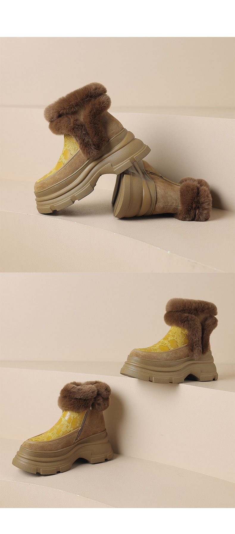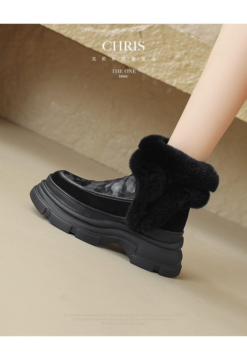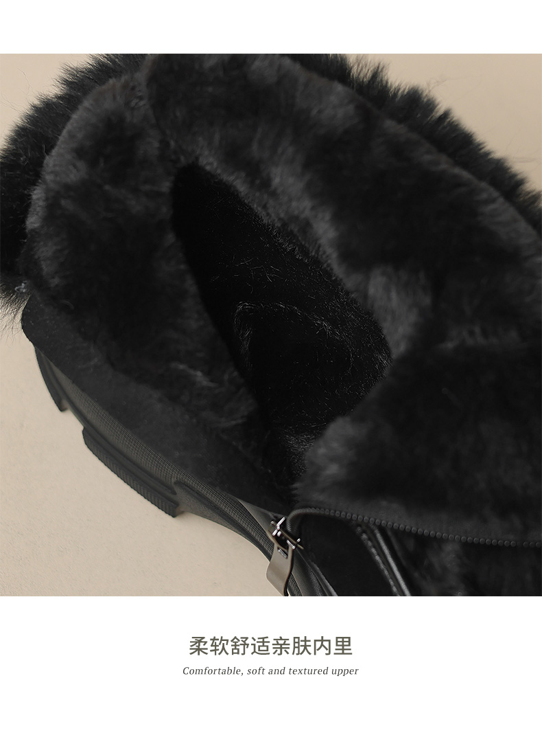 冬季新款,牛翻皮+兔毛厚底撞色保暖短靴TYM-17225