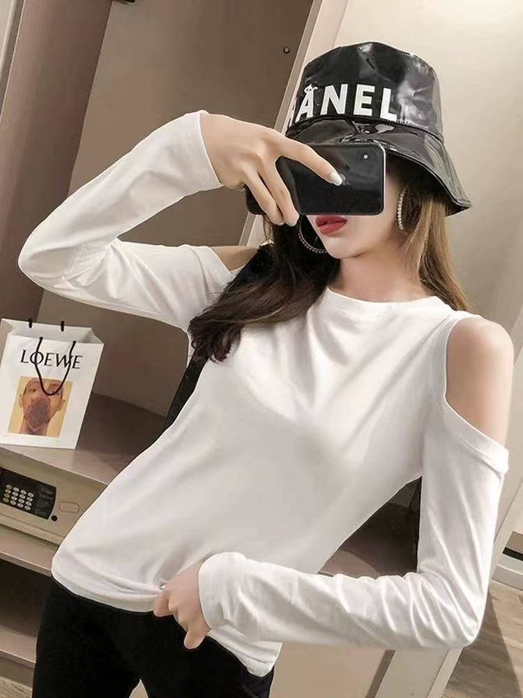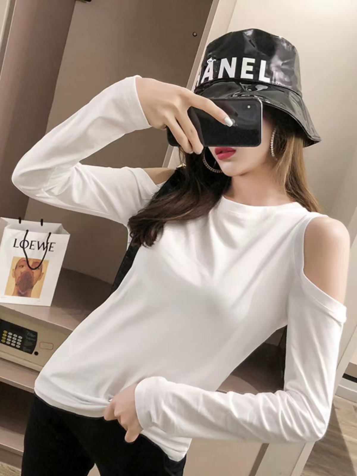 418良粉节|2026 活动爆款 不支持退【自营】面料很密实【长袖打底】95%棉~露肩长袖T恤ins超火洋气打底衫-喜出