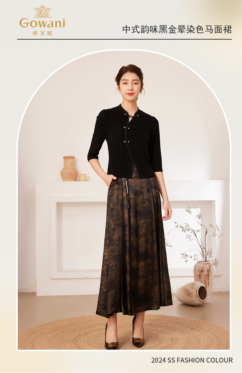 乔万尼国风半身长裙初秋新款新中式马面裙EM3D327