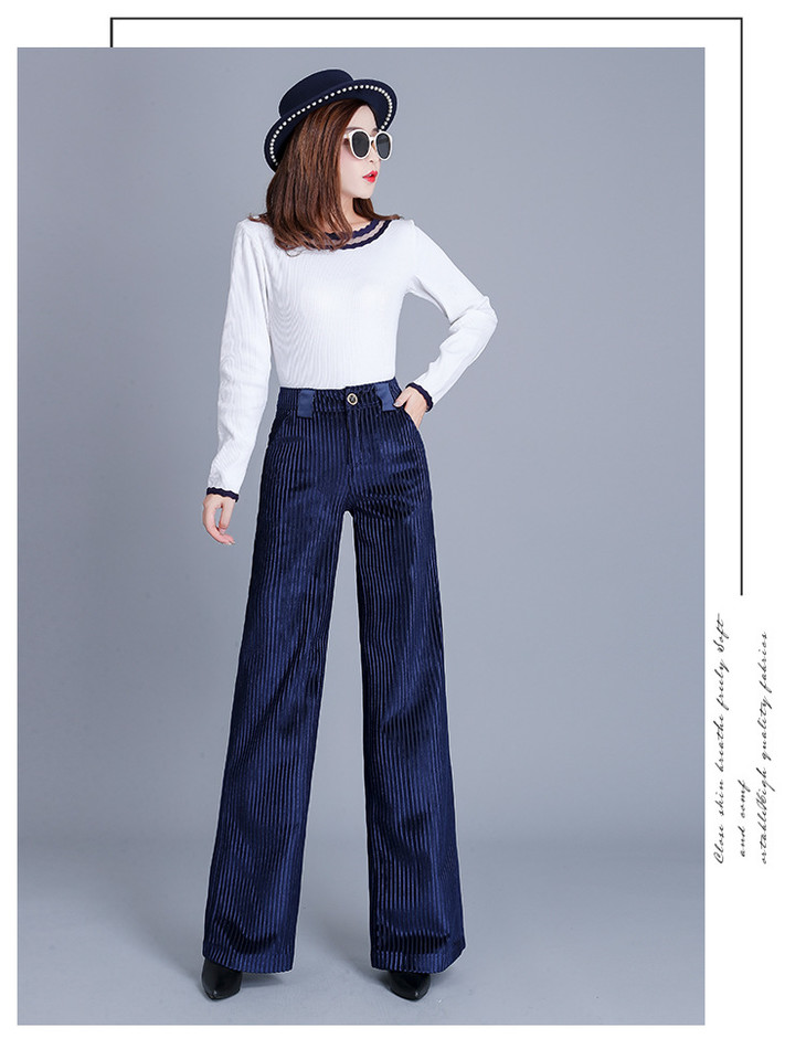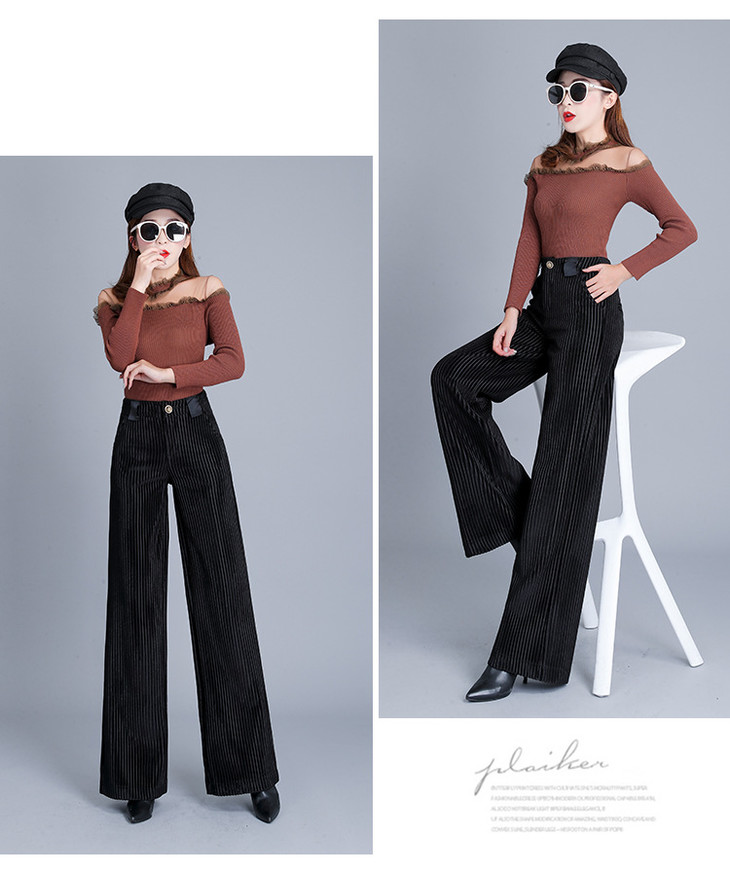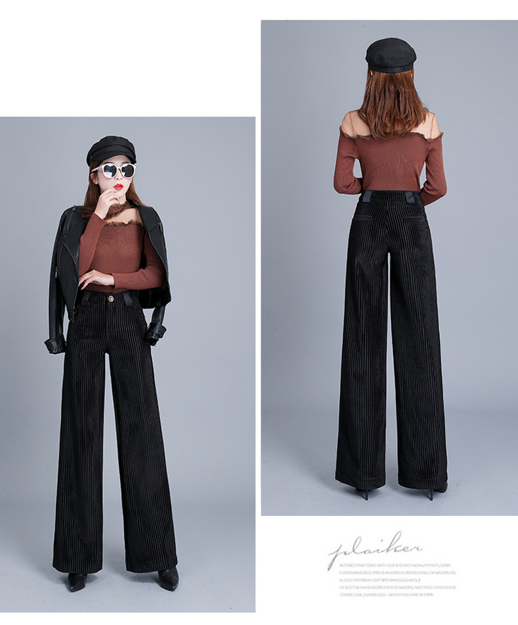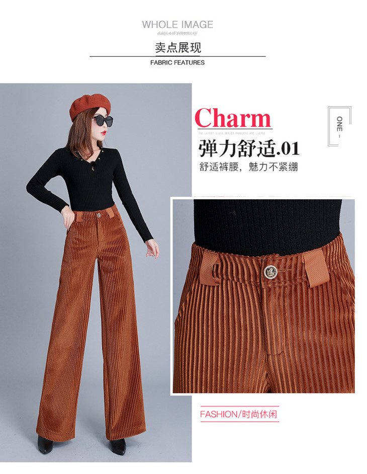 HT-BM-A110-8036-5101秋冬新款加绒金丝条绒拖地阔腿裤