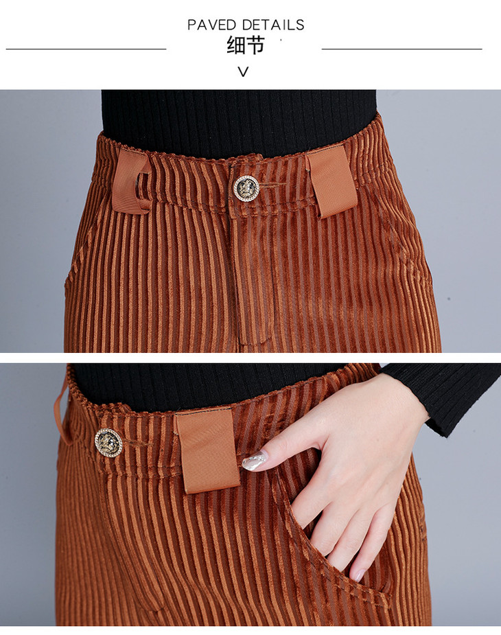 TZW-加绒加厚秋冬季灯芯绒裤子女妈妈装高腰中老年女裤条绒休闲直筒裤