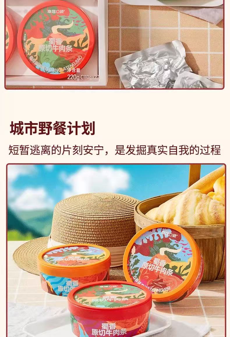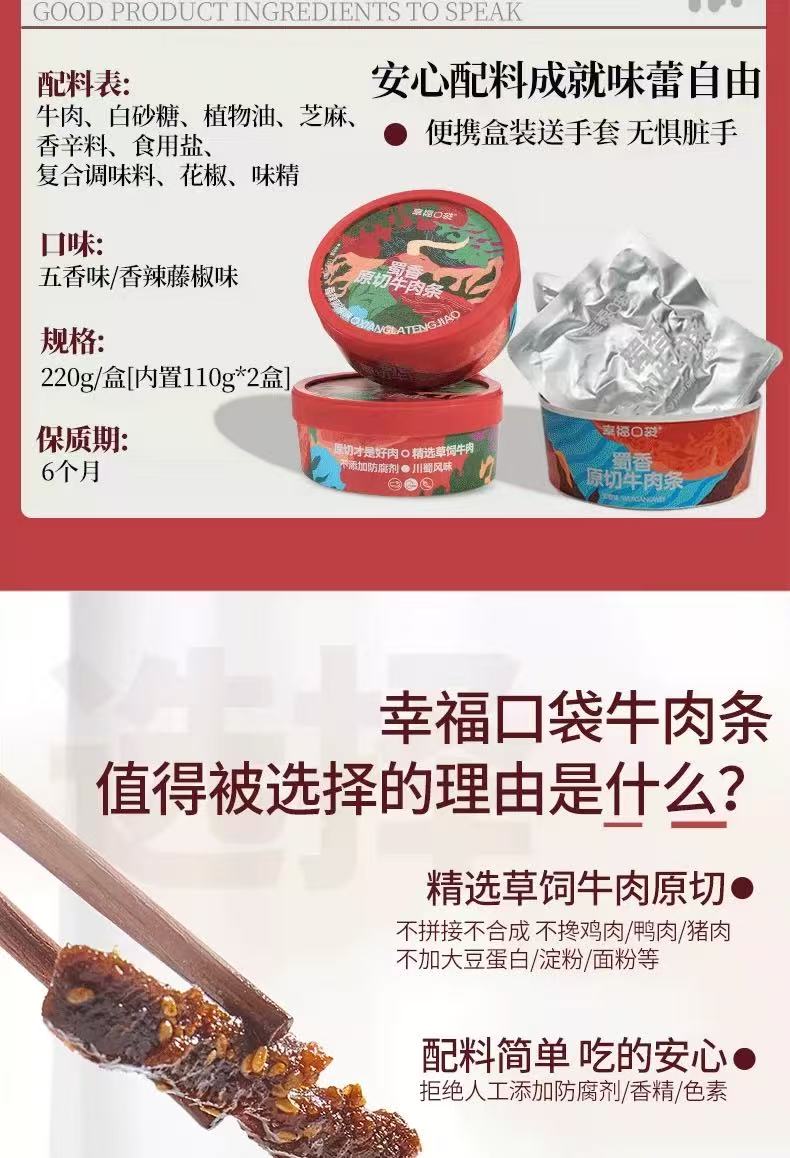 【甄选】幸福口袋蜀香原切牛肉条非油炸用料扎实肉香有嚼劲220g(110g*2小盒)/盒
