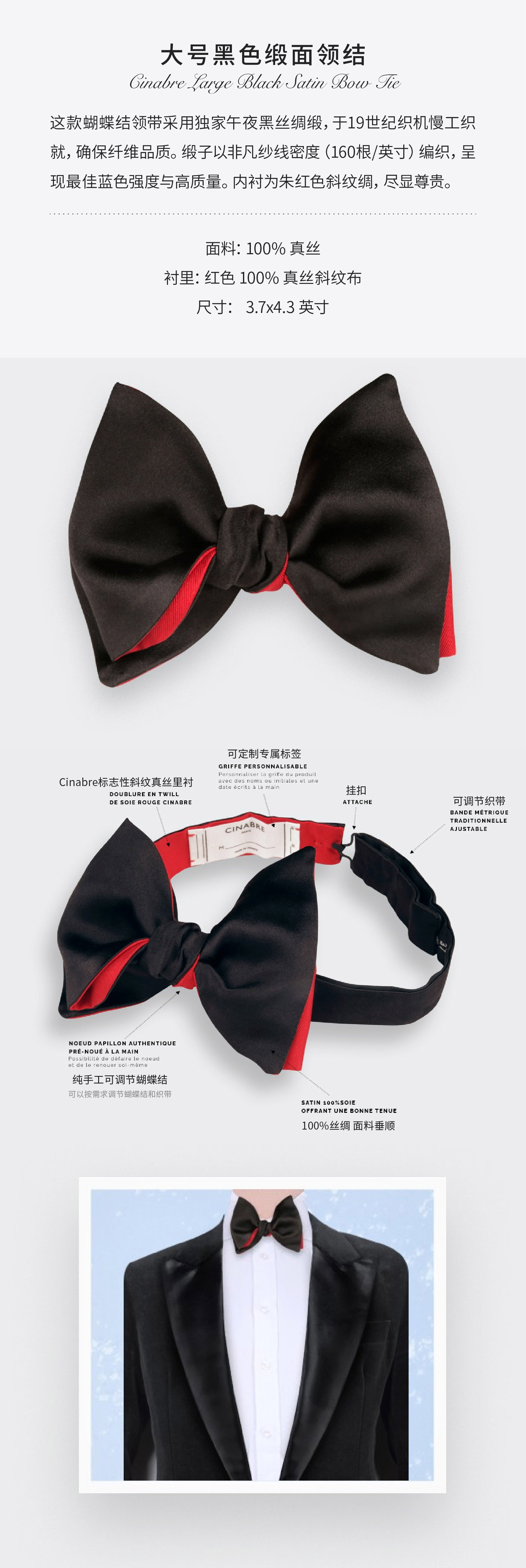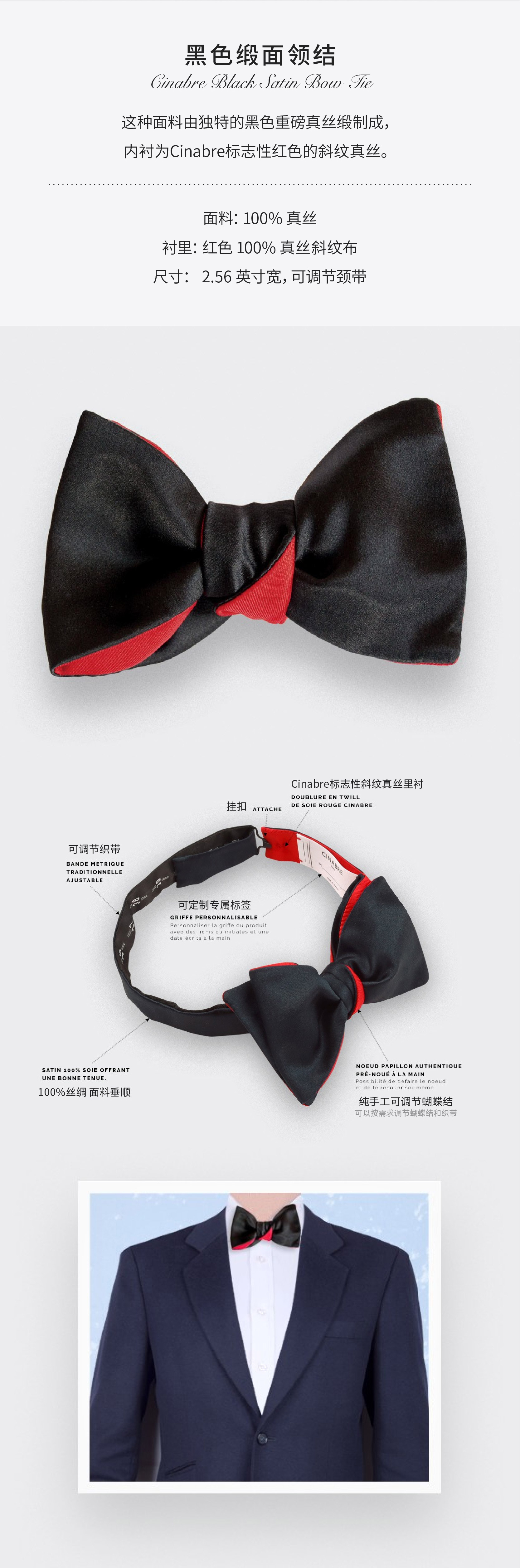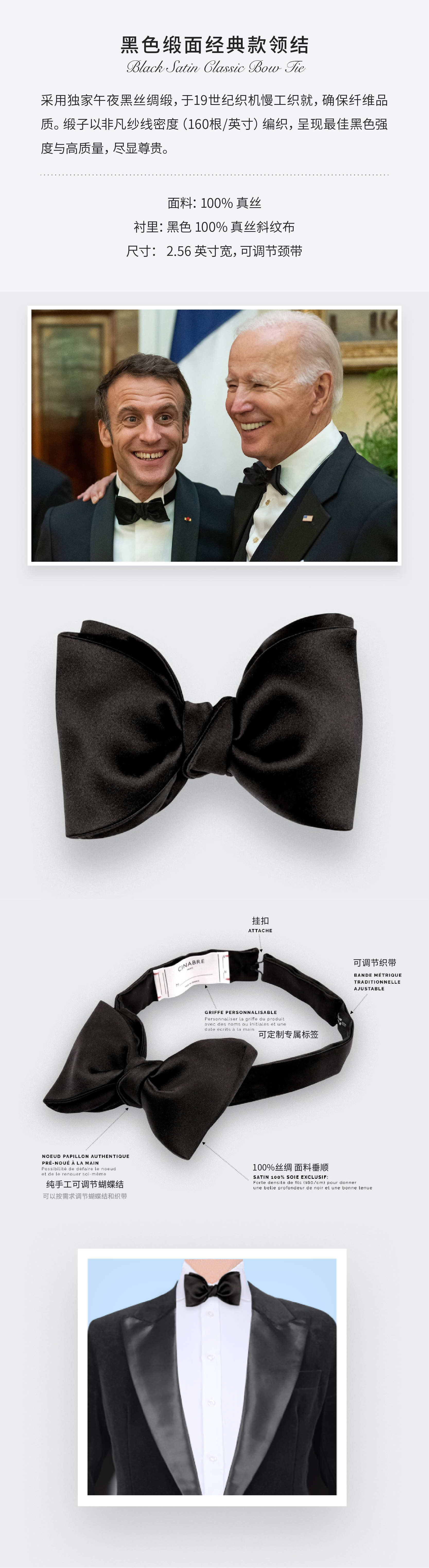 Cinabre真丝晚宴领结 马克龙总统同款 纯手工定制