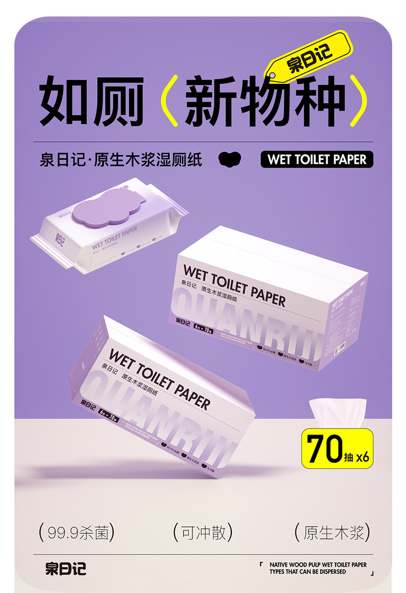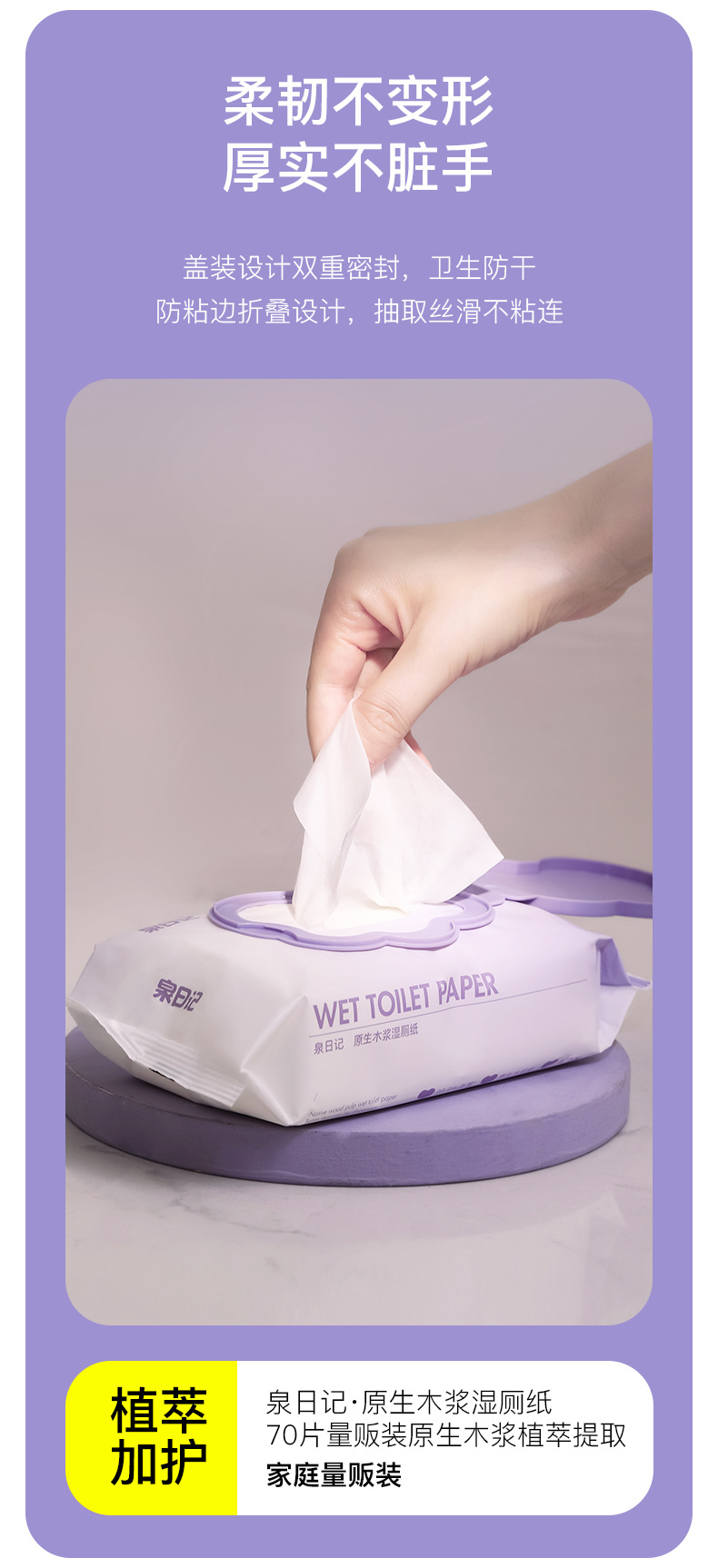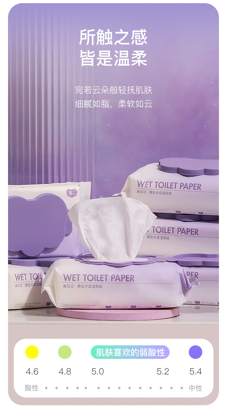 420抽超耐用!【弱酸护敏❗️母婴可用 | 加大加厚 | 可冲散污】泉日记湿厕纸家庭实惠装便携大包女性私处洁阴擦屁屁洁厕湿巾70抽。hb