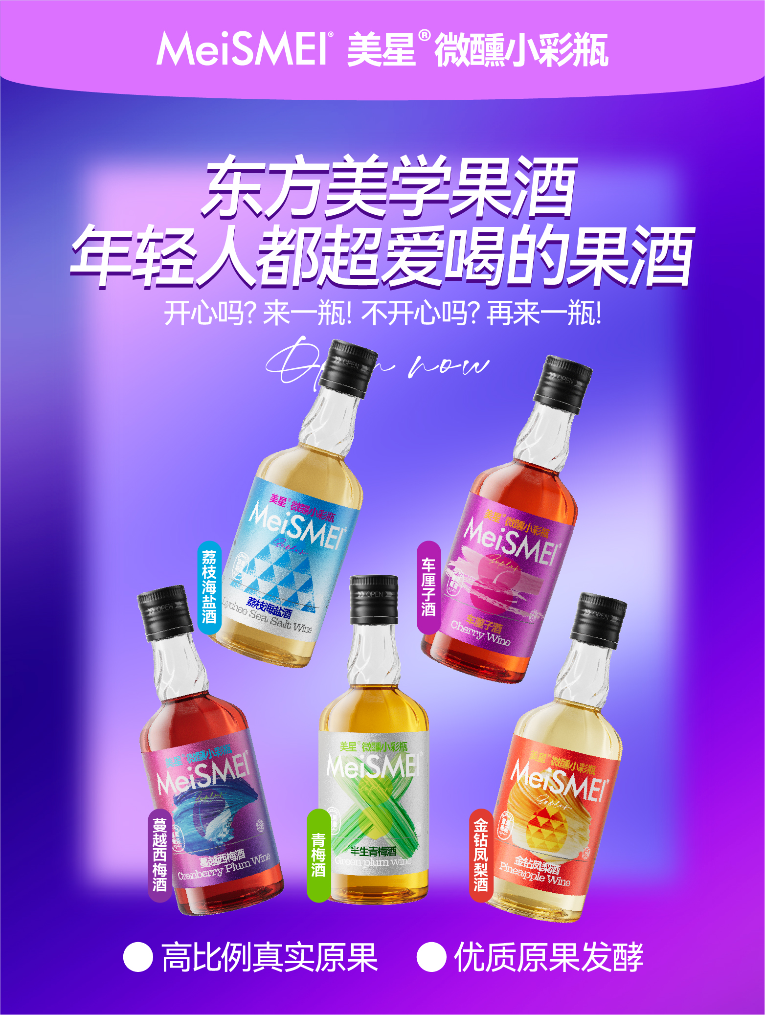 【5瓶赠杯子】多口味青梅酒 | 微醺小彩瓶8度发酵果酒 车海盐荔枝酒车厘子酒女士低度甜酒 158ml*5瓶