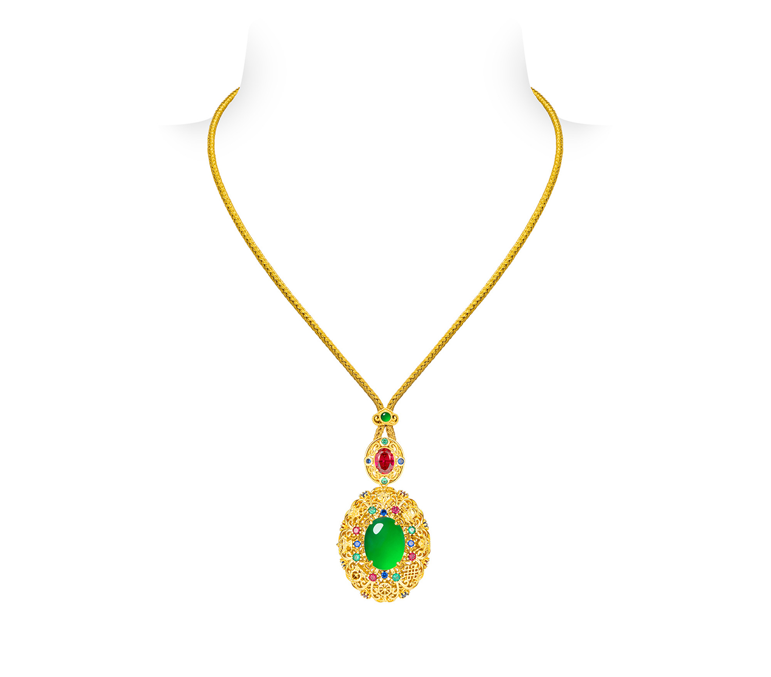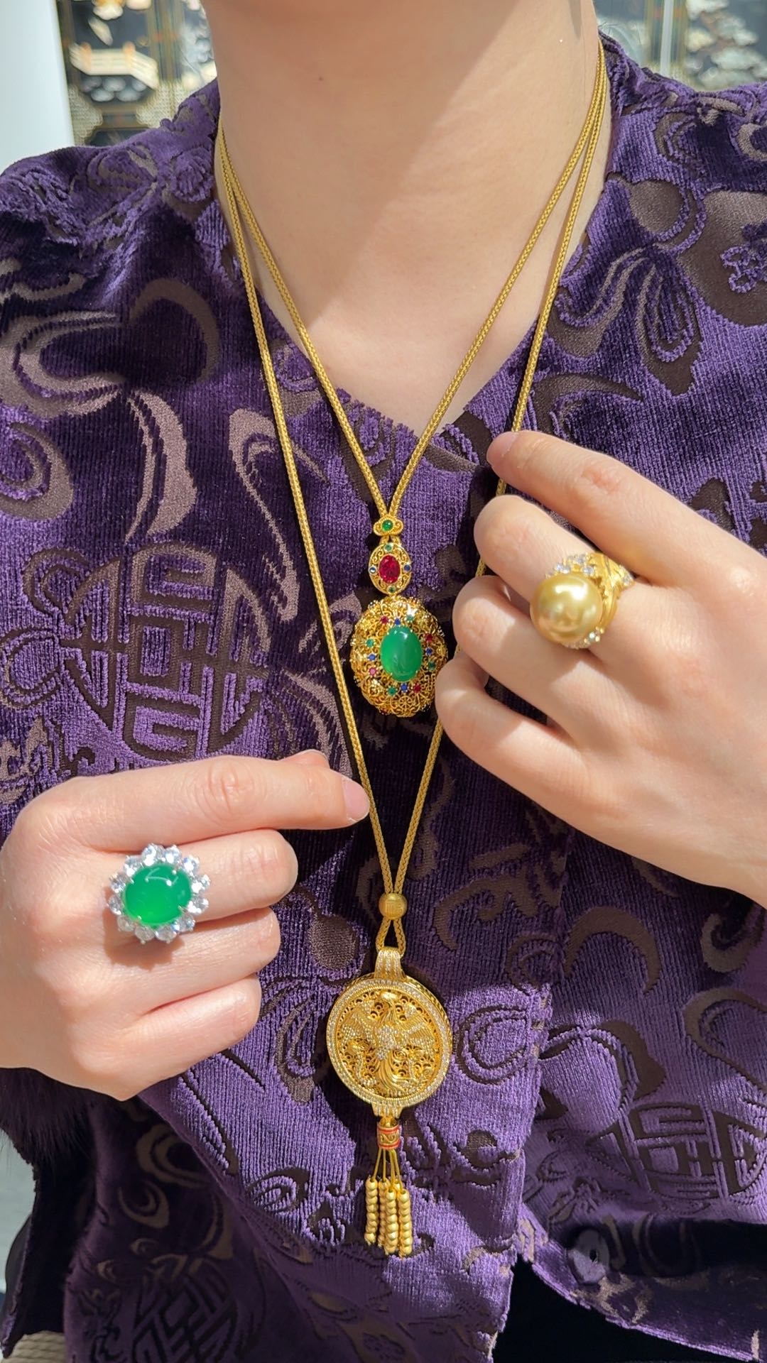 GAONAS 法式中国风贵气老钱金色项链11697DG