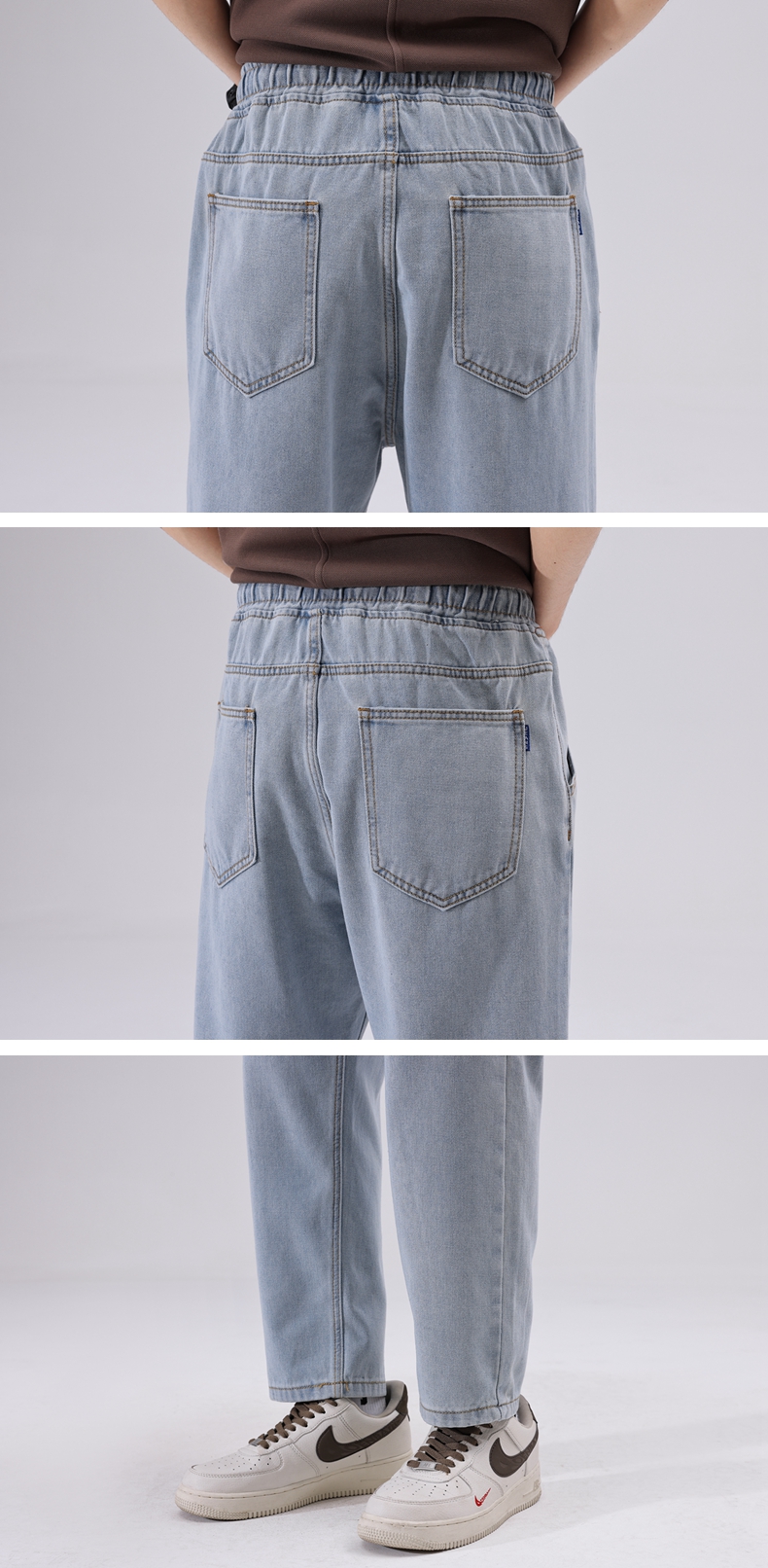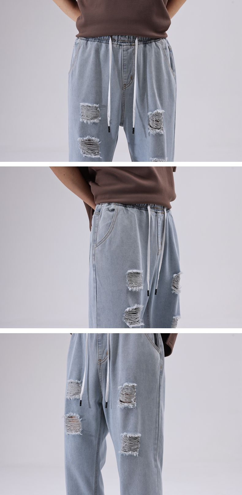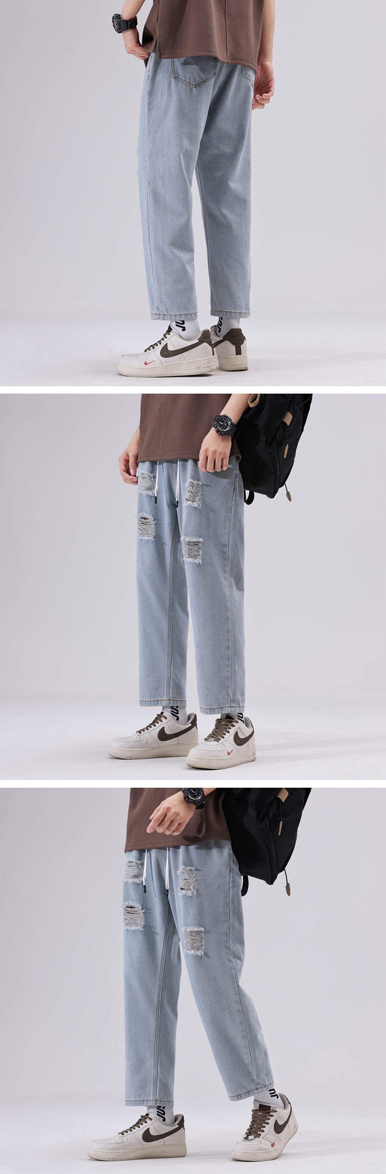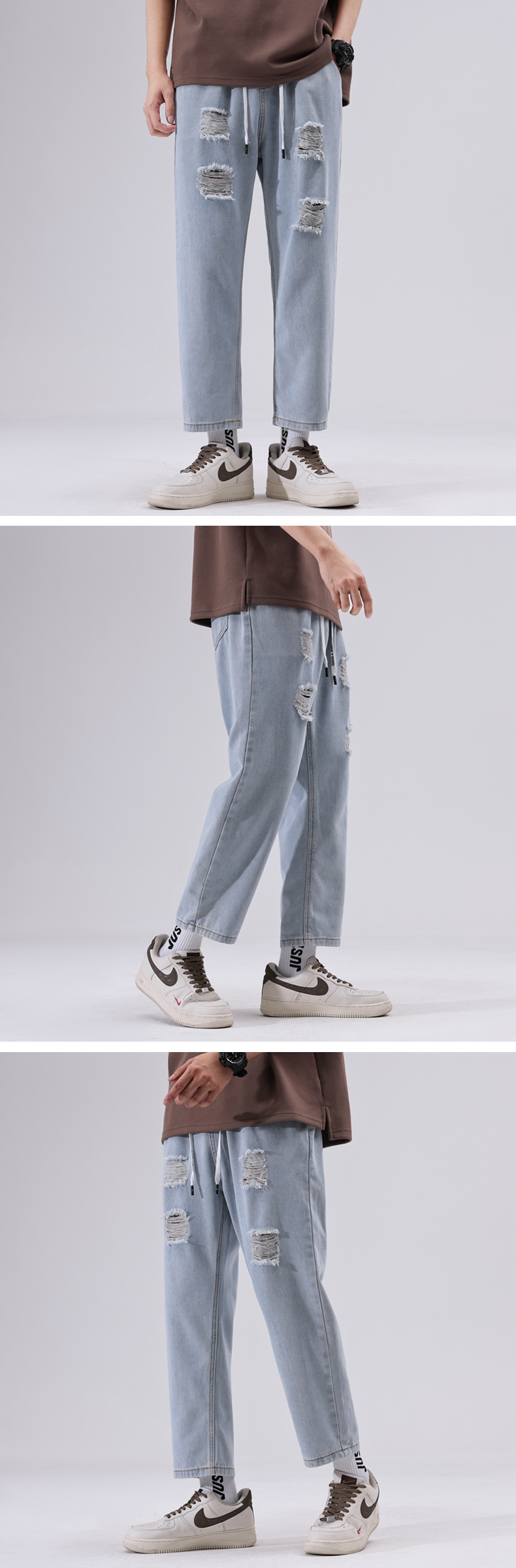 【九分裤】【新款DDJ】大依优型大码破洞牛仔裤松紧腰九分裤舒适休闲简约百搭加肥加大男装潮款