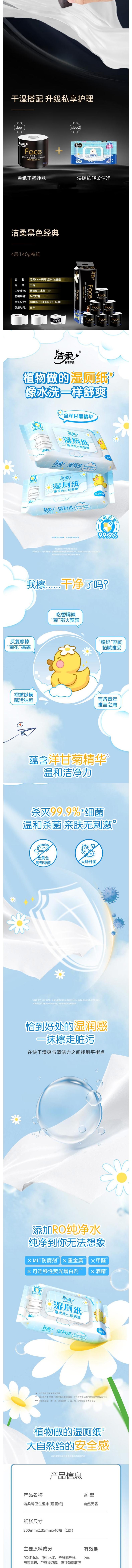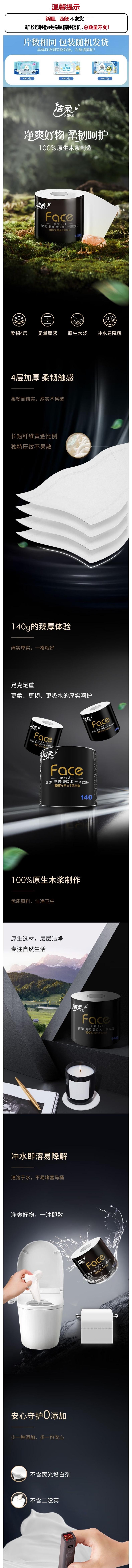 洁柔 黑Face有芯卷纸4层140克10卷+湿厕纸40片*2包 JR80630