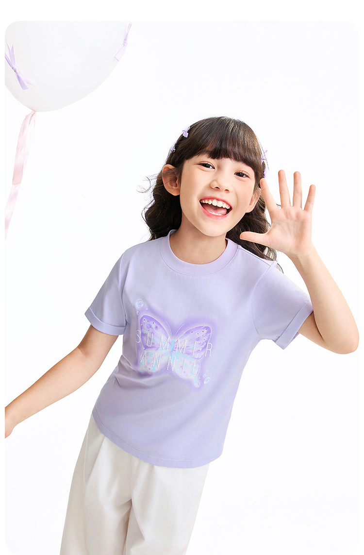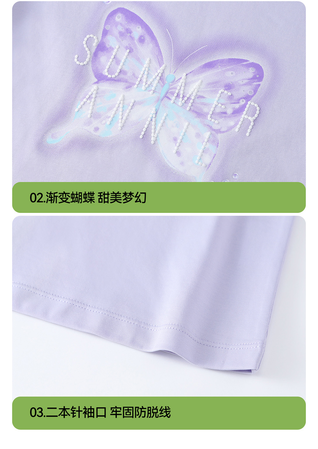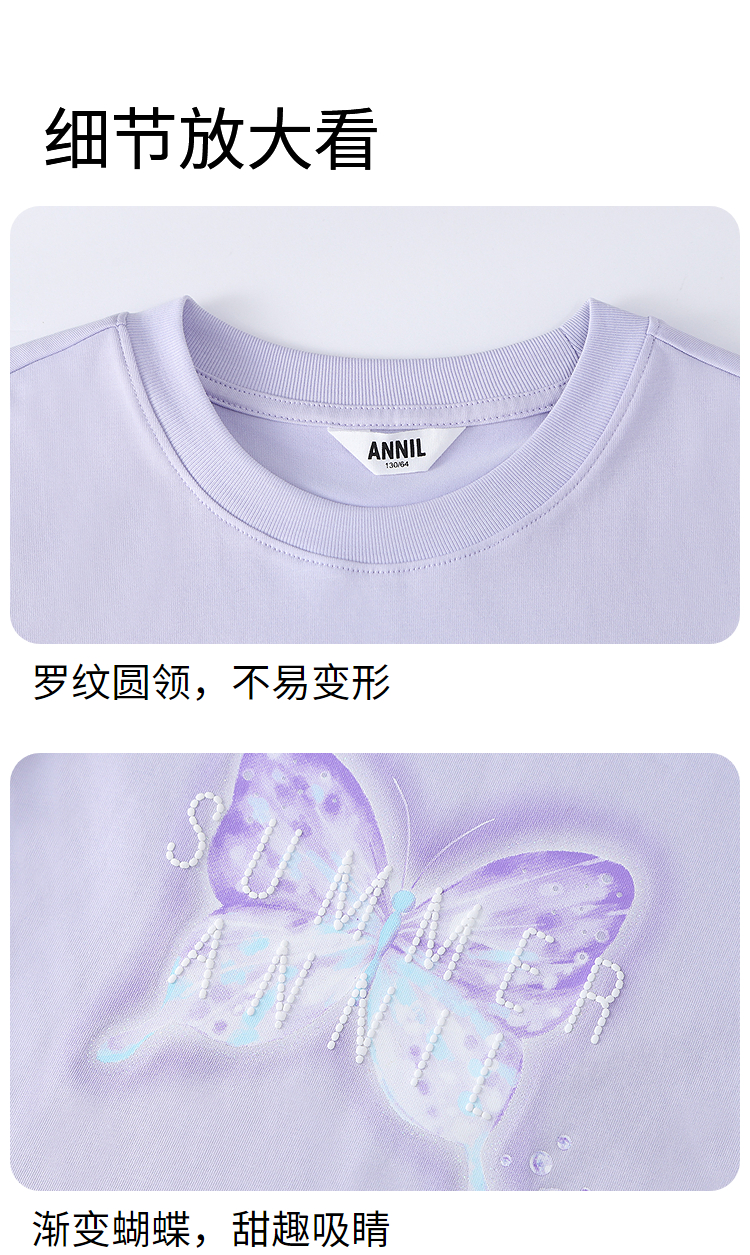 女童圆领短袖针织衫夏季新款安奈儿童装EG621618