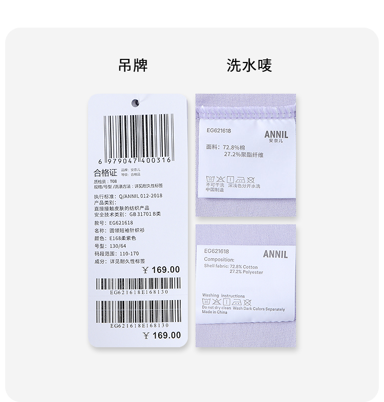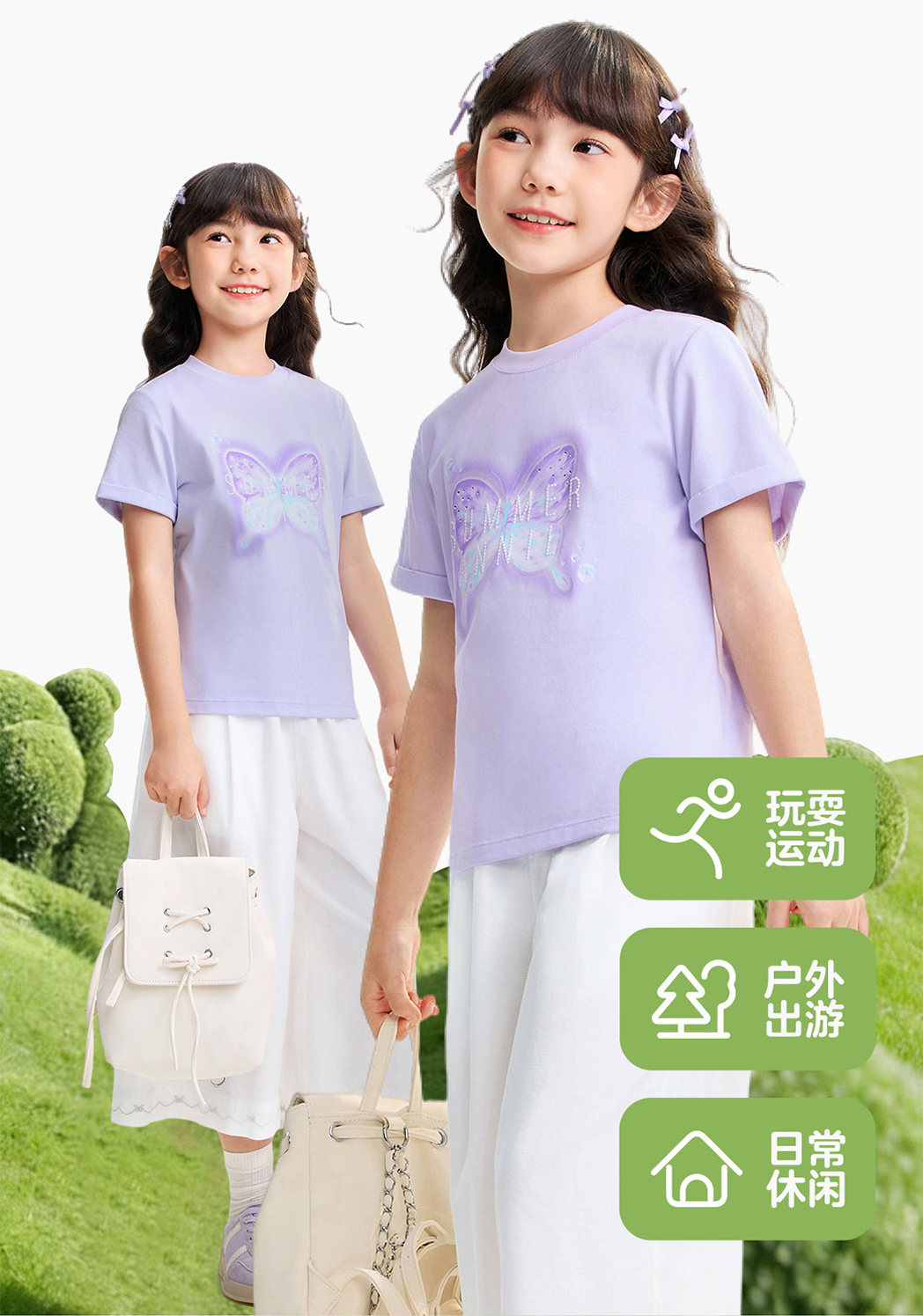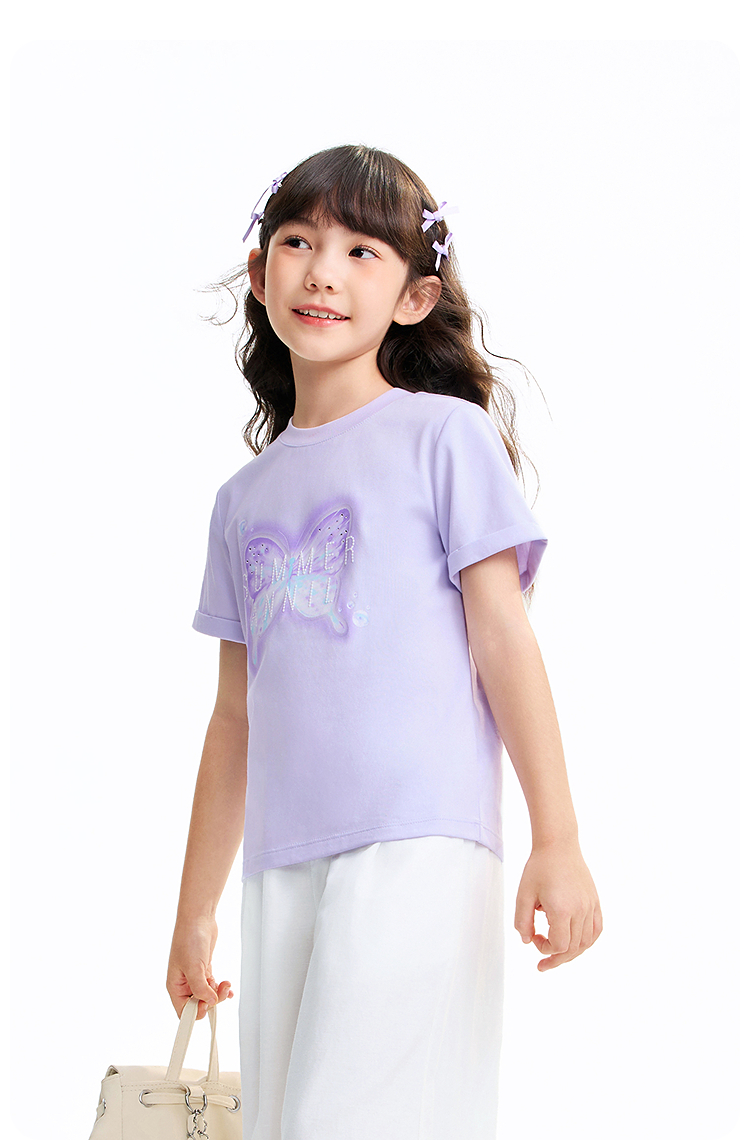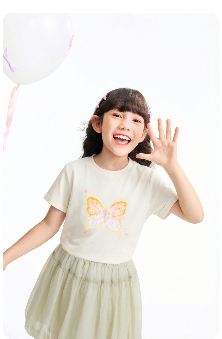 女童圆领短袖针织衫夏季新款安奈儿童装EG621618