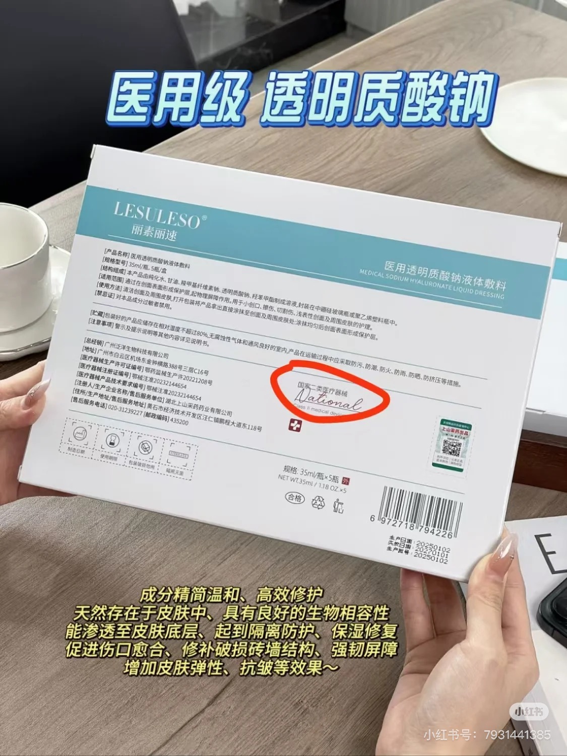 丽素丽速医用透明质酸钠液体敷料皮肤科明星、院线修复天花板!二类医疗器械号、医用无菌 美丽项目后,皮肤差? 医疗整形后,皮肤受损创面 ?刷酸、猛药后,皮肤不耐受? 试管面膜敷料!创面急救修复的神!丽素丽速医用透明质酸钠液体敷料