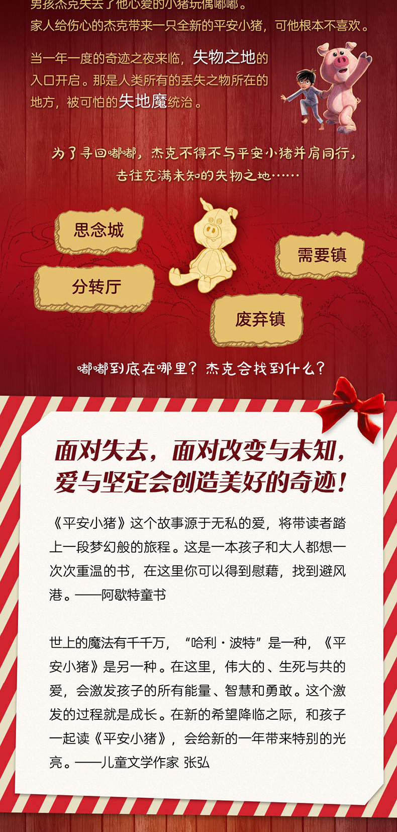 ◆许多伟大的儿童小说都以极富想象力的方式赋予玩具以生命,传递永恒的童真……就像罗琳曾在“哈利·波特”中所做的那样,这次她又将一种传统模式推向了新的高度……《平安小猪》是罗琳自“哈利·波特”第三部《阿兹卡班囚徒》以来ZUI好的作品。——英国《旗帜晚报》