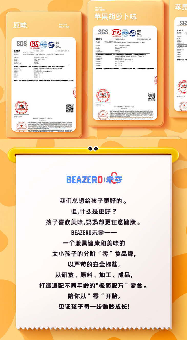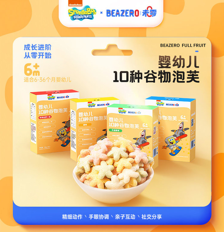 【一般贸易】未零beazero海绵宝宝Beakid泡芙小星42g10种谷物超多美味营养 苹果胡萝卜味/紫薯蓝莓味