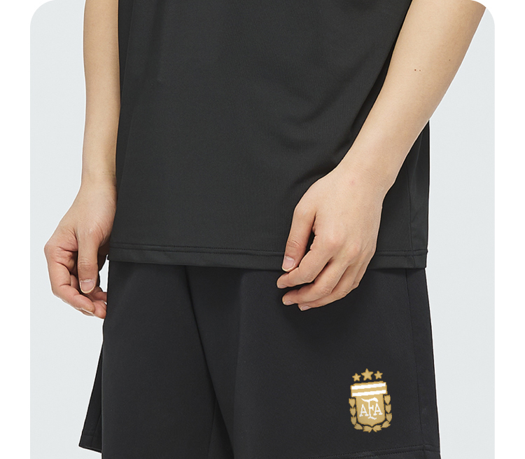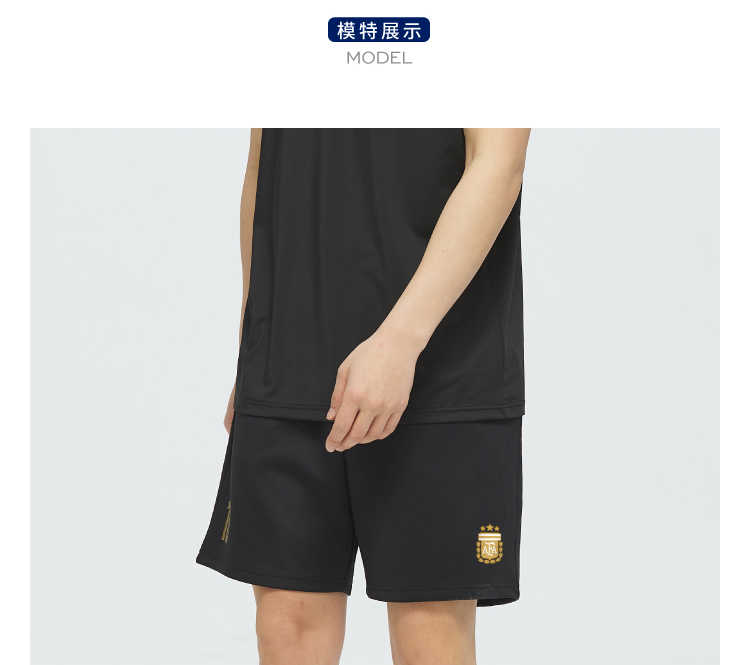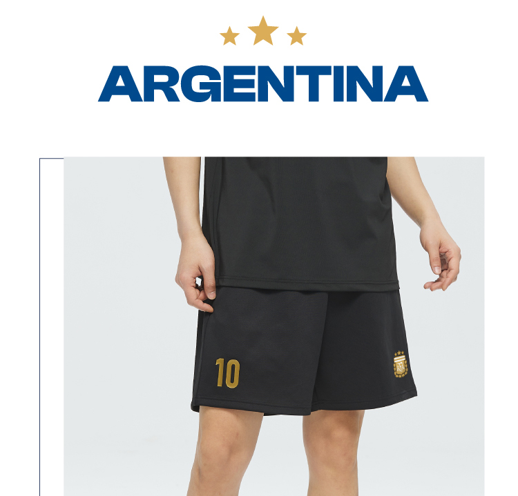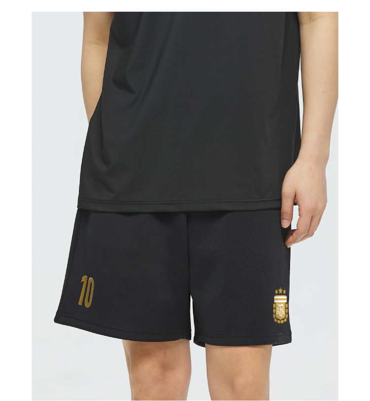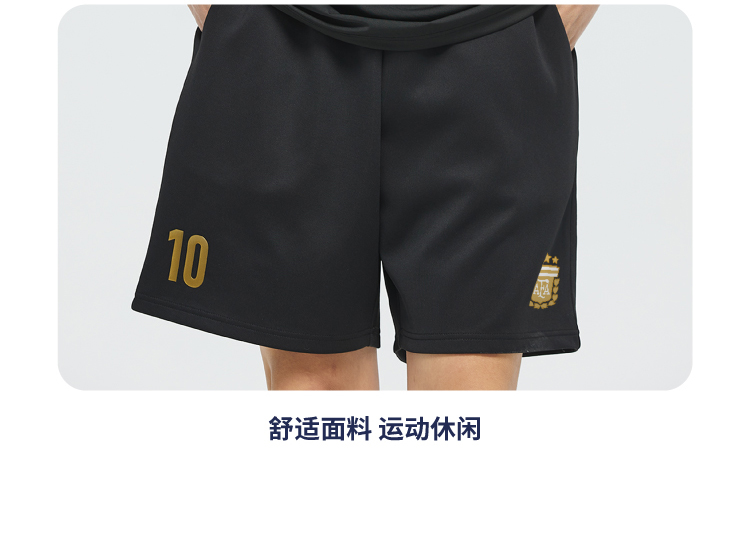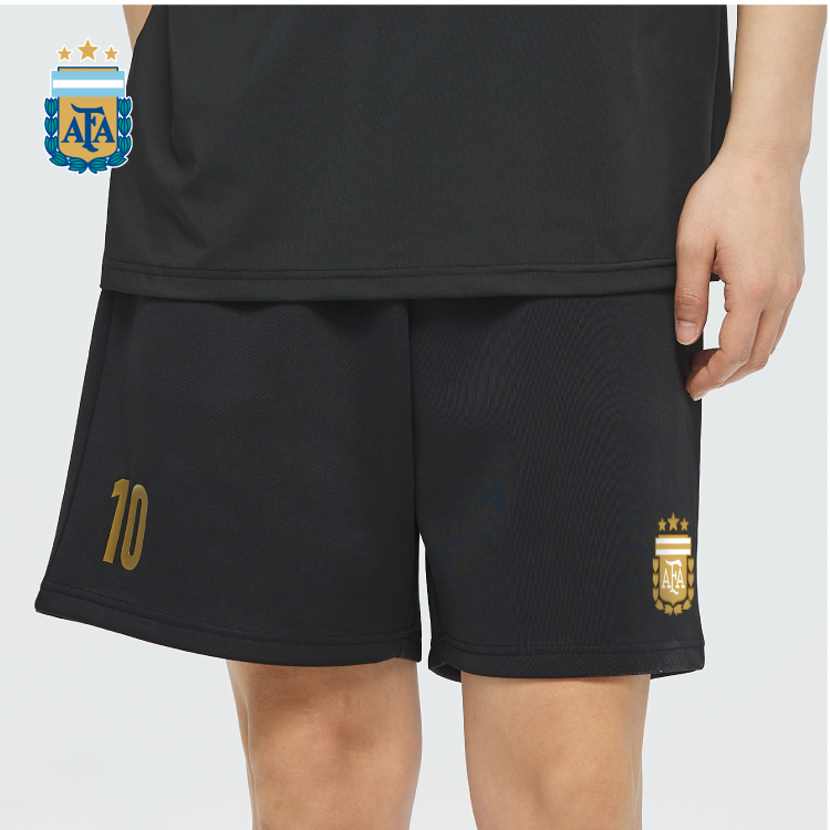 【官方正版】阿根廷国家队 | 夏季黑色休闲运动抽绳短裤足球球迷三星队徽金色数字印花百搭宽松梅西
