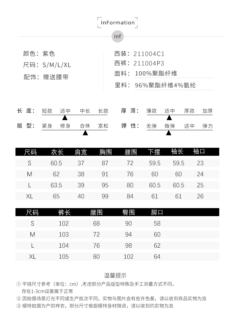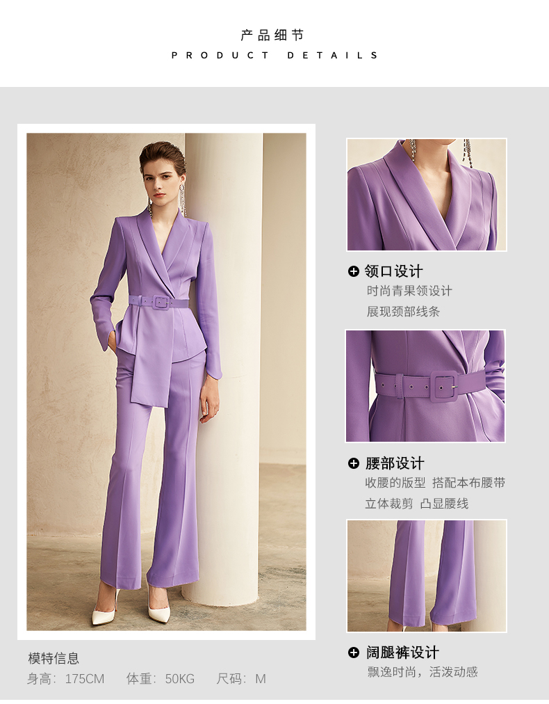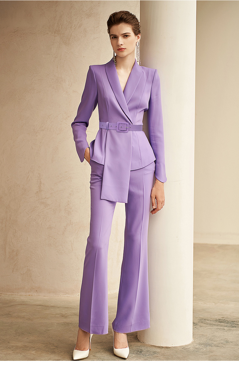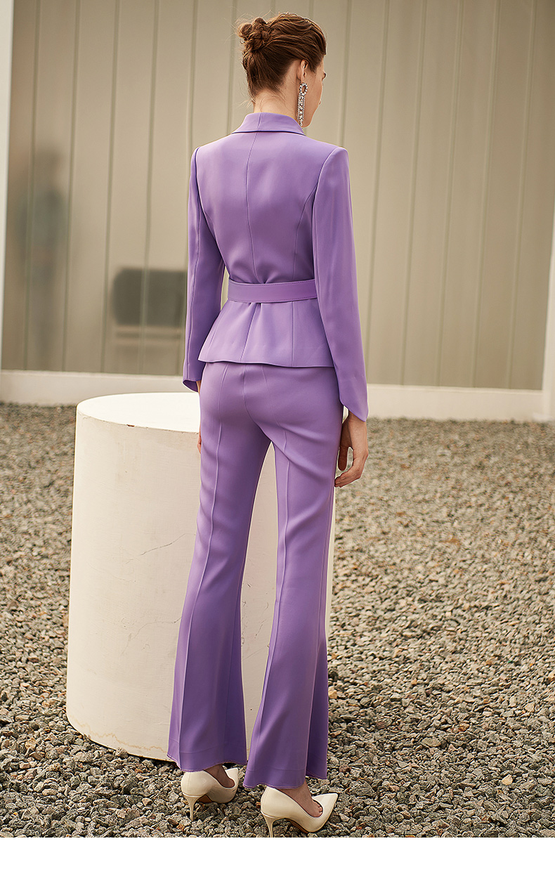 IWY/时尚紫色西服女微喇裤套装气质高端收腰绑带西装211004C1+P3