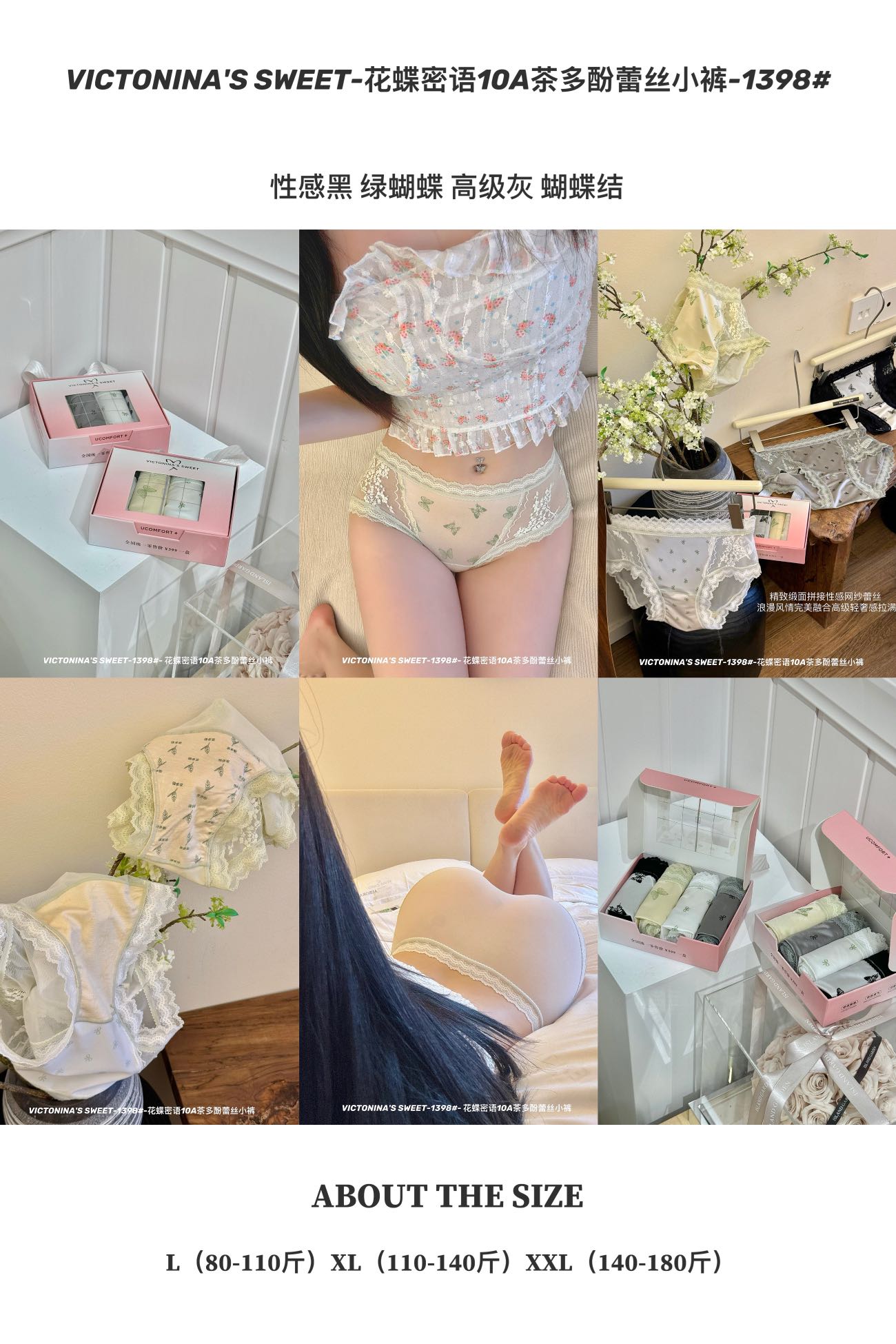 【高弹抑菌】花蝶密语10A茶多酚蕾丝小裤4条装1398