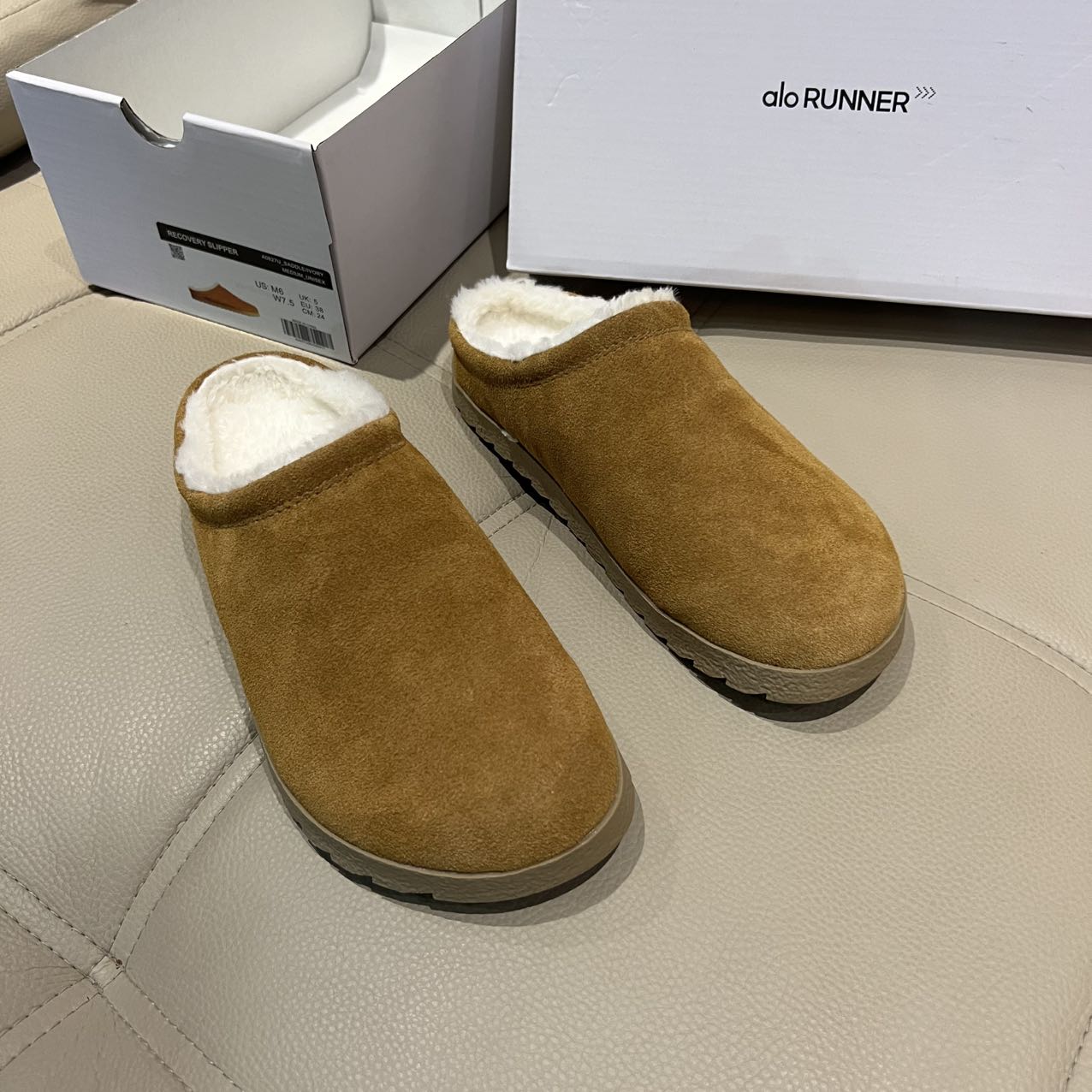Alo Yoga Recovery Slipper 舒适简约保暖防滑耐磨包头拖鞋 男女同款棉半拖 棕色