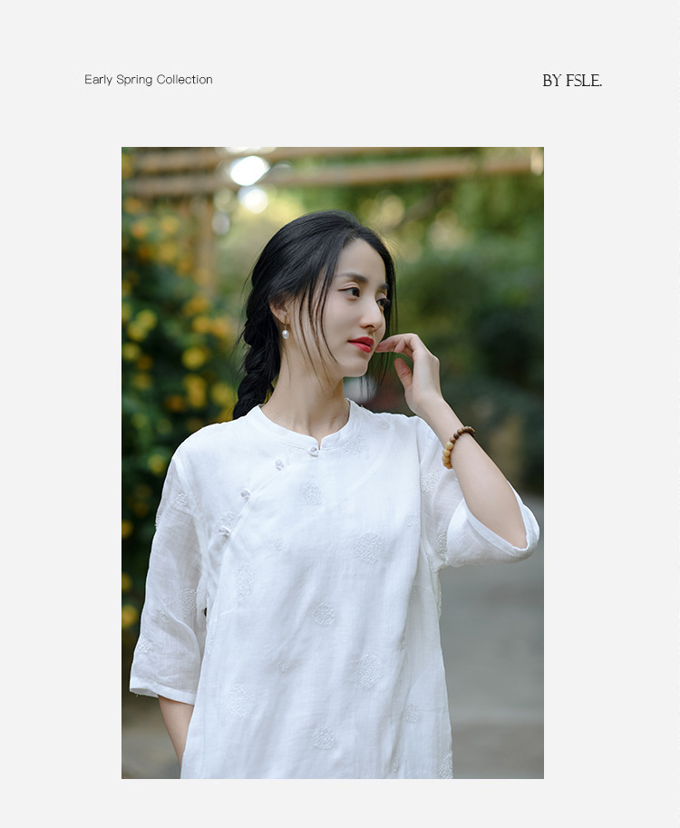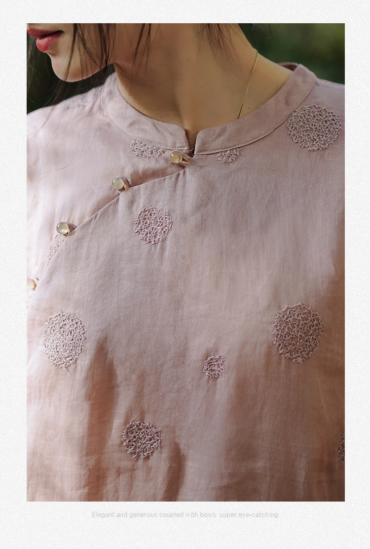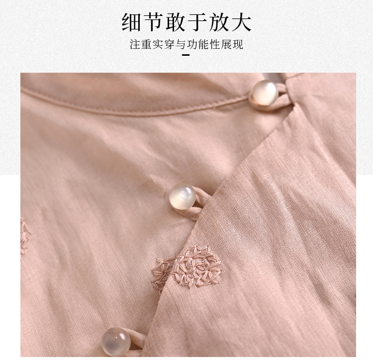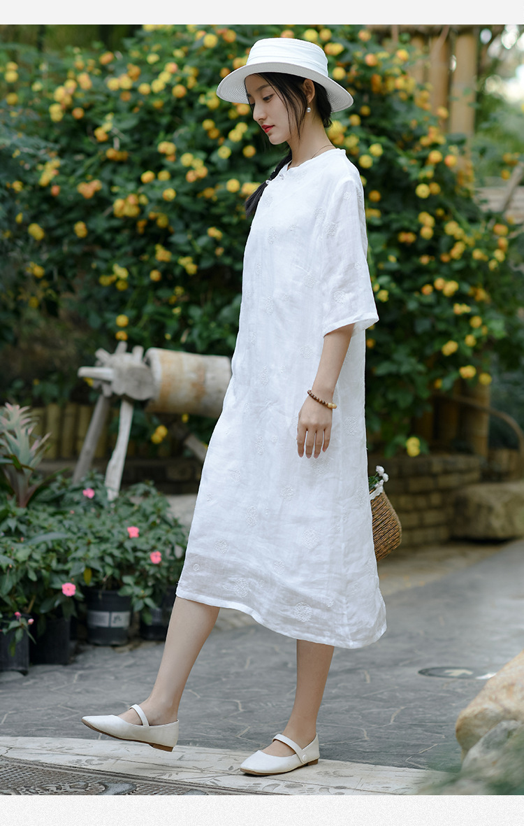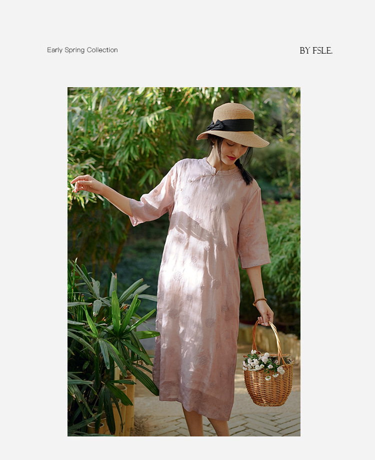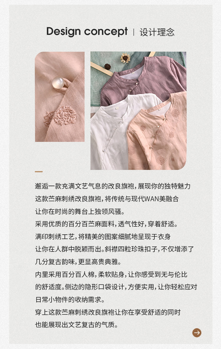 新中式改良旗袍连衣裙,中国风苎麻复古刺绣茶服QM-6231
