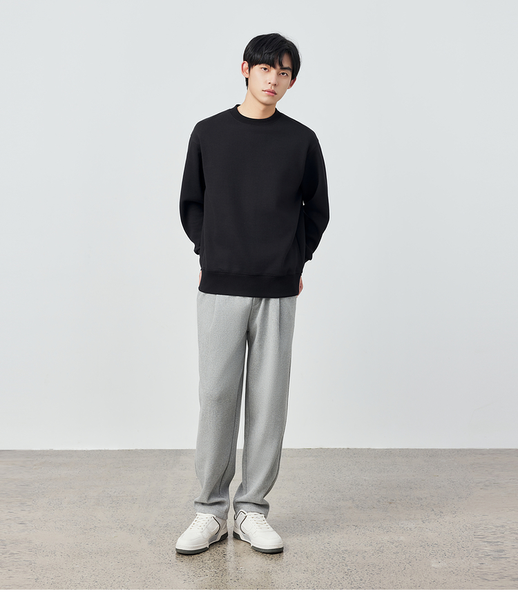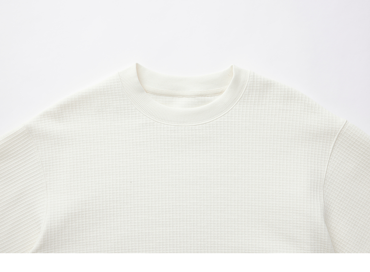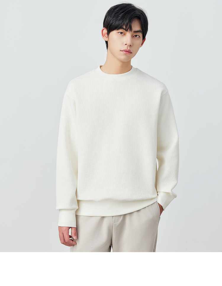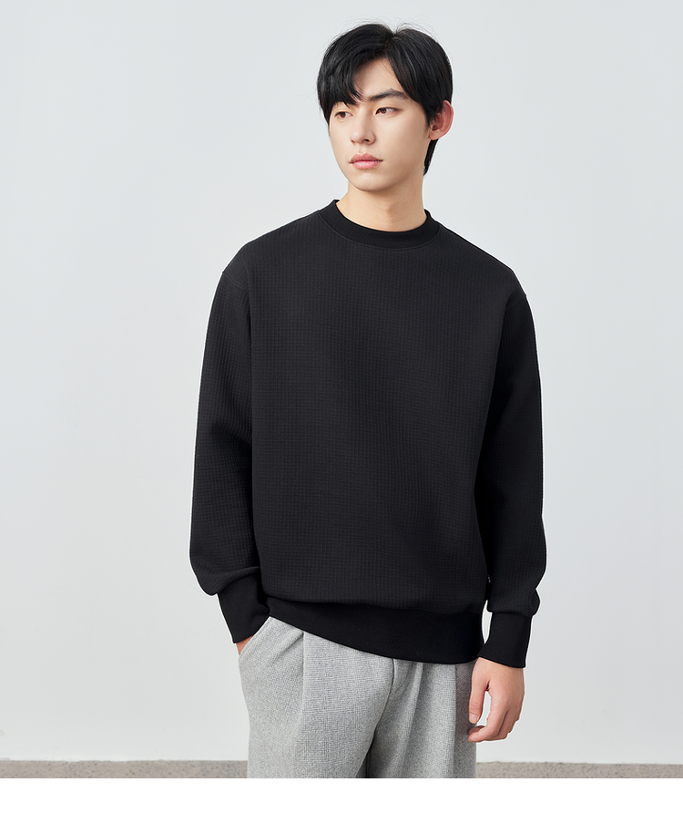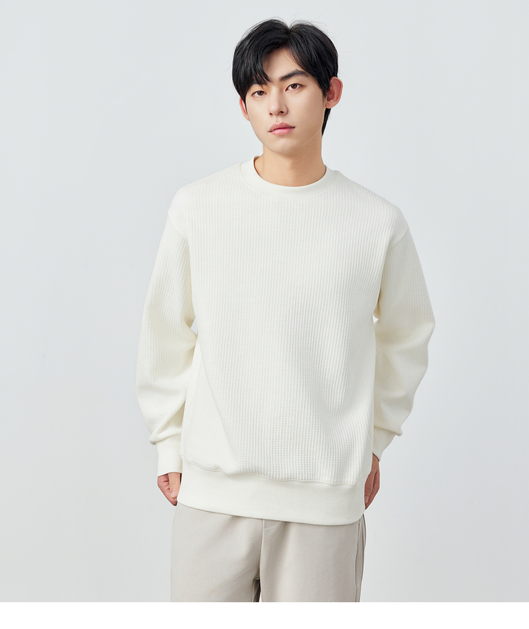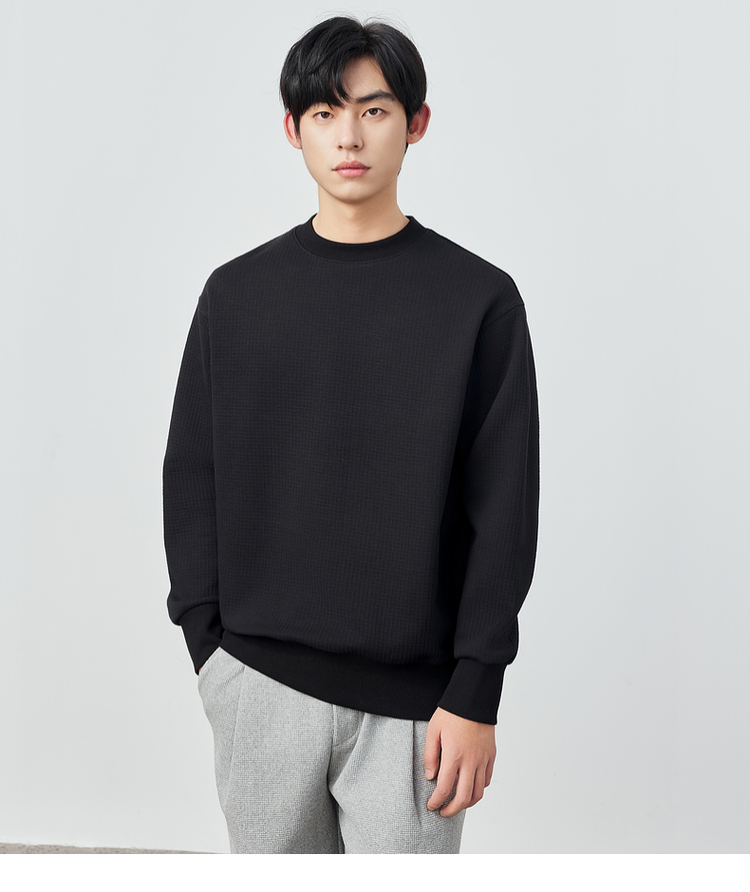 墨麦客男装重磅华夫格休闲圆领卫衣春季新款纯色宽松上衣男55496