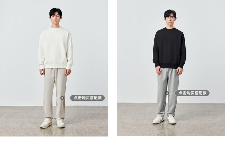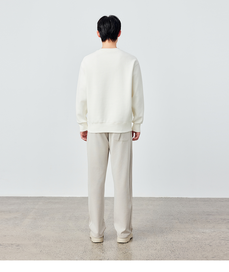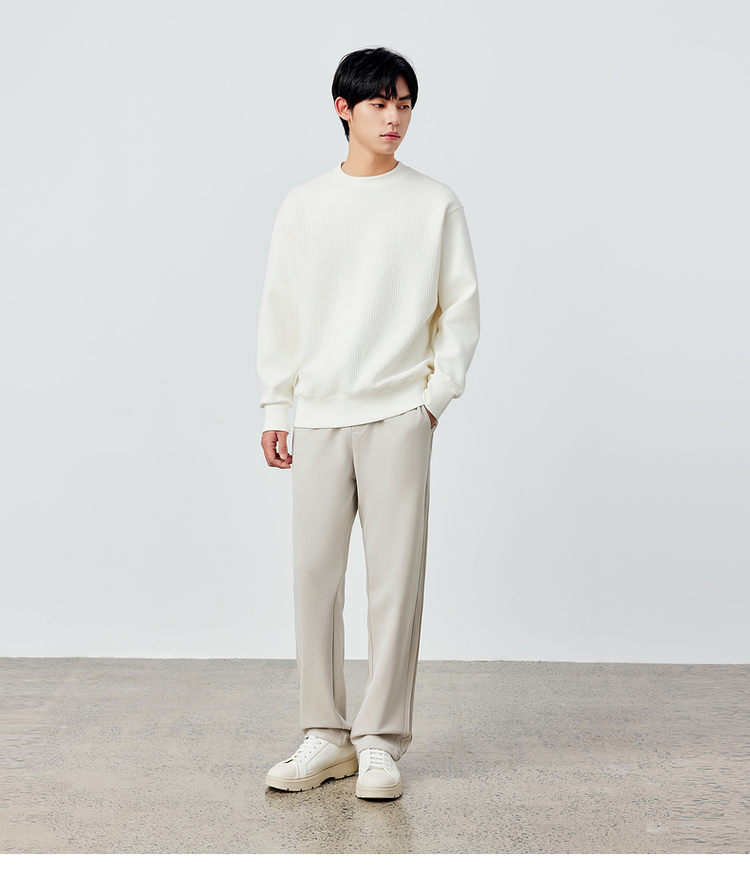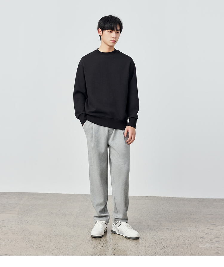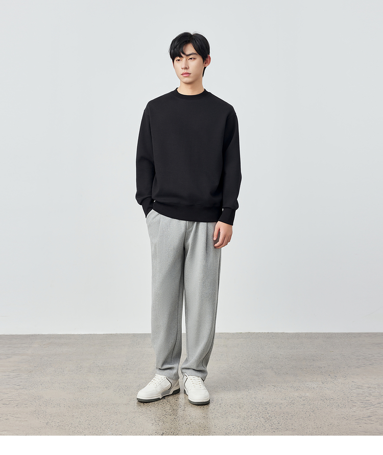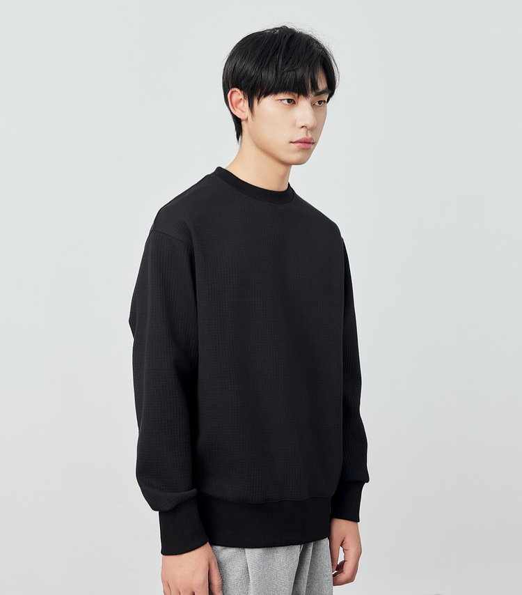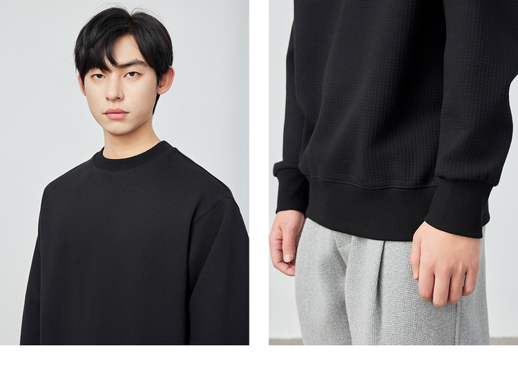 墨麦客男装重磅华夫格休闲圆领卫衣春季新款纯色宽松上衣男55496