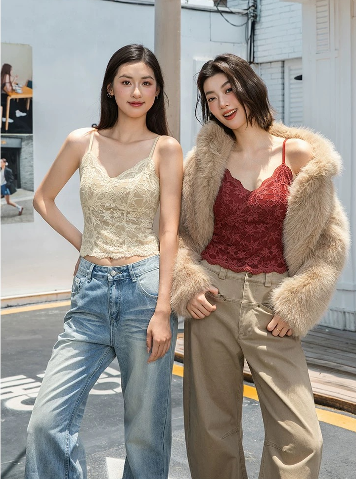 软蕾丝 + 修身版型,轻盈不臃肿 🙂↔不管内搭还是外穿都好看 “氛围感作弊器” 非它莫属!🏻
