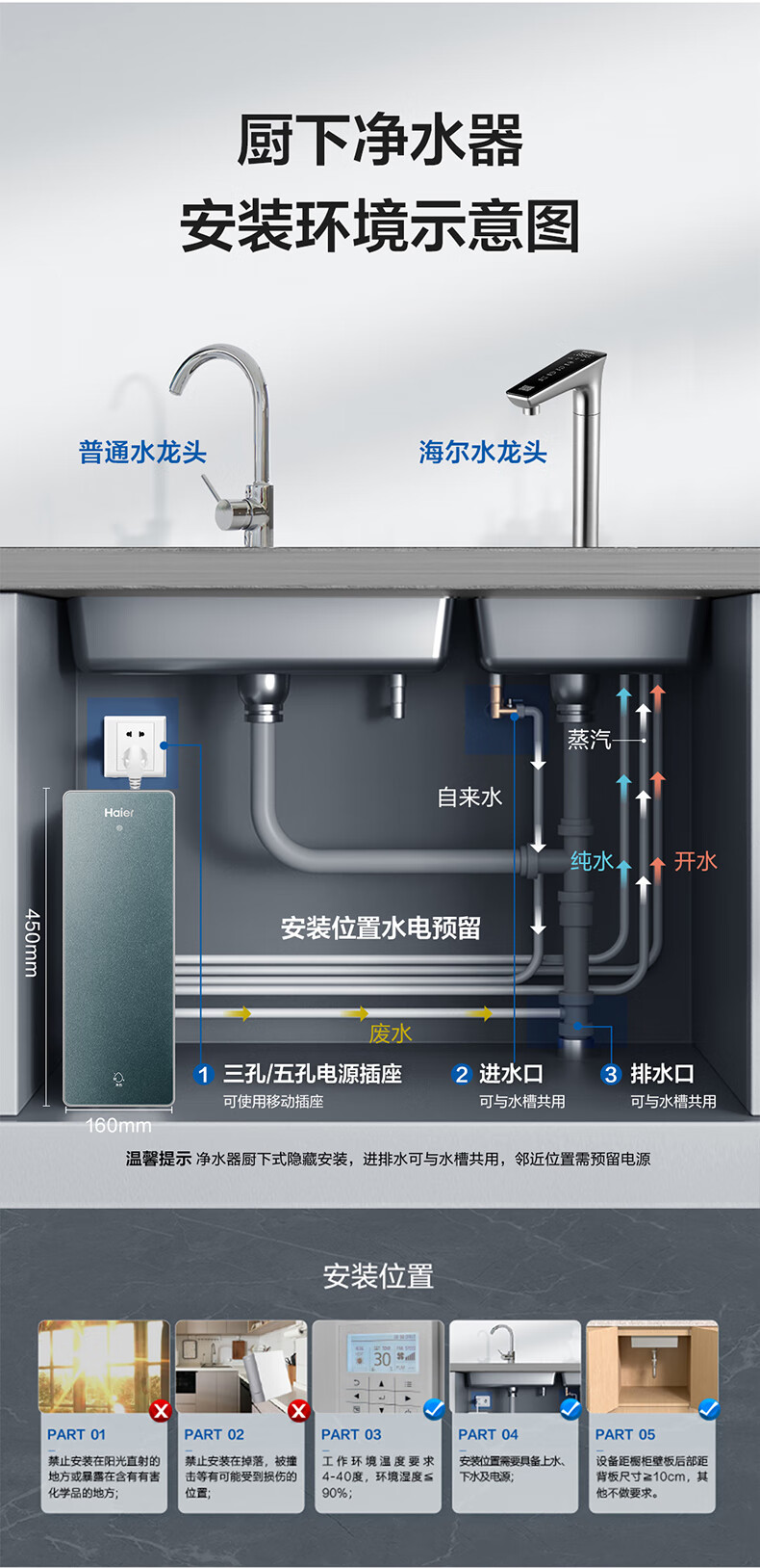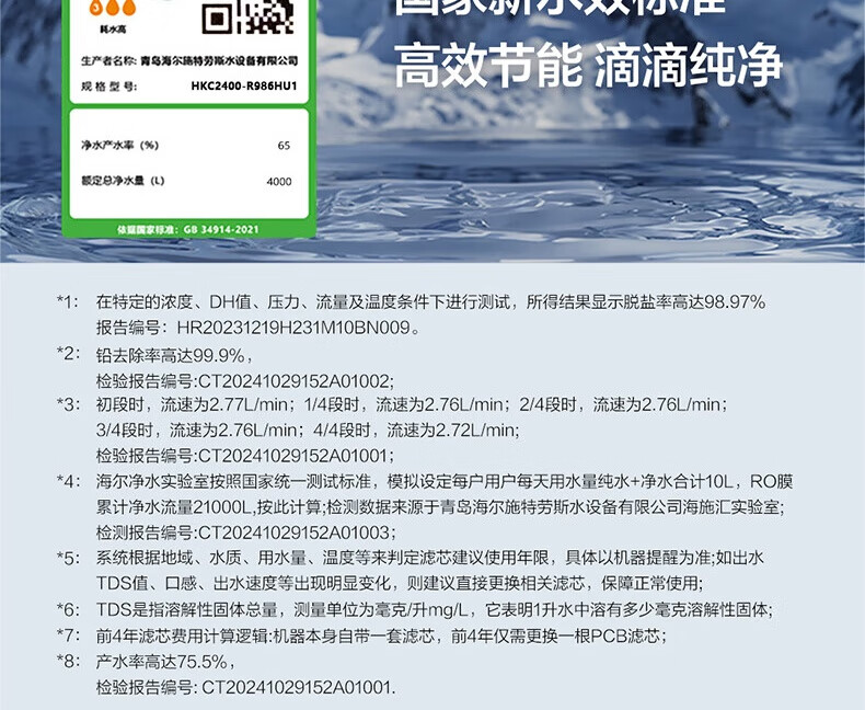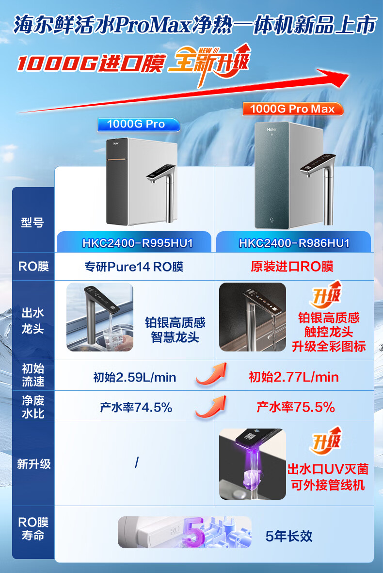 海尔(Haier)1000G进口膜加热直饮一体机【鲜活水】家用即热零冷水净水器RO净饮机 HKC2400-R986HU1