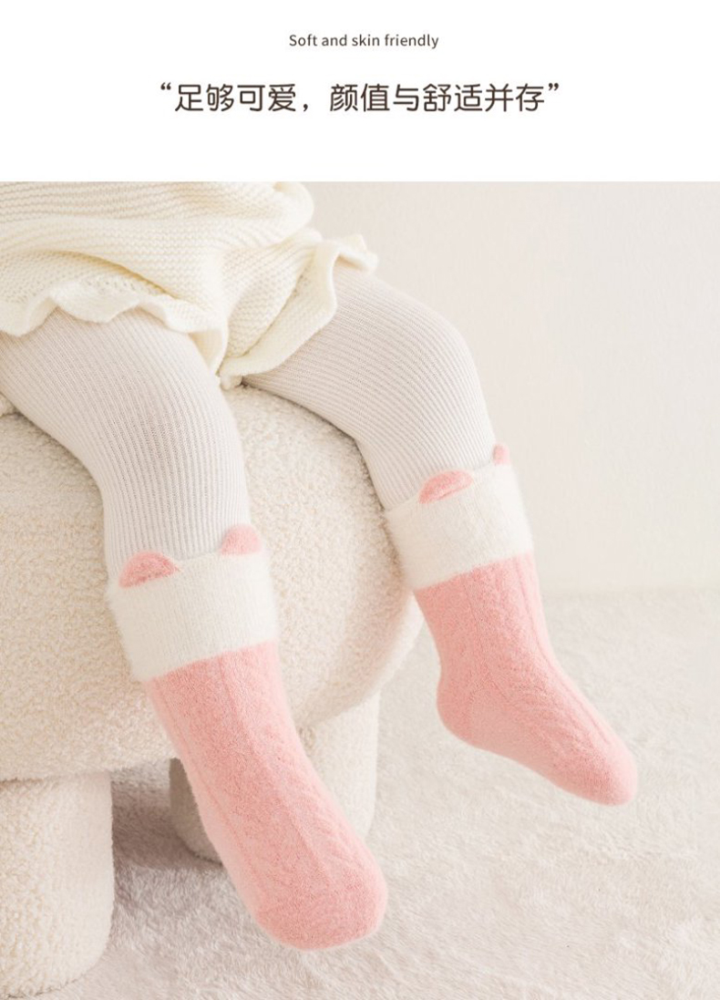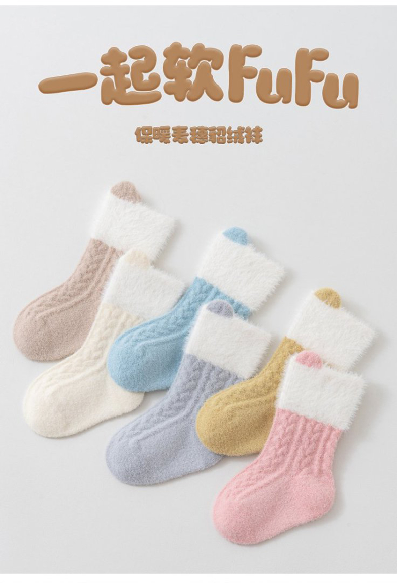 KUB可优比儿童袜子秋冬加厚珊瑚绒袜子