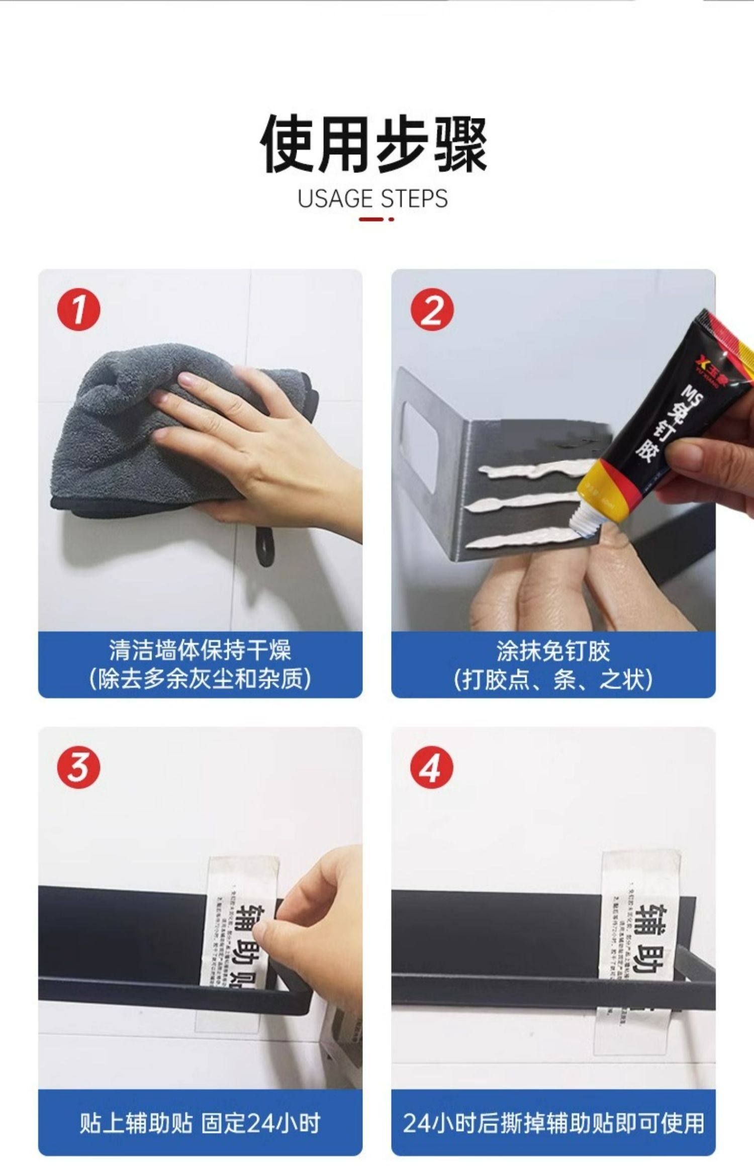 置物架塑料防水万能胶强力胶卫生间水免打孔墙面玻璃胶金属免钉胶