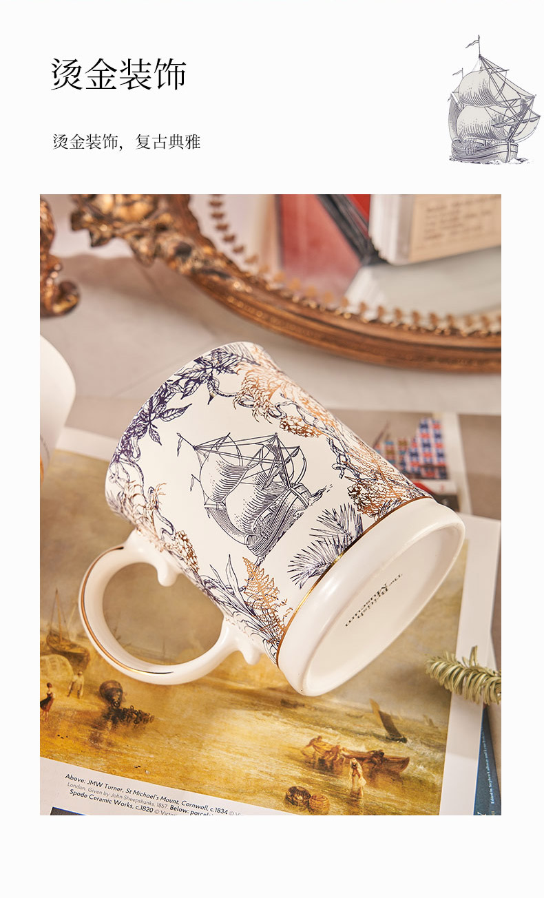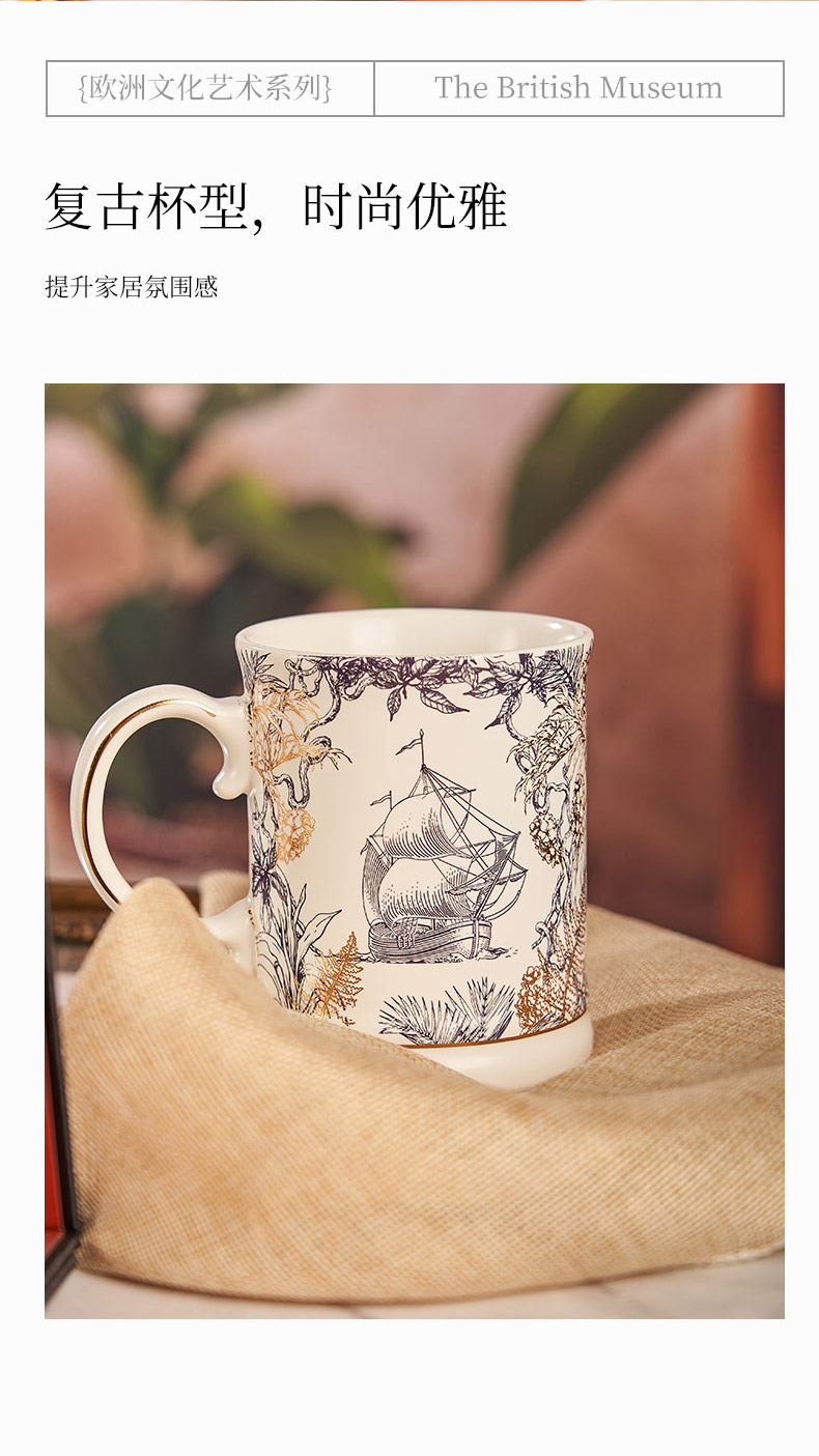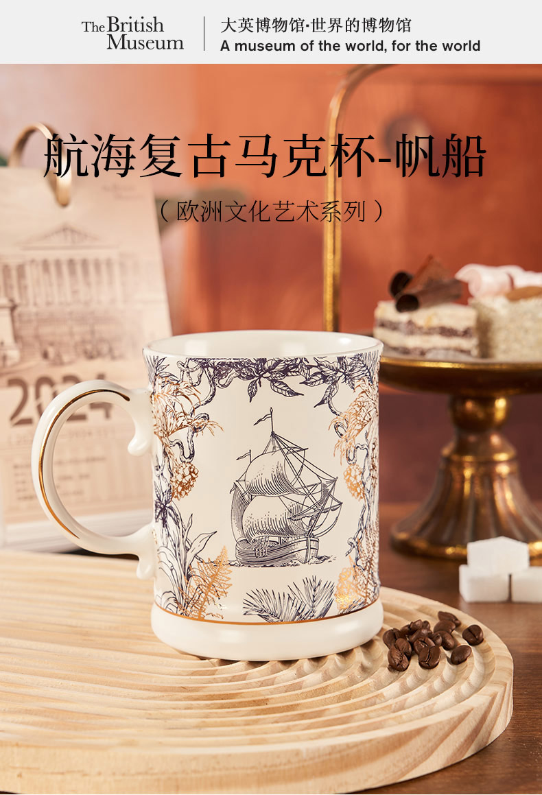 大英博物馆 欧洲文化艺术系列 航海帆船 复古 陶瓷马克杯 450ml 送朋友礼物 节庆送礼 生日礼物