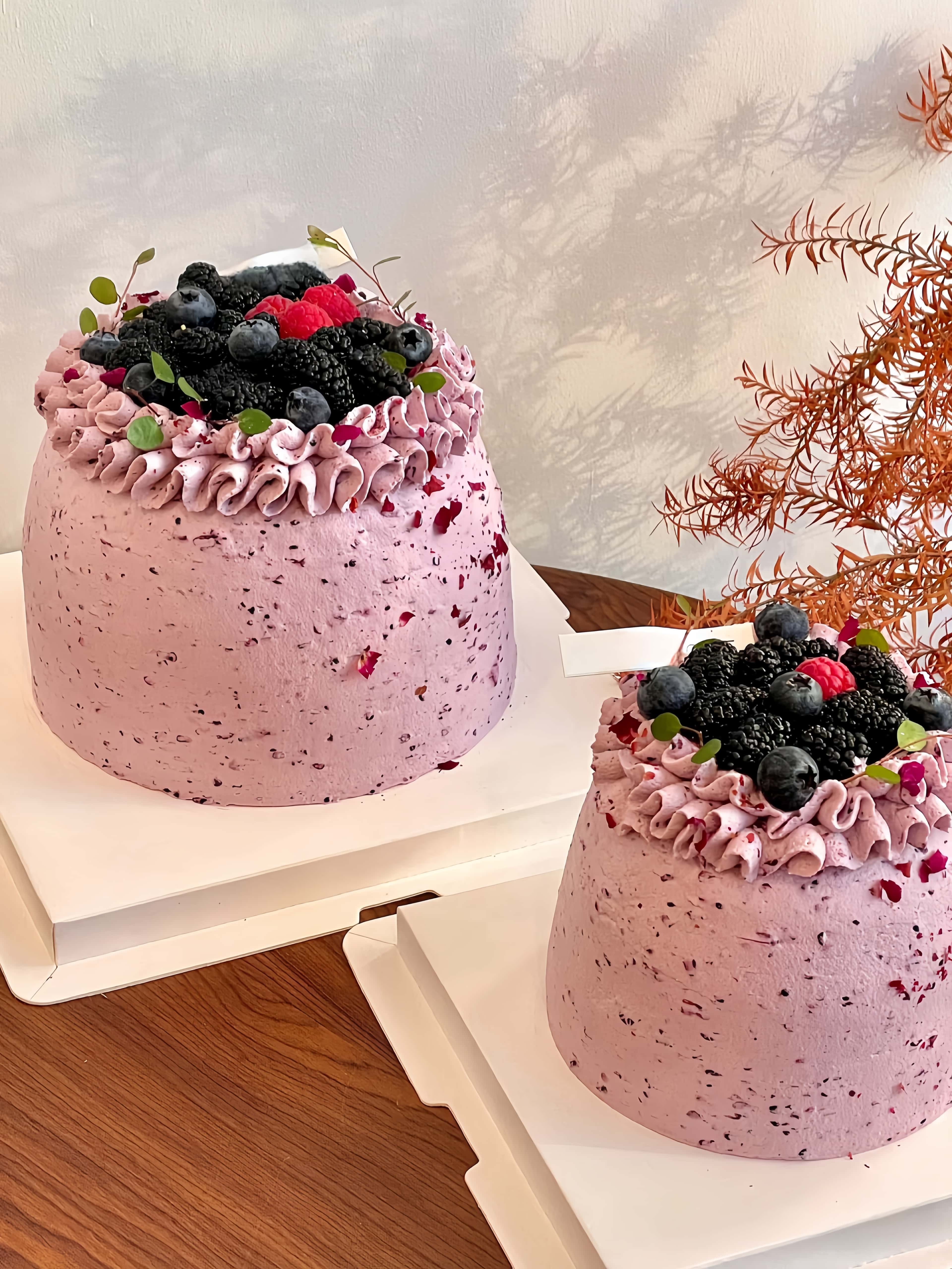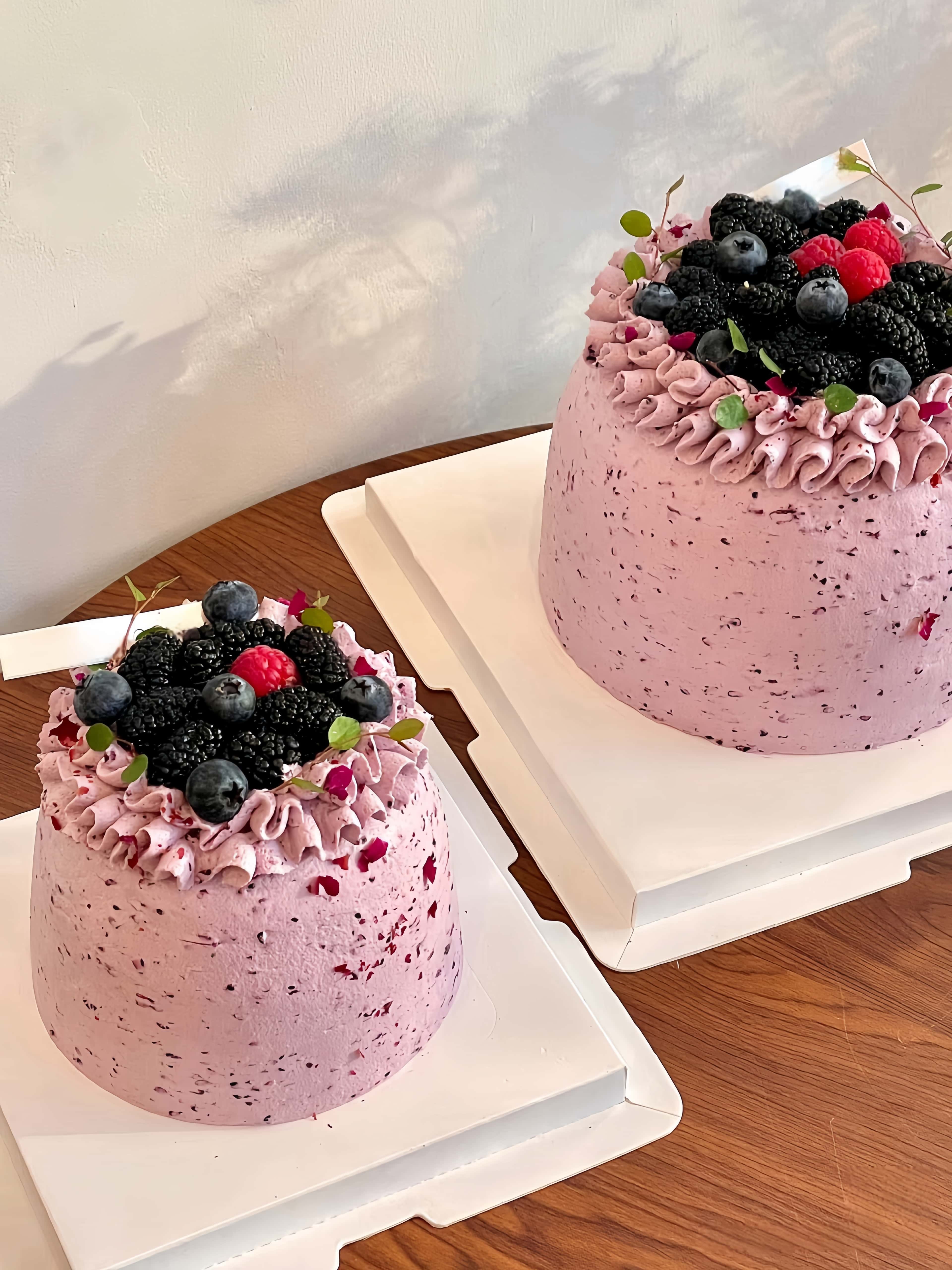 「食材」100%法国/新西兰动物奶油,轻乳酪戚风蛋糕,自制桑葚果蓉,新鲜桑葚,当季草莓。