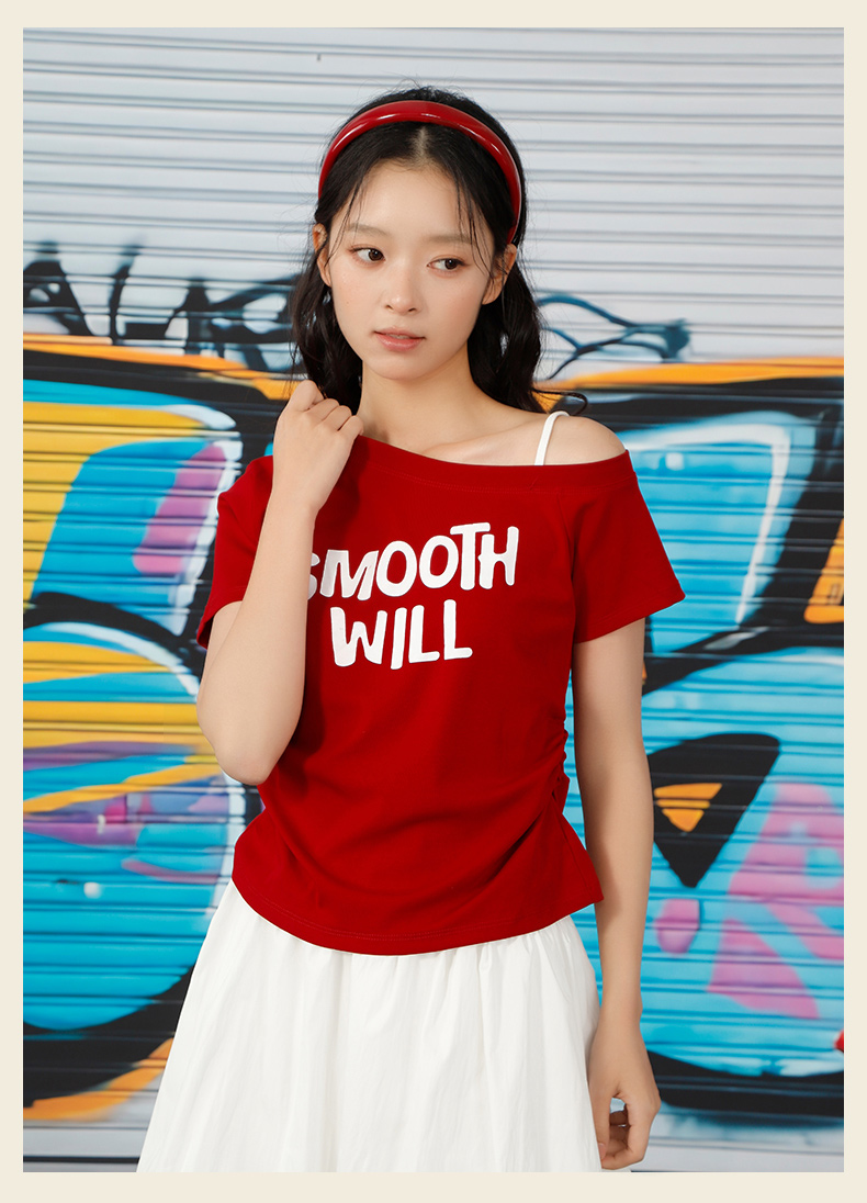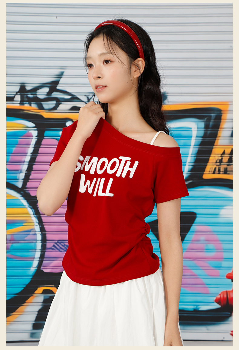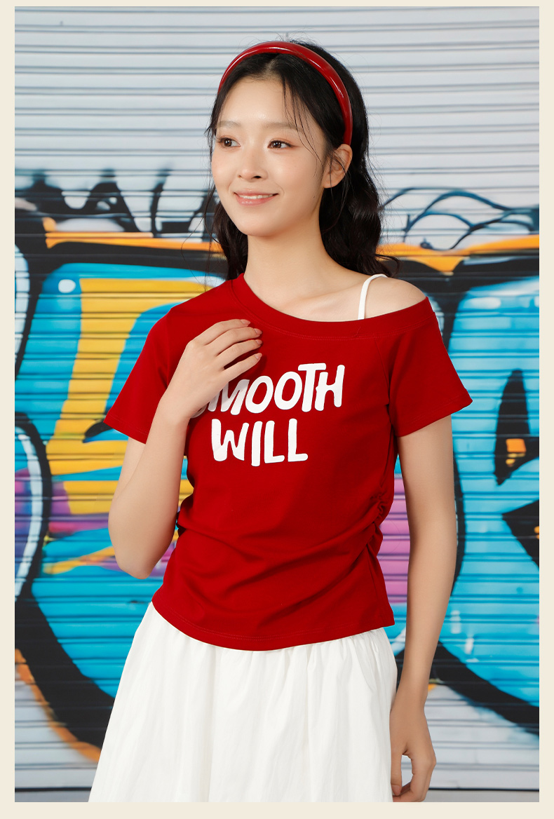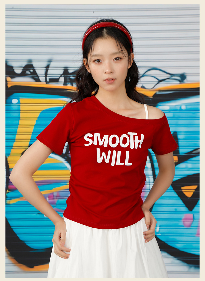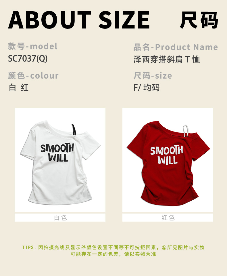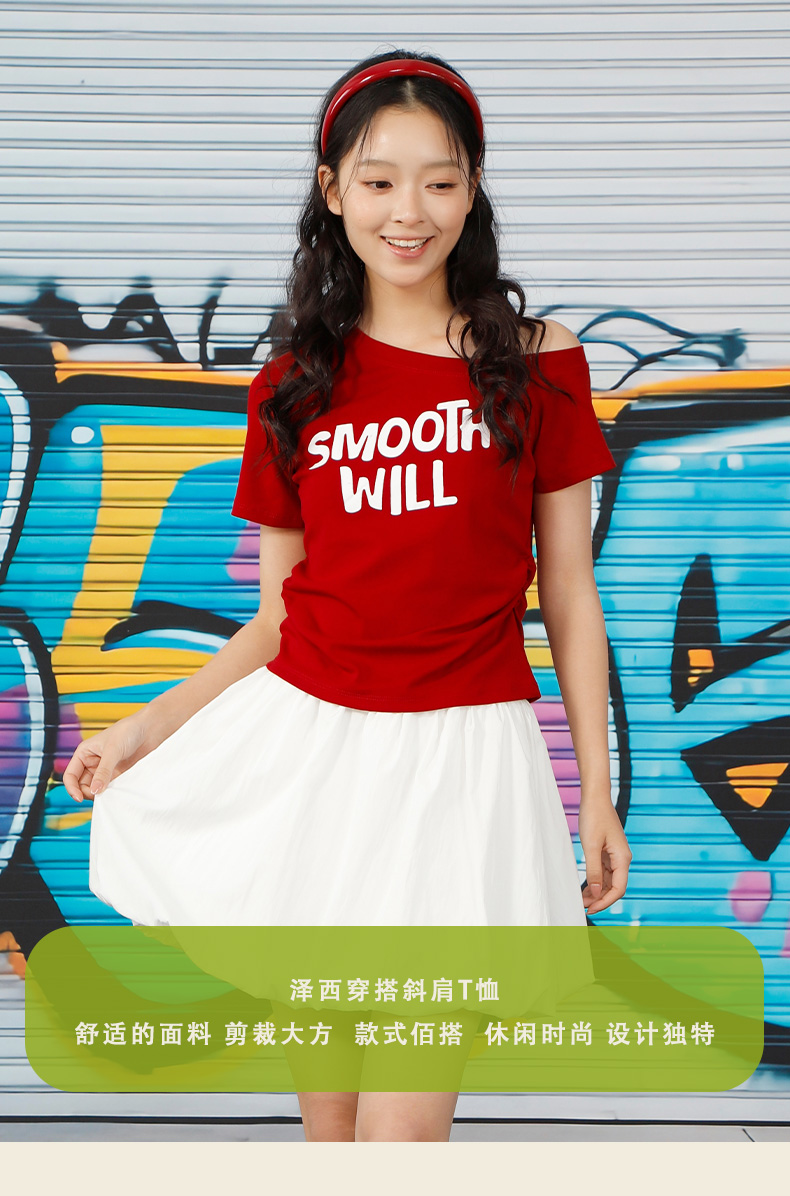 泽西穿搭斜肩上衣T恤女纪念日百货门店同款163894053