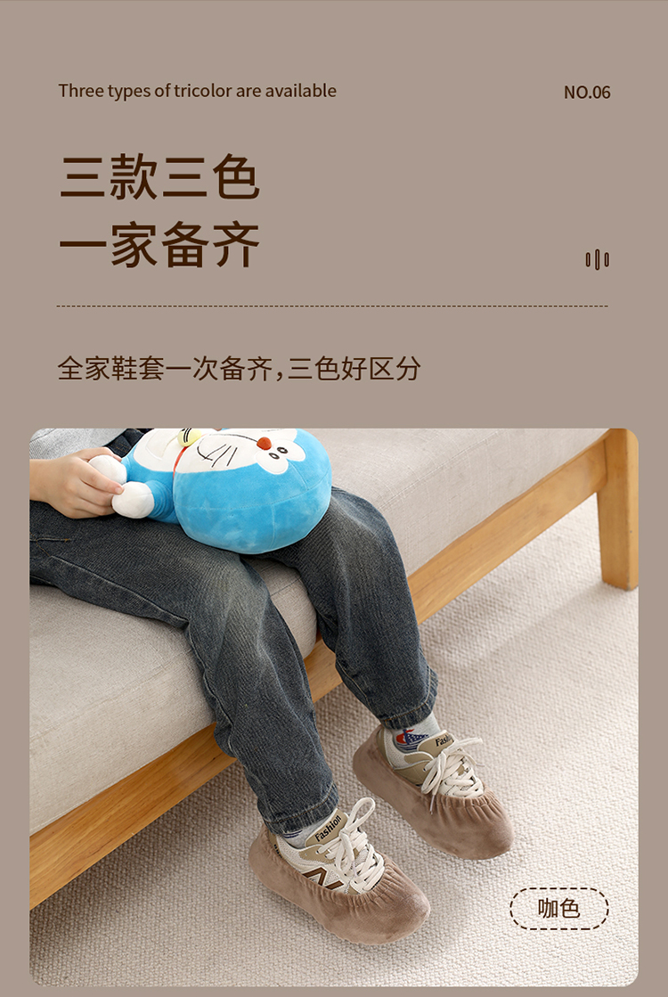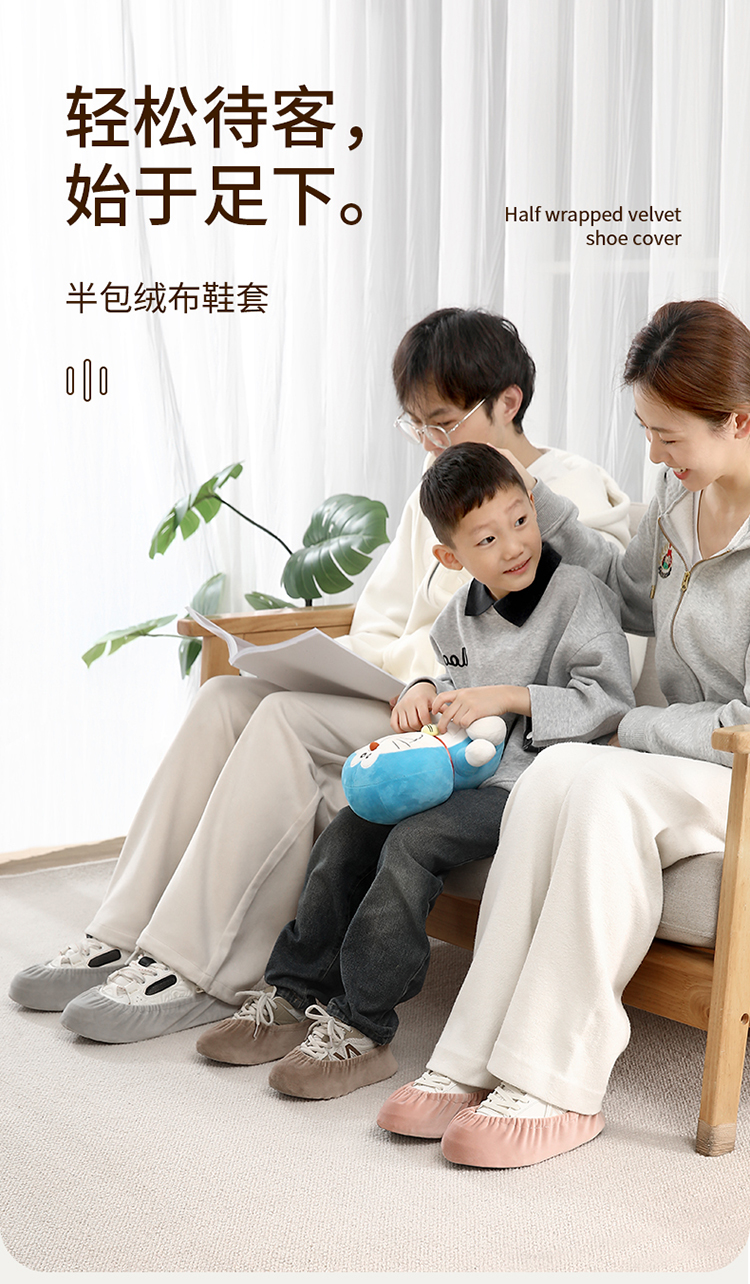FaSoLa绒布鞋套室内布料可洗反复使用家用防滑耐磨脚套微机学生机房儿童