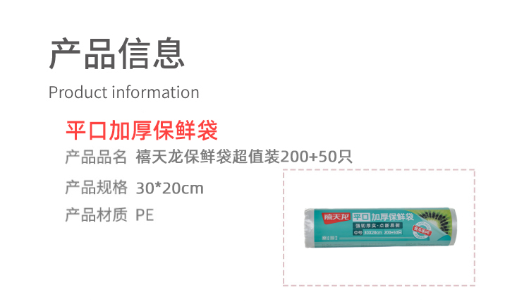 禧天龙Y-8782加厚保鲜袋中号250只*3