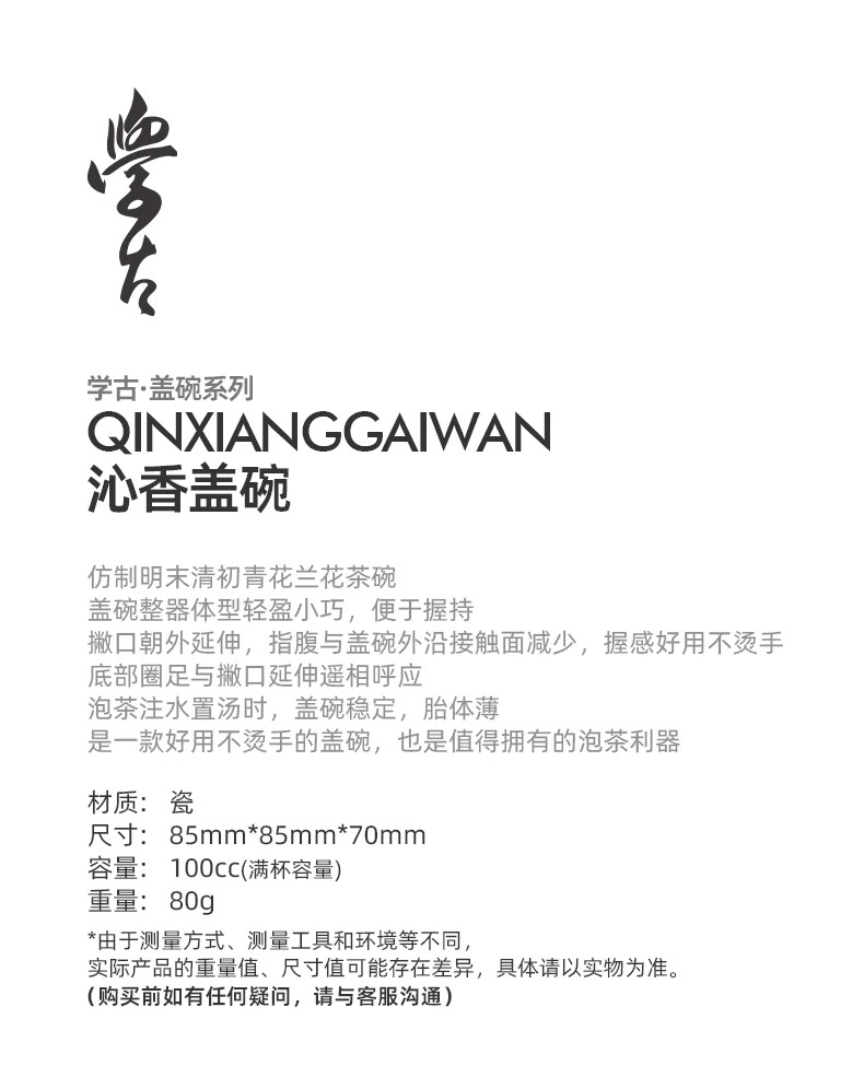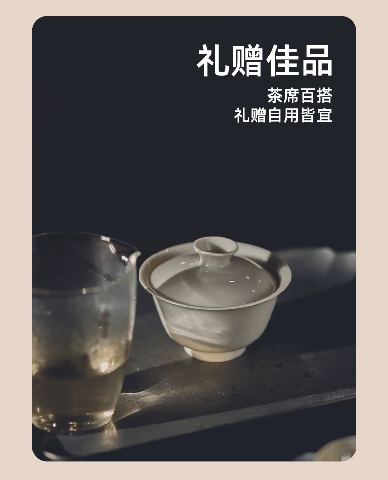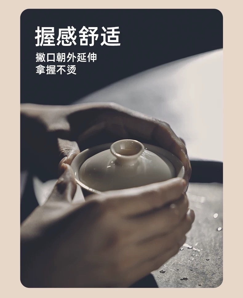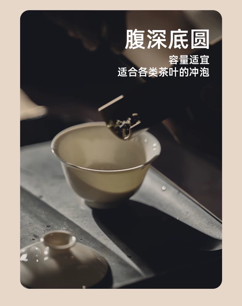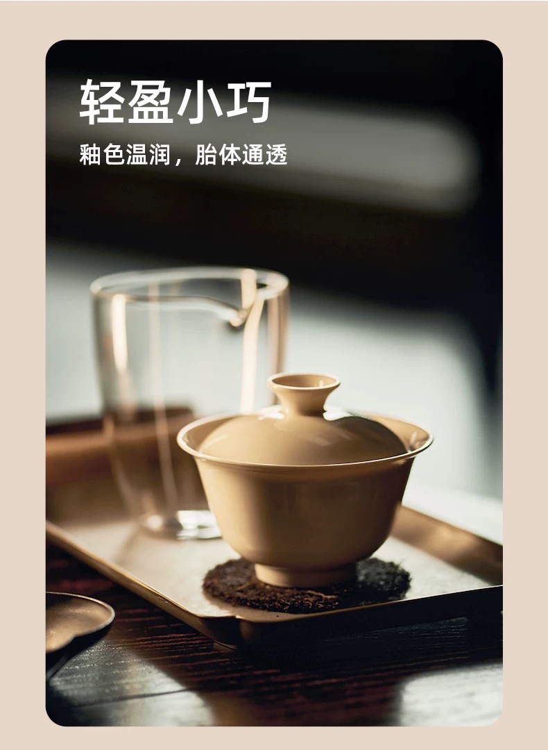 学古|全手工沁香盖碗米黄釉 手工雅集品茗泡茶景德镇瓷盖碗 100ml