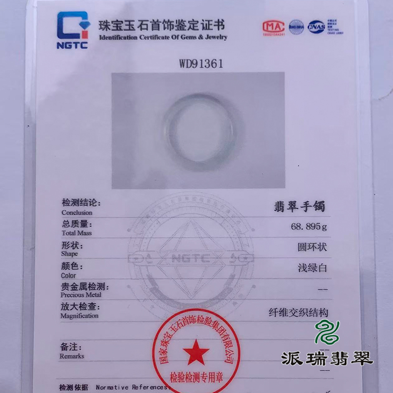 派瑞翡翠 翡翠手镯 糯种 白色